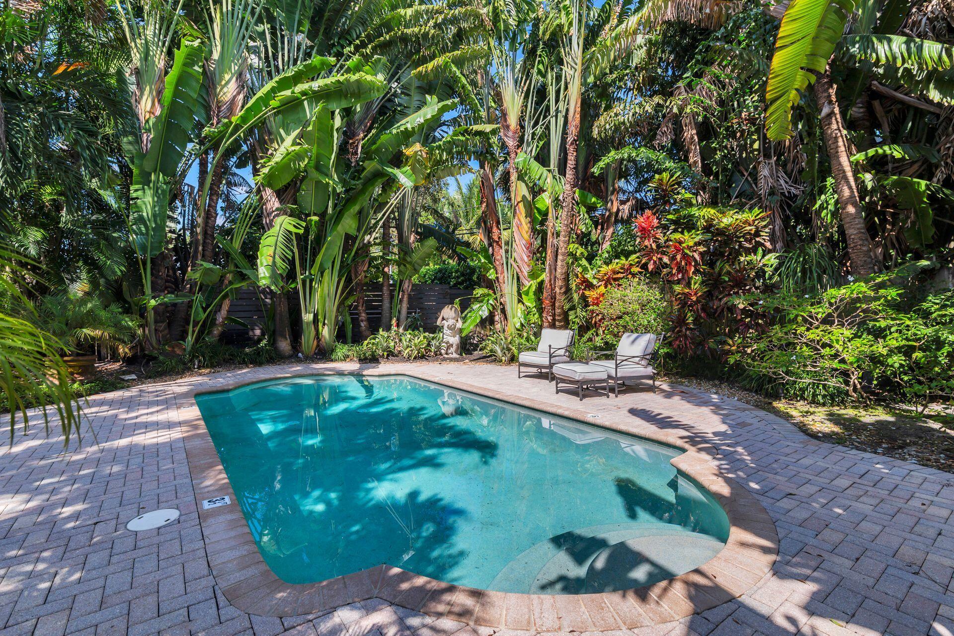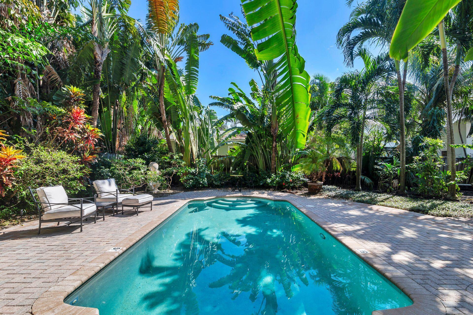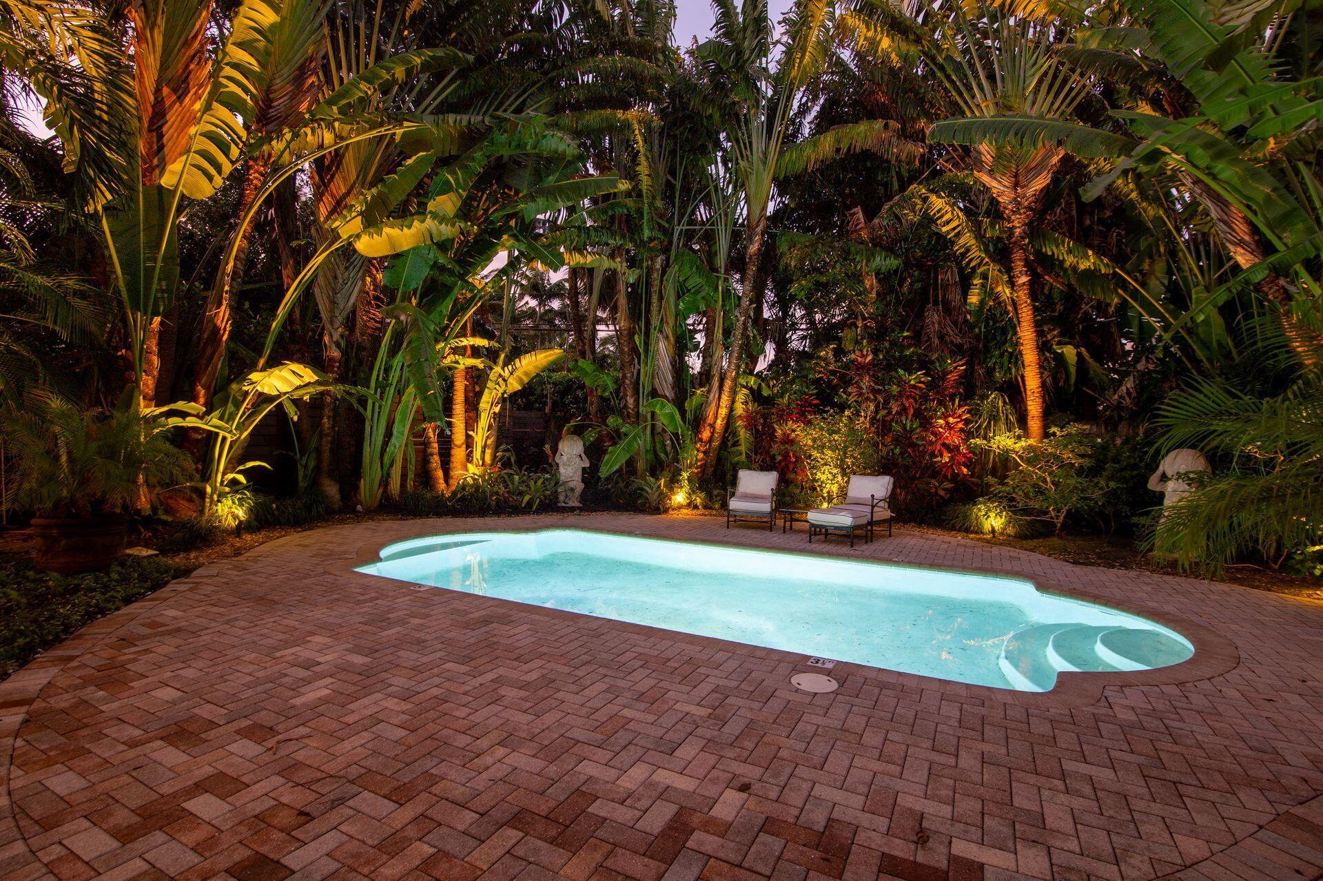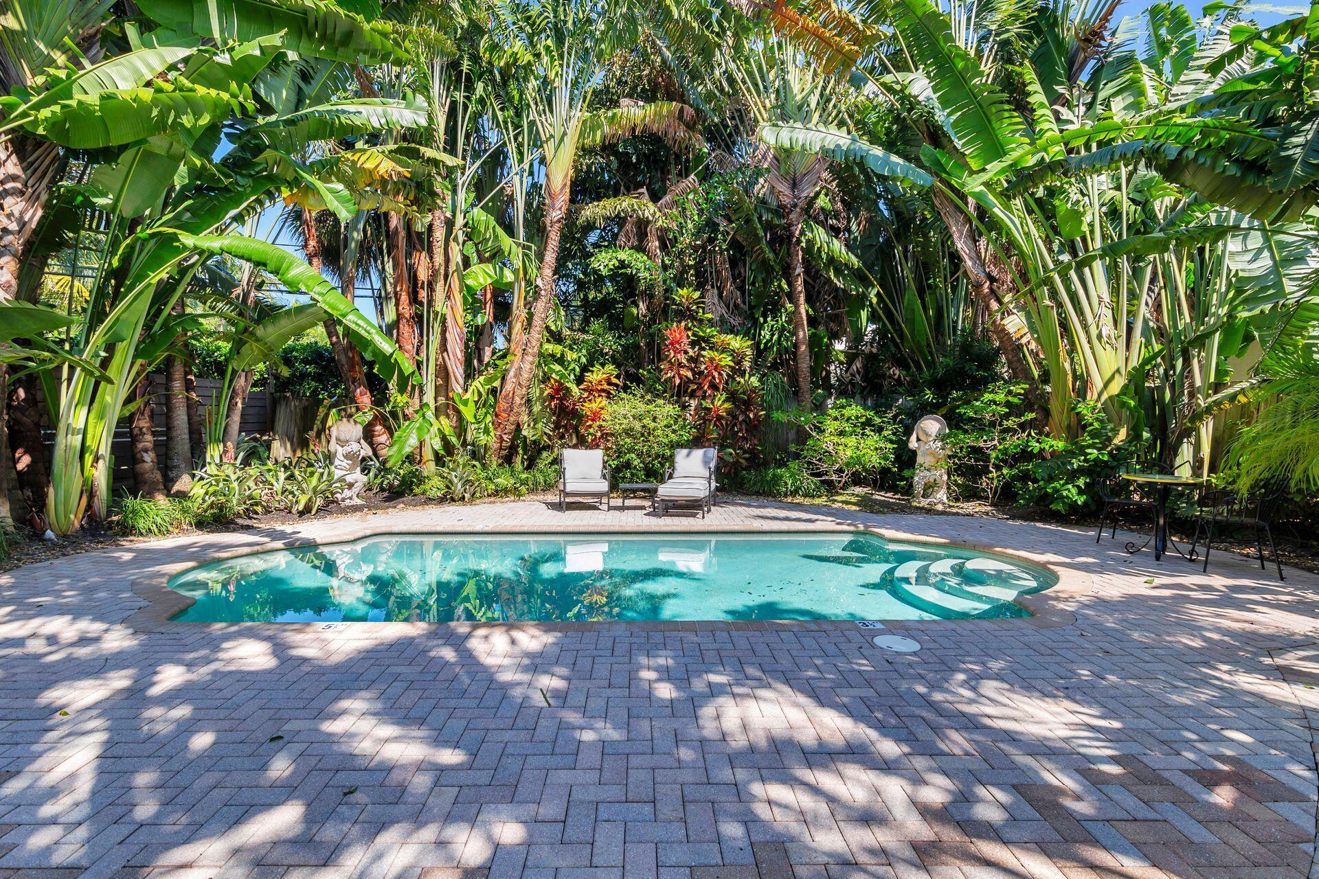 Step into this charming historic Spanish-style 2 bedroom and 1-bathroom bungalow where timeless elegance meets modern comfort. Recent upgrades include a new roof (2020) and hurricane-impact windows and doors (2020). Culinary enthusiasts will appreciate the Bertazzoni gas stove and refrigerator. The guest room features plantation shutters and the primary bedroom offers Lutron blackout remote shades. The large private pool is nestled amid tropical landscaping. Exterior updates include newly updated landscape lighting and a new pool pump (2024). Located in the Palm Beach Public School district, convenient to Palm Beach, downtown attractions and great local restaurants, the airport, museums and the beach.