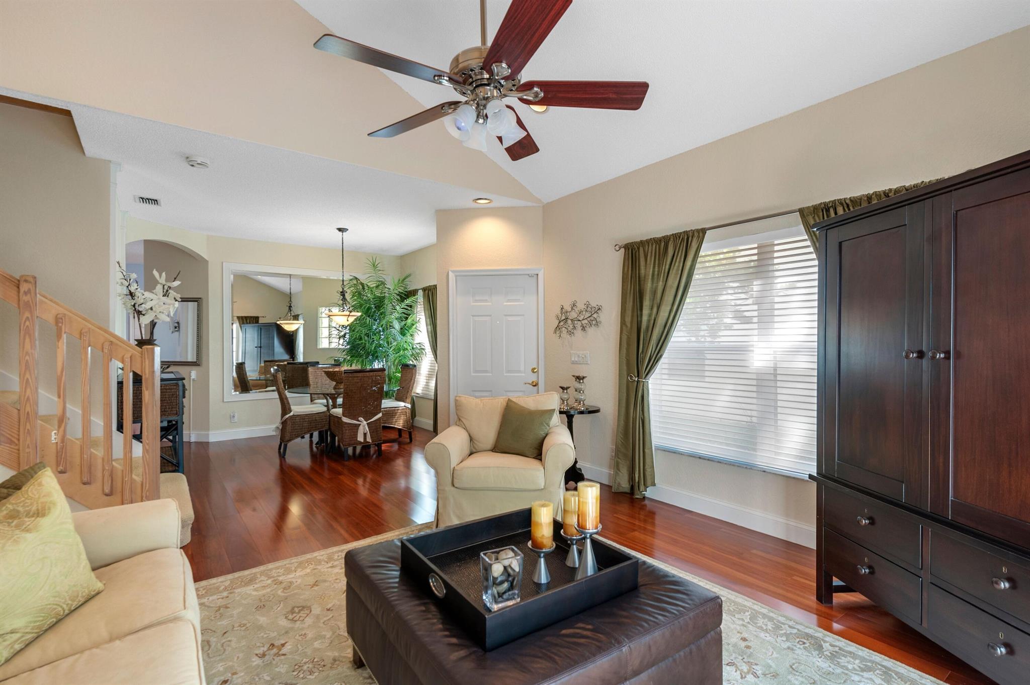 Beautiful 3 bedroom 2.5 bath home in gated community. Master bedroom is downstairs. Jack and Jill bathroom upstairs. Very large walk in closets in all bedrooms. Upstairs bedroom has a built-in office space. Vaulted ceilings in living room. Kitchen has granite countertops and stainless steel appliances. Driveway is expanded to fit 2 cars. Membership to Boca Pointe is NOT Required.