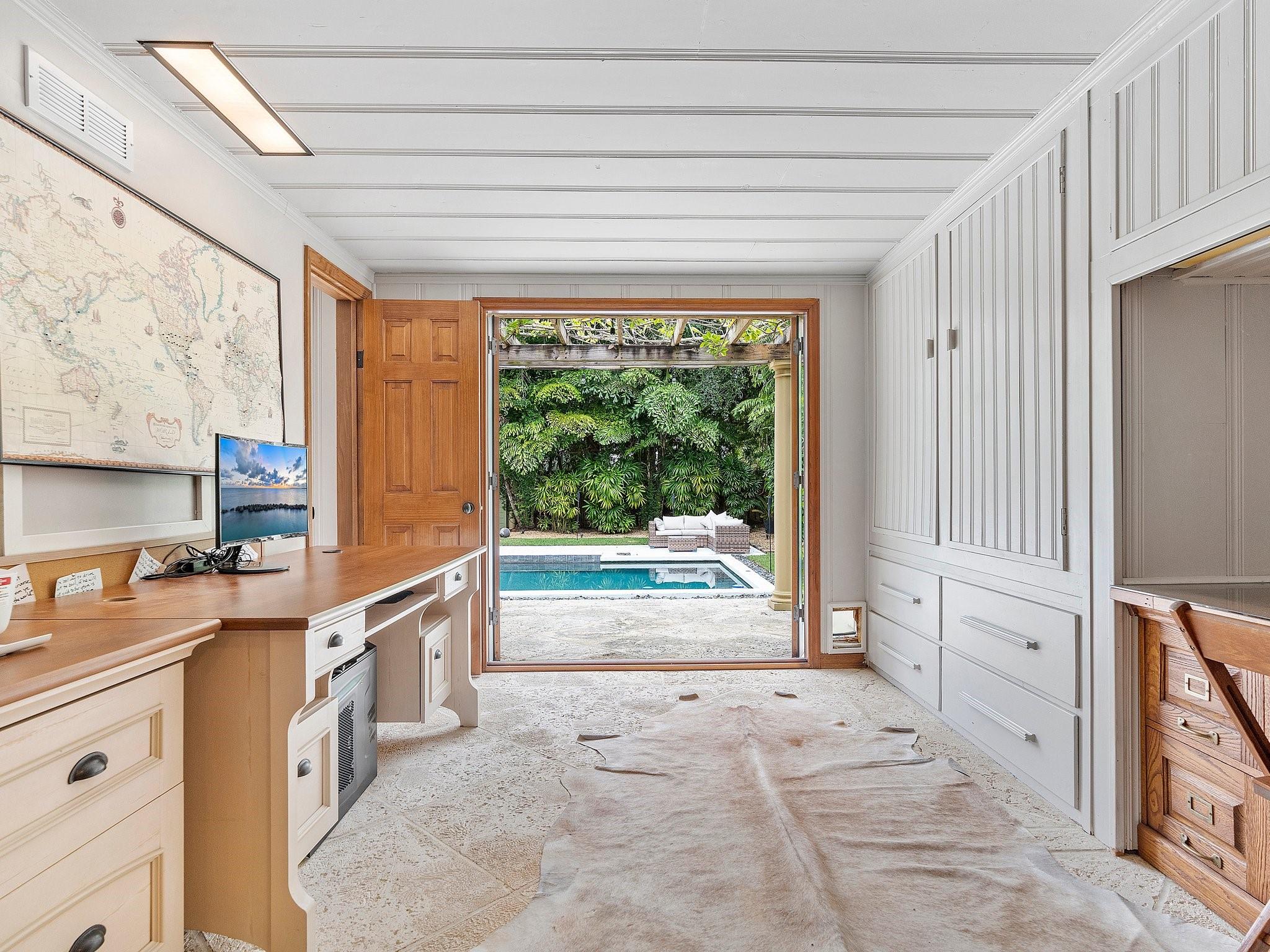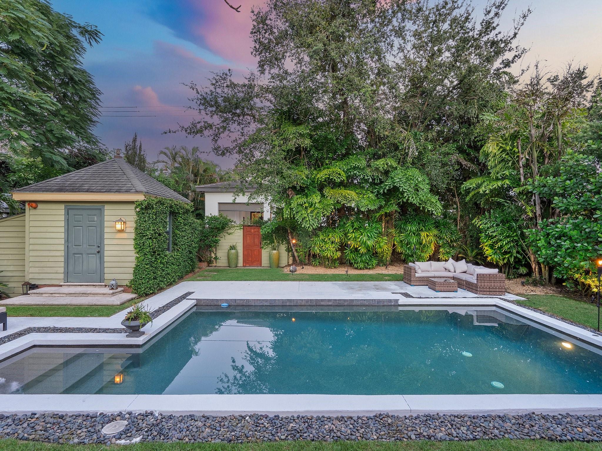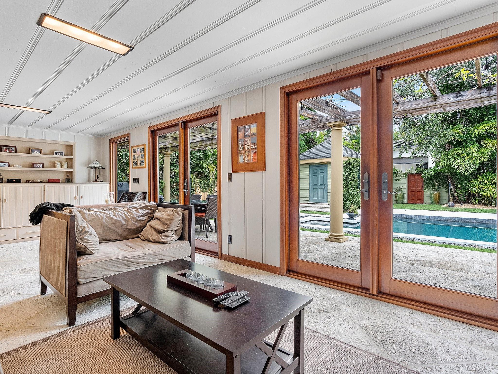 This landmark Victoria Park residence is iconic to the neighborhood. Framed by a majestic oak, the home boasts vaulted ceilings, wood floors, and an expansive family room with recessed lighting and a fireplace. The open kitchen, designed for entertaining, features new stainless appliances, while marble bathrooms add timeless elegance. Includes an abundance of built-in storage, a convertible office, and impact windows to enhance livability. The outdoor living is inviting, with brick and coral terraces, a spacious yard with a resort-style pool, and a versatile workshop. Tucked inside the neighborhood but just blocks from Las Olas Boulevard, this residence offers a distinctive allure.