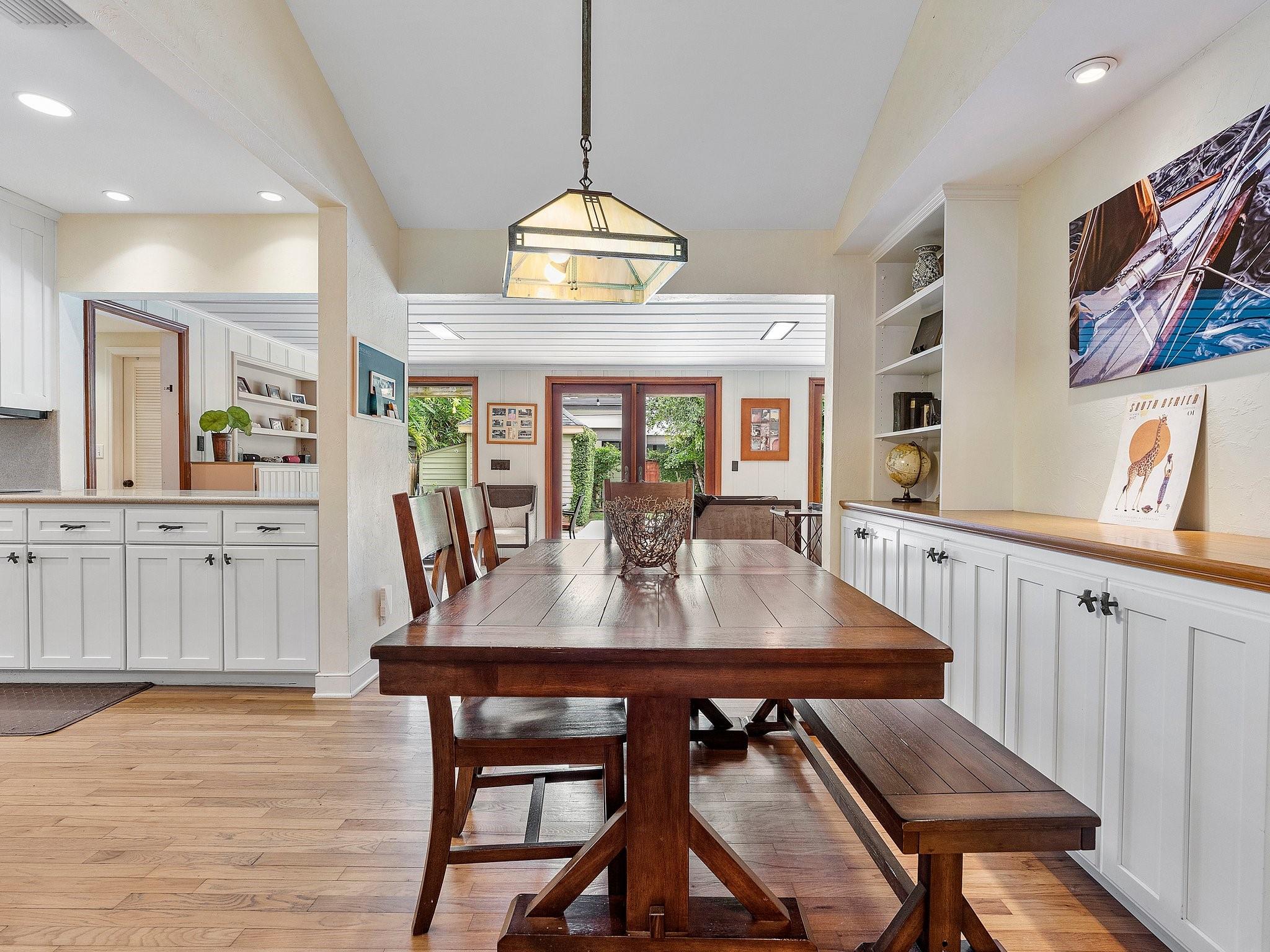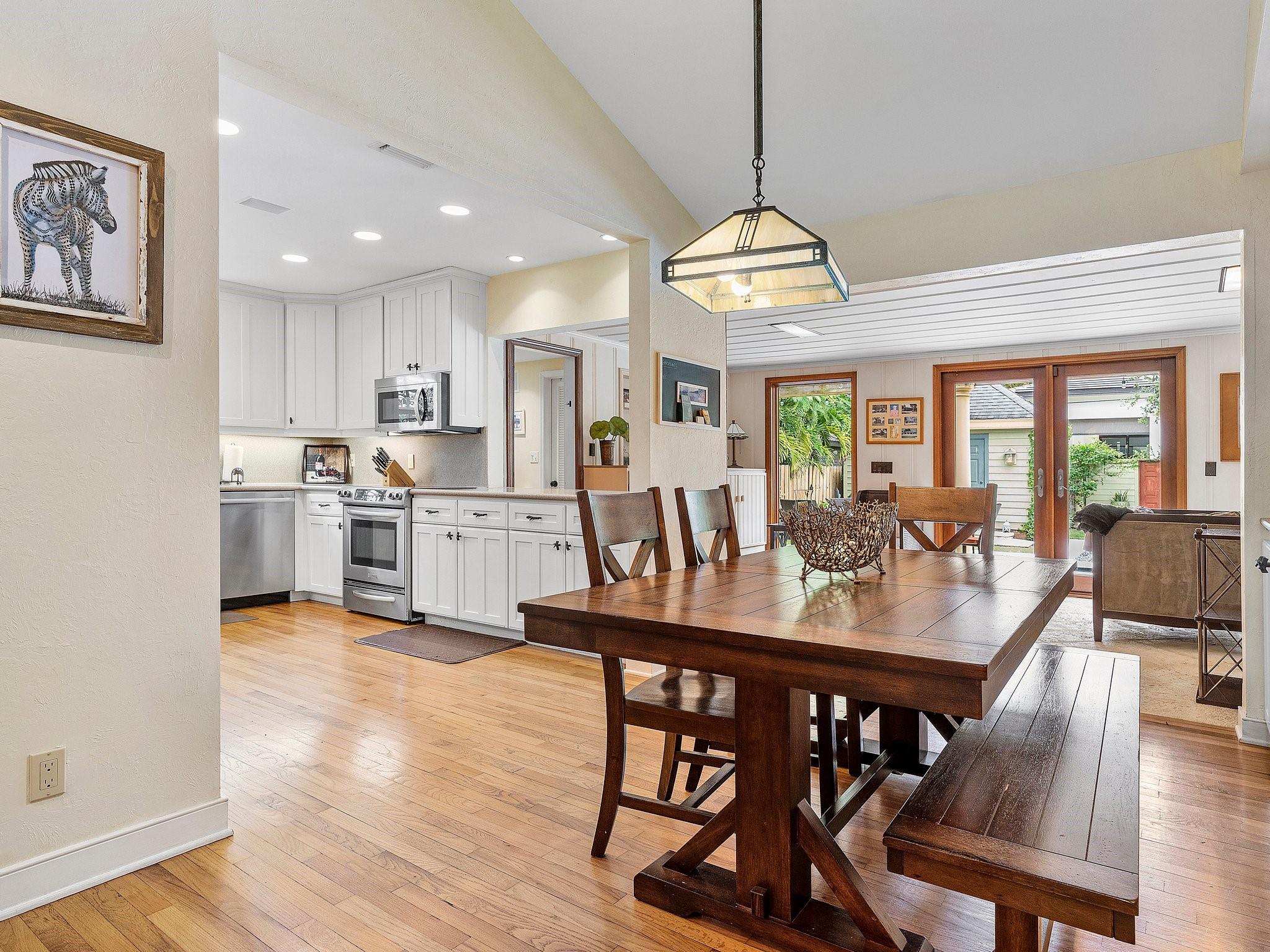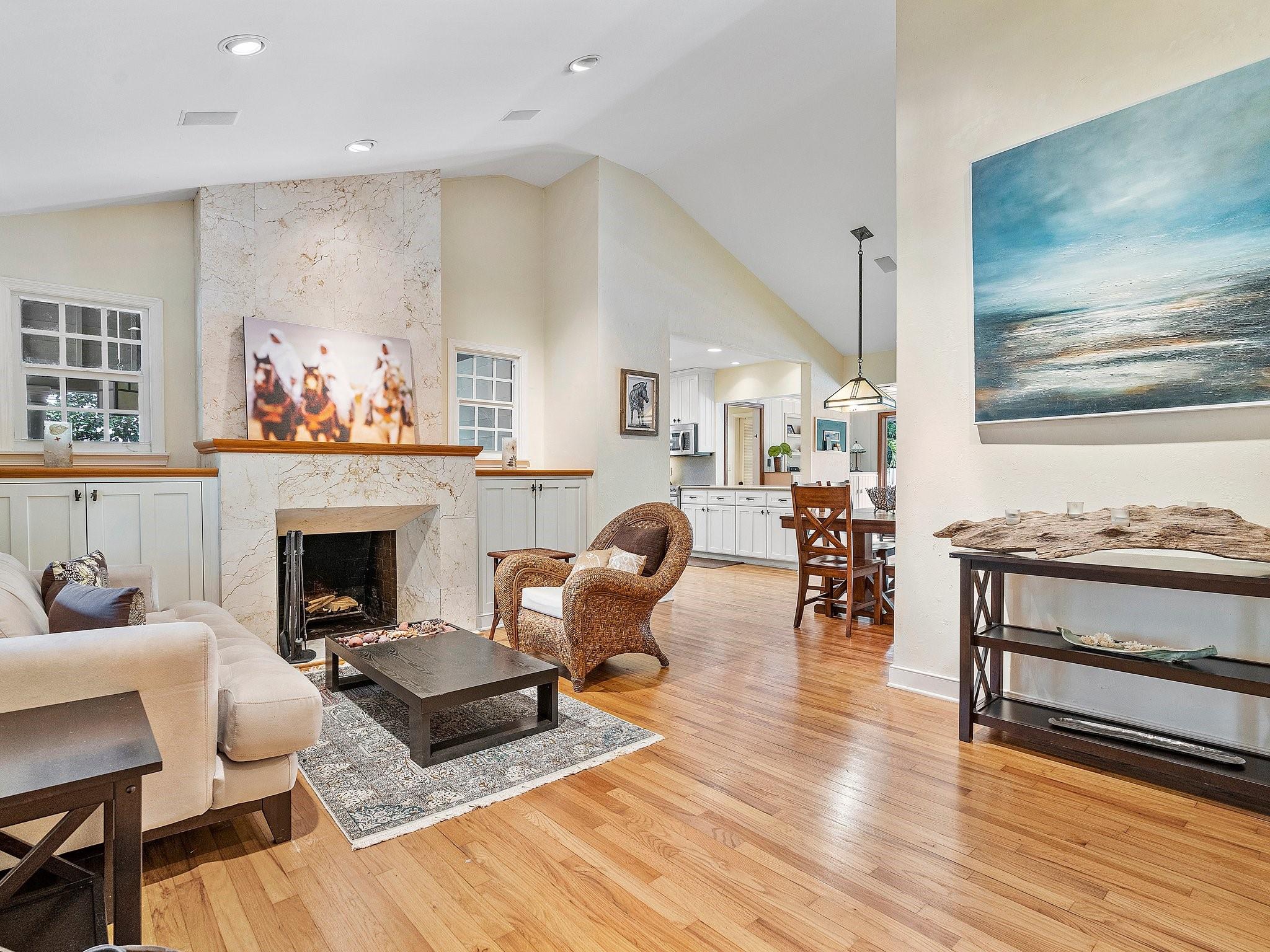 This landmark Victoria Park residence is iconic to the neighborhood. Framed by a majestic oak, the home boasts vaulted ceilings, wood floors, and an expansive family room with recessed lighting and a fireplace. The open kitchen, designed for entertaining, features new stainless appliances, while marble bathrooms add timeless elegance. Includes an abundance of built-in storage, a convertible office, and impact windows to enhance livability. The outdoor living is inviting, with brick and coral terraces, a spacious yard with a resort-style pool, and a versatile workshop. Tucked inside the neighborhood but just blocks from Las Olas Boulevard, this residence offers a distinctive allure.