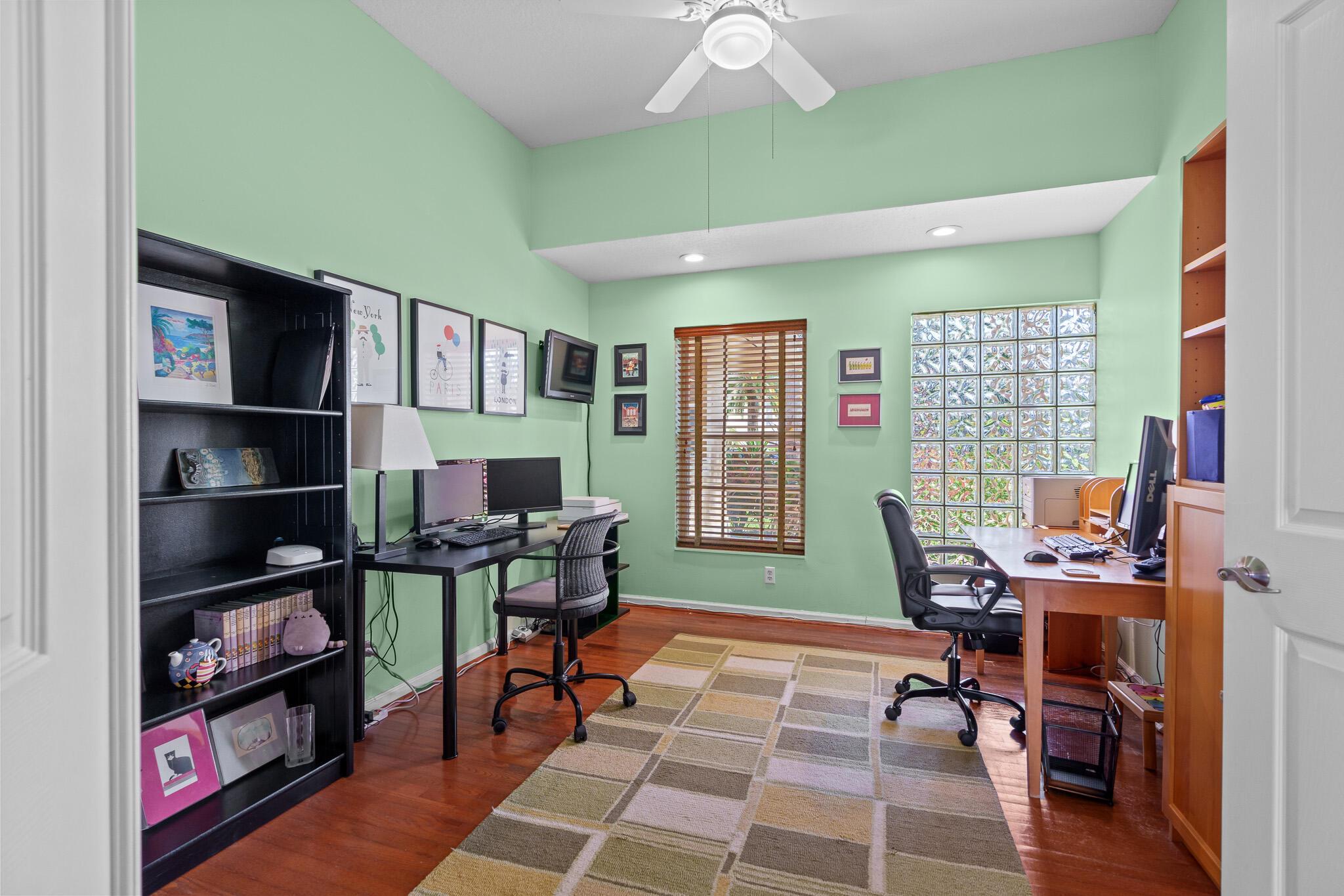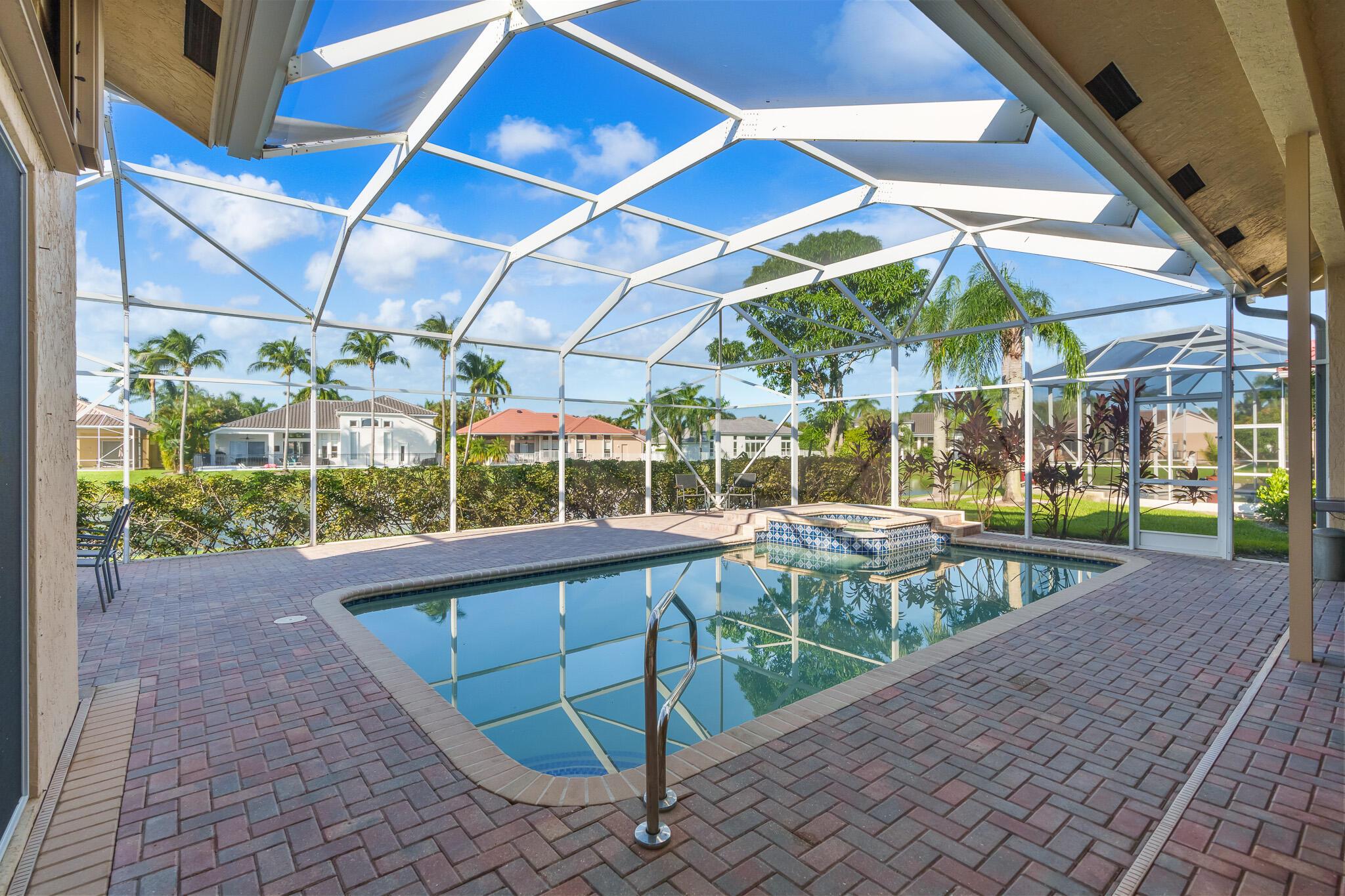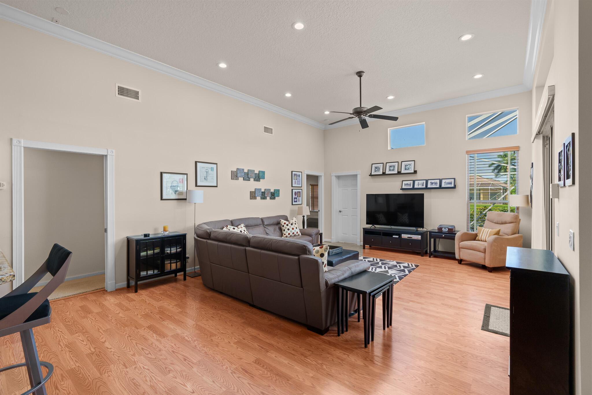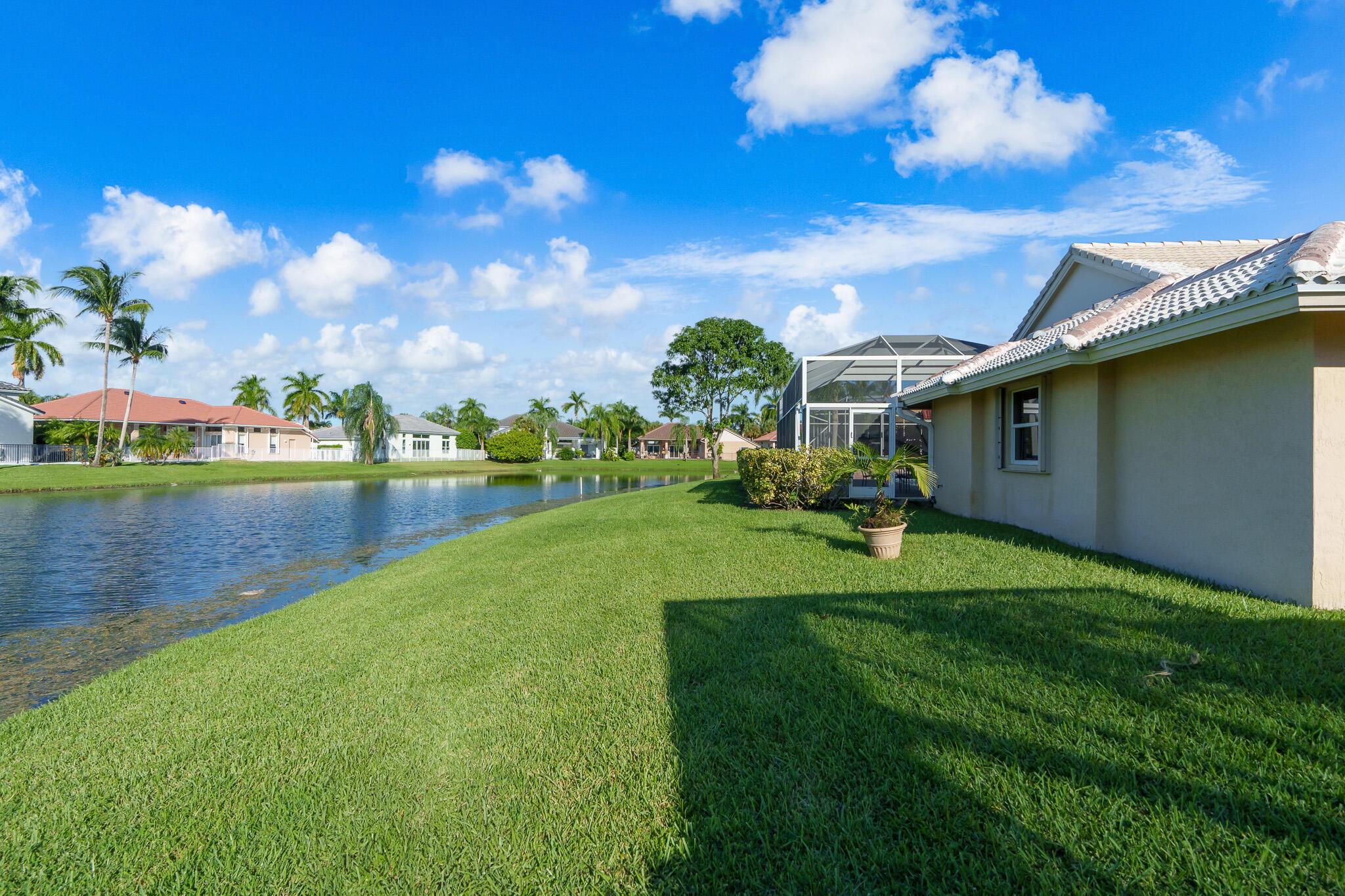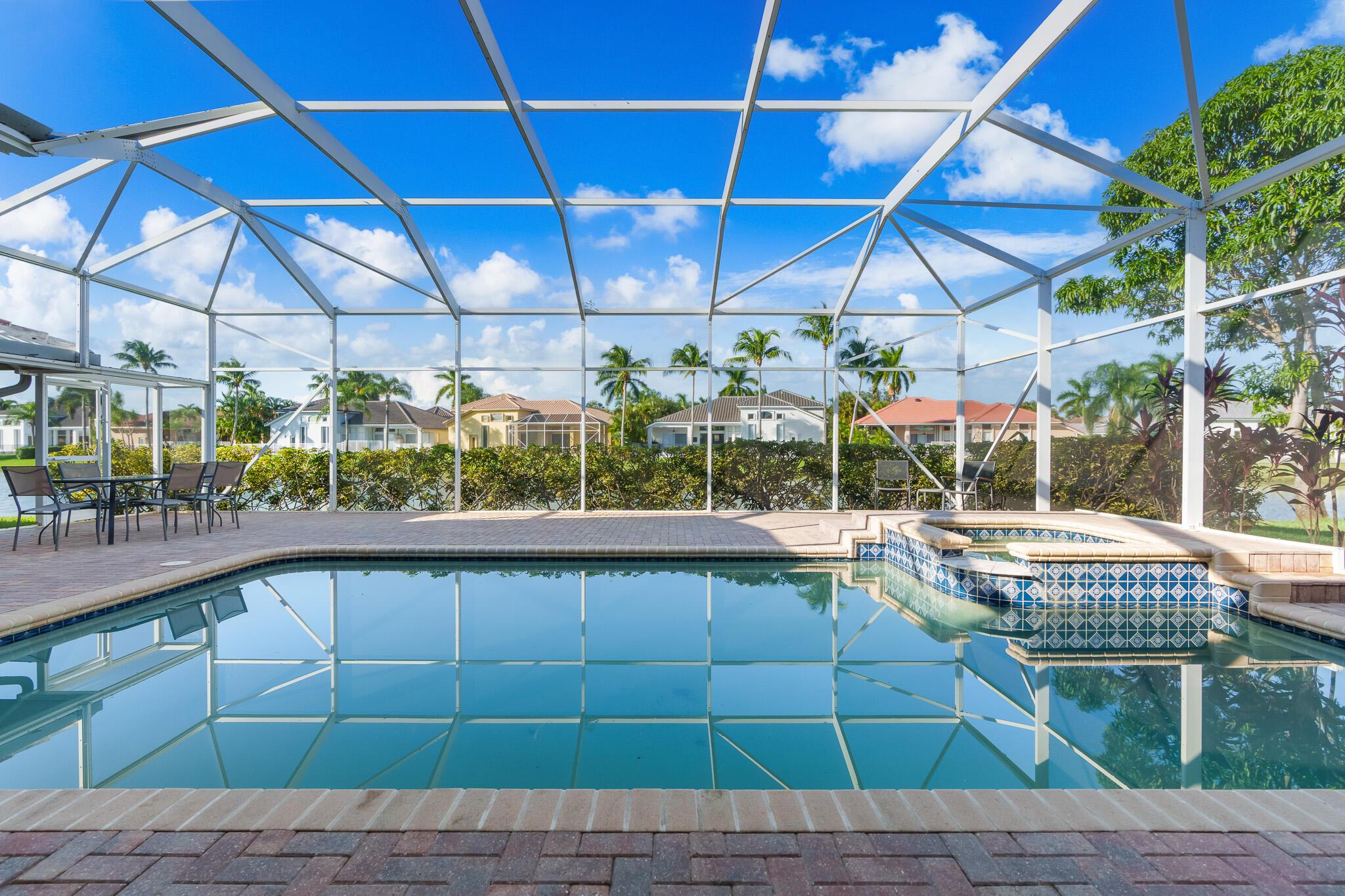 Stunning 5-bedroom single-story home offering over 3,000 sqft of living space in the highly sought-after Boca Isles South. This extended Cayman model features soaring ceilings with a thoughtful layout, perfect for entertaining; formal living and dining room, plus an open kitchen and breakfast nook. Sleek white chefs kitchen with stainless steel appliances, double ovens & natural stone countertops seamlessly flows into a bright spacious family room. Step outside to a screened backyard oasis boasting a 34ft covered lanai, outdoor kitchen, and a 30ft pool with elevated spa overlooking serene lake views. Equipped with accordion hurricane shutters, this home perfectly blends warmth, functionality, and value in a highly desirable all age gated community