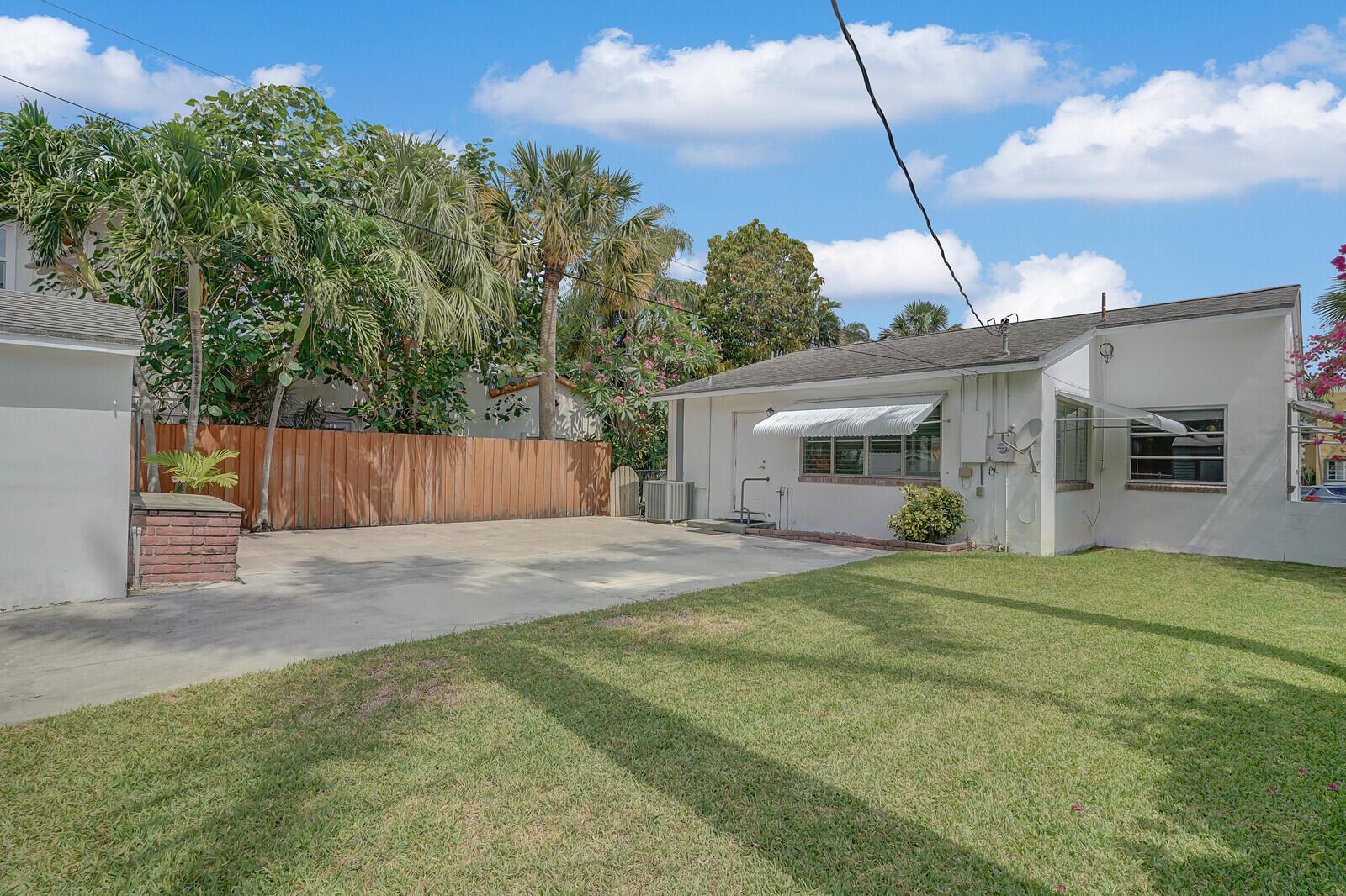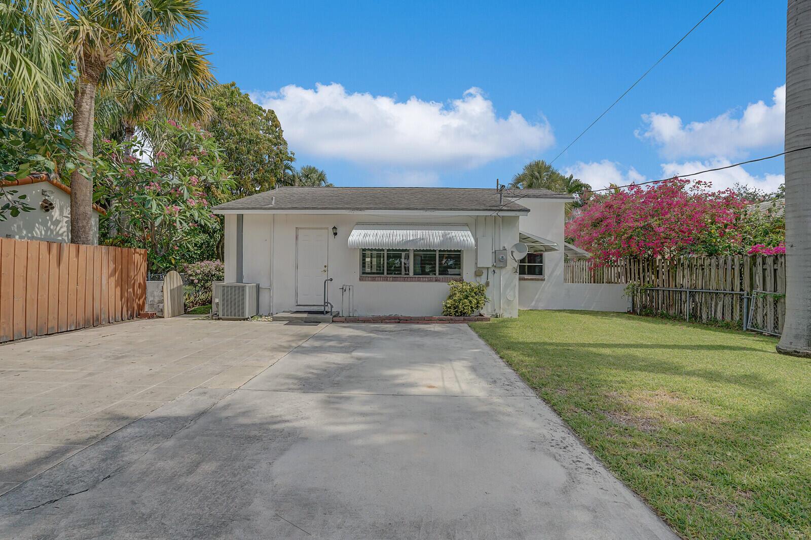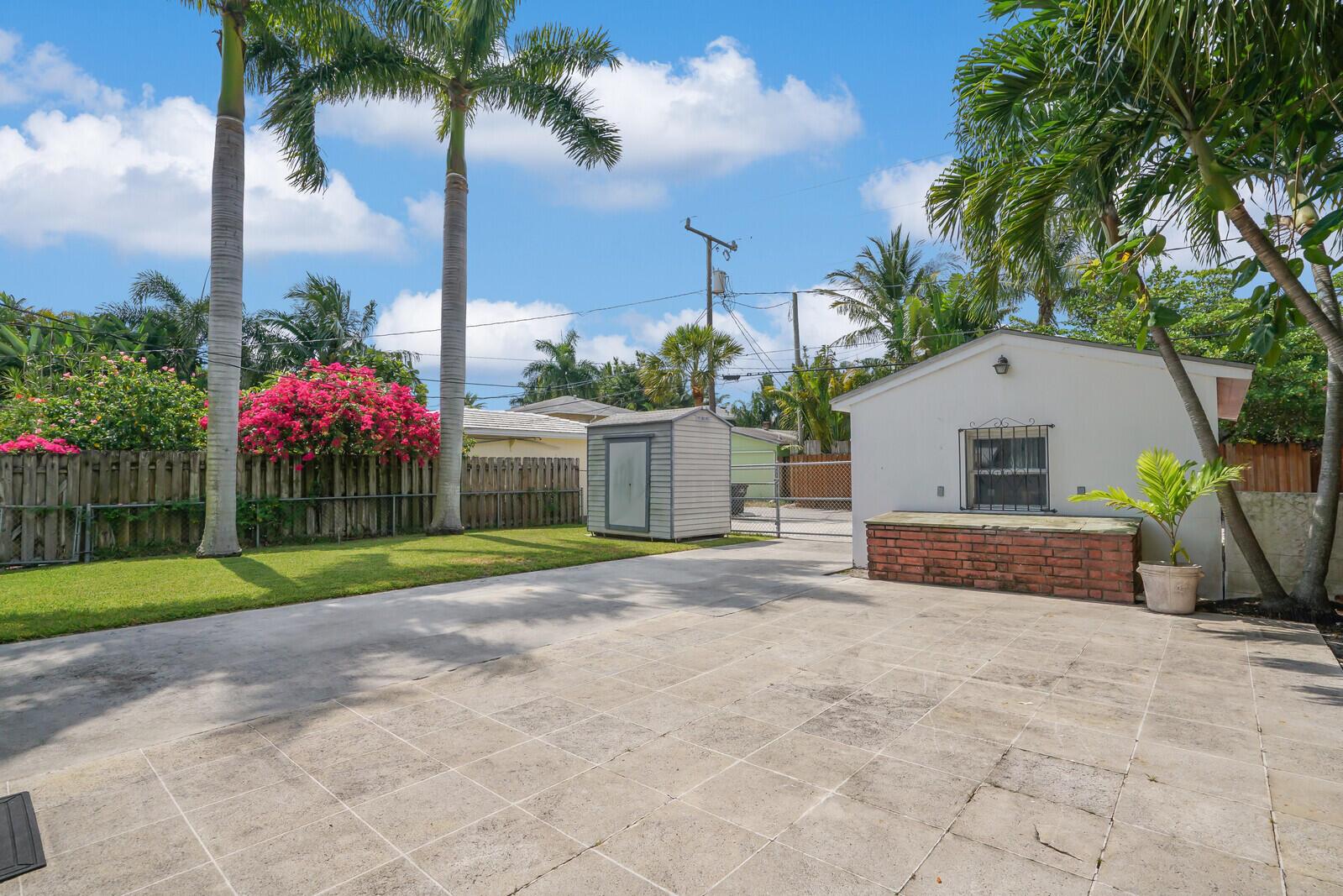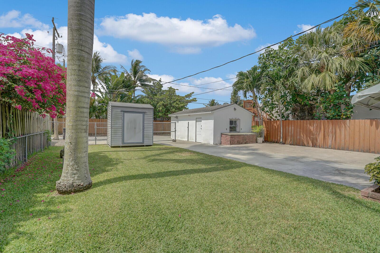 Concrete block home in the historic Northwood area. This residence features two bedrooms, 1.5 bathrooms, and stunning terrazzo floors throughout. It offers ample parking accessible from the back-alley street, along with a detached garage, shed, and fenced area suitable for a boat or RV. The property also has room for a pool. Conveniently located minutes away from the beach, park, boat ramp, tennis courts, downtown West Palm Beach, and Singer Island.