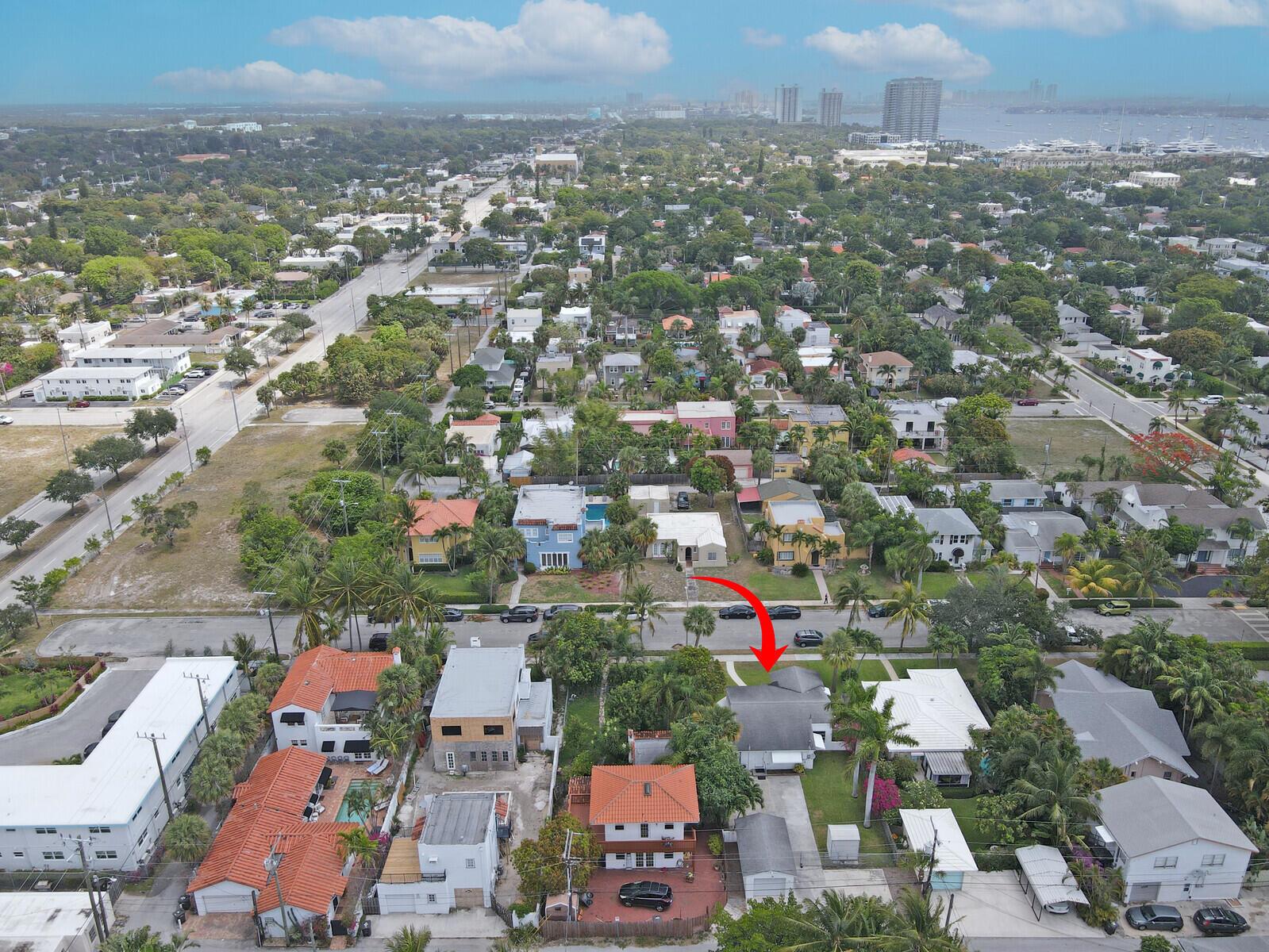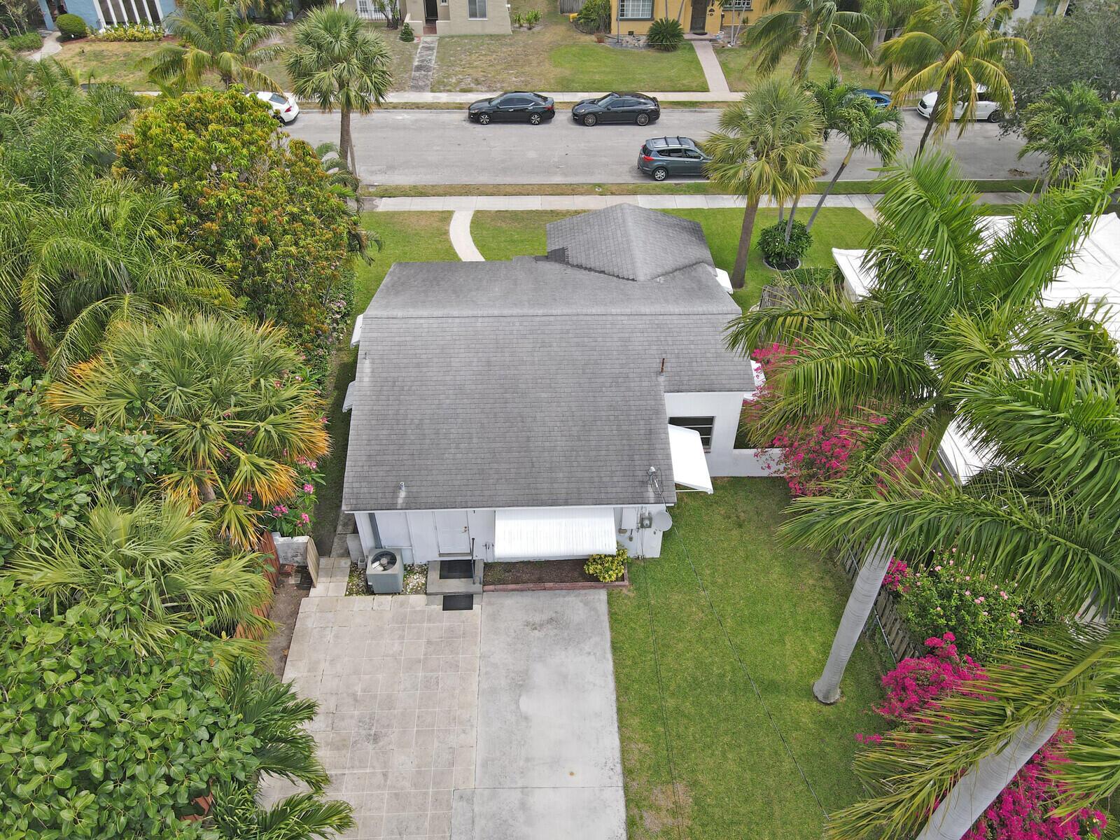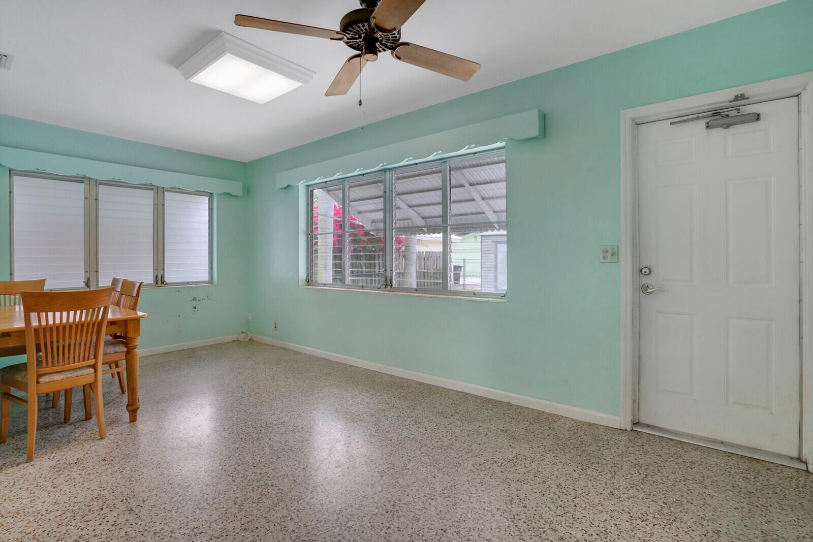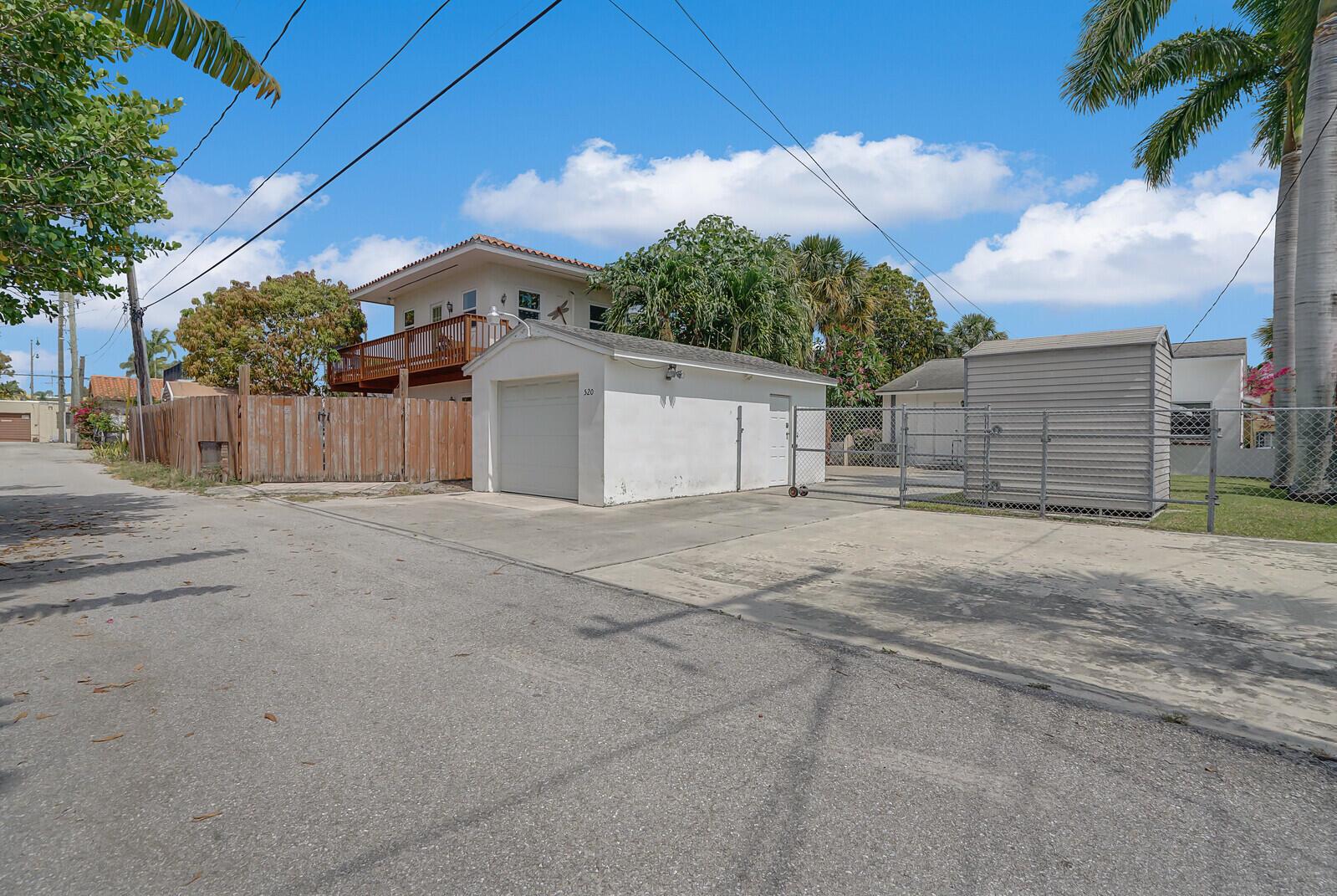 Concrete block home in the historic Northwood area. This residence features two bedrooms, 1.5 bathrooms, and stunning terrazzo floors throughout. It offers ample parking accessible from the back-alley street, along with a detached garage, shed, and fenced area suitable for a boat or RV. The property also has room for a pool. Conveniently located minutes away from the beach, park, boat ramp, tennis courts, downtown West Palm Beach, and Singer Island.