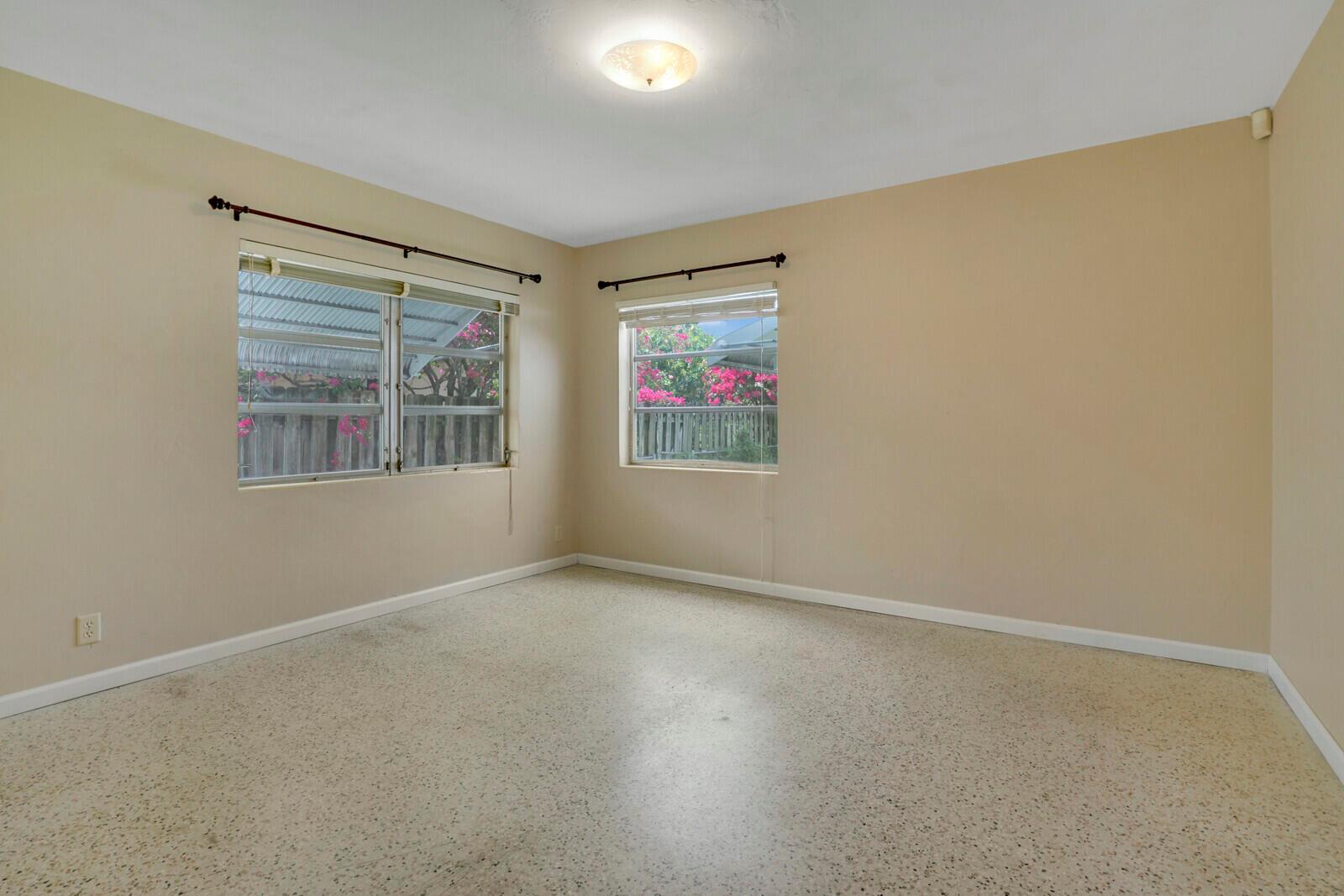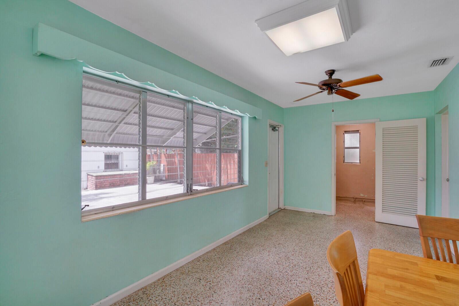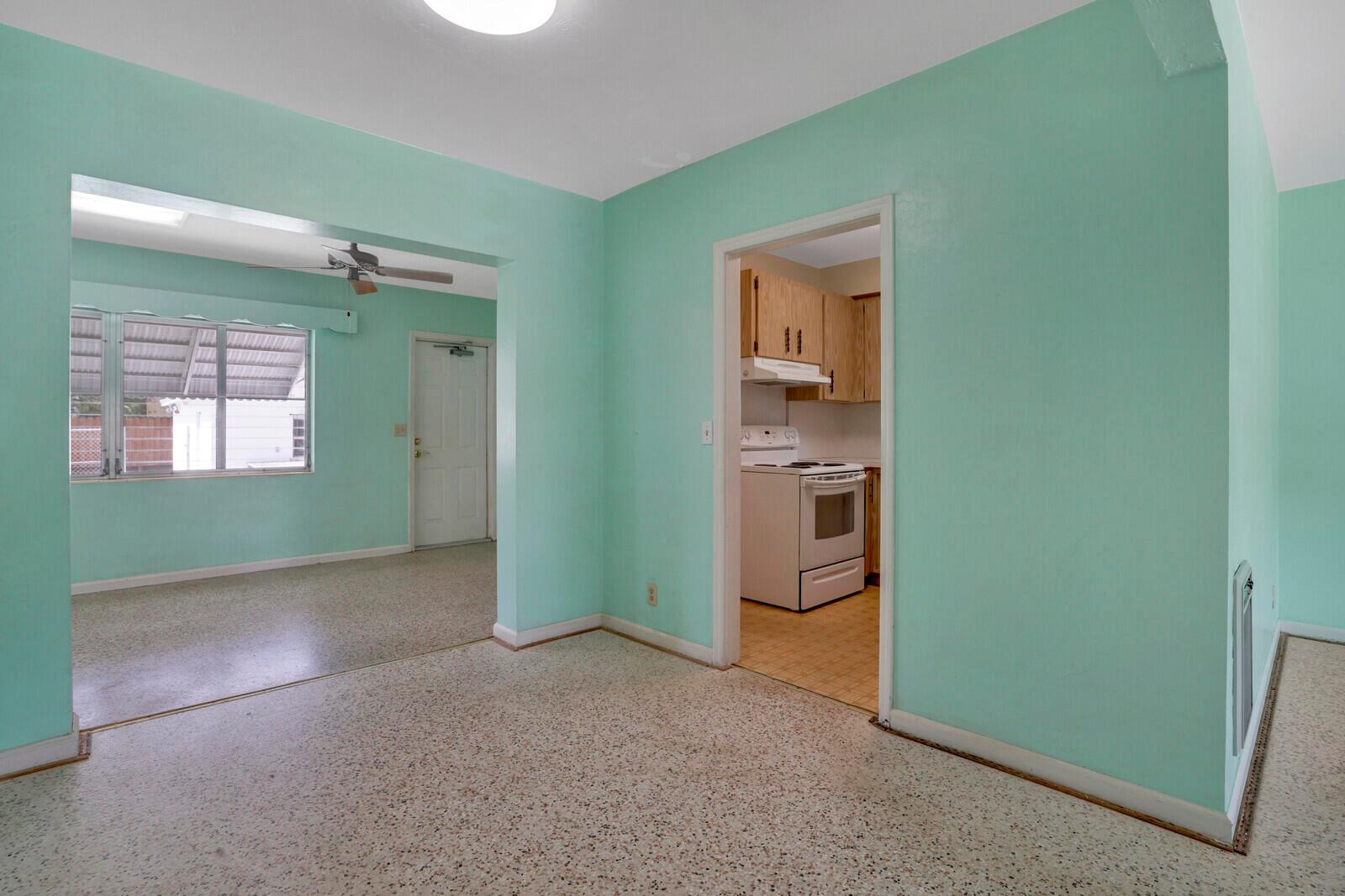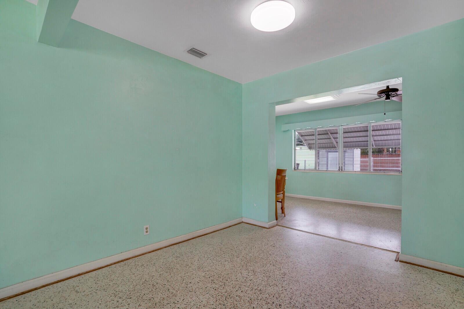 Concrete block home in the historic Northwood area. This residence features two bedrooms, 1.5 bathrooms, and stunning terrazzo floors throughout. It offers ample parking accessible from the back-alley street, along with a detached garage, shed, and fenced area suitable for a boat or RV. The property also has room for a pool. Conveniently located minutes away from the beach, park, boat ramp, tennis courts, downtown West Palm Beach, and Singer Island.