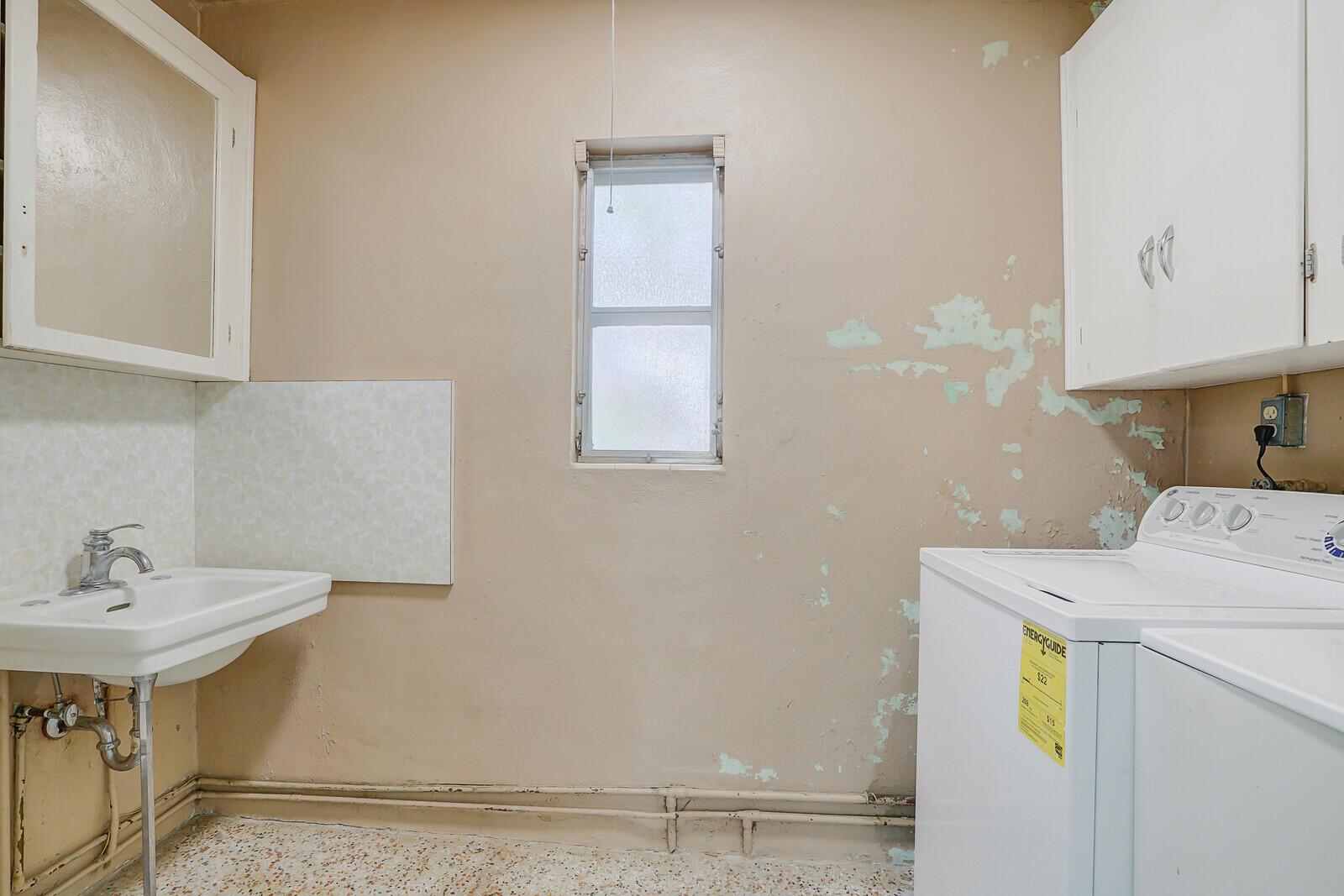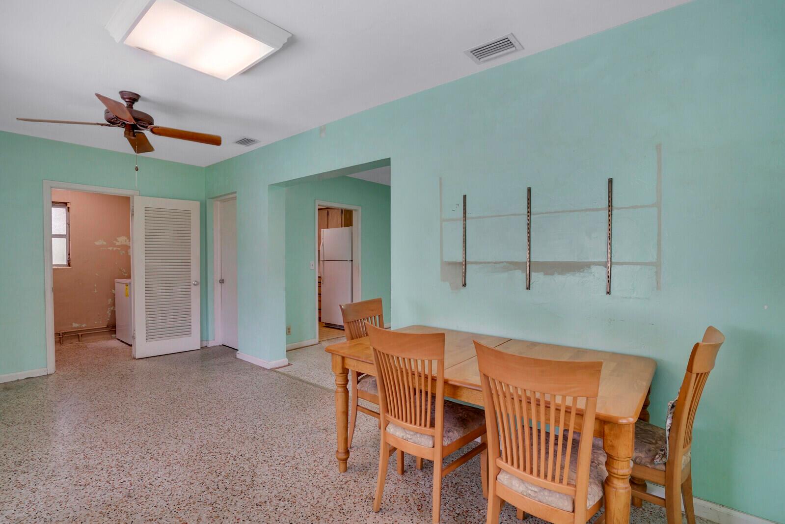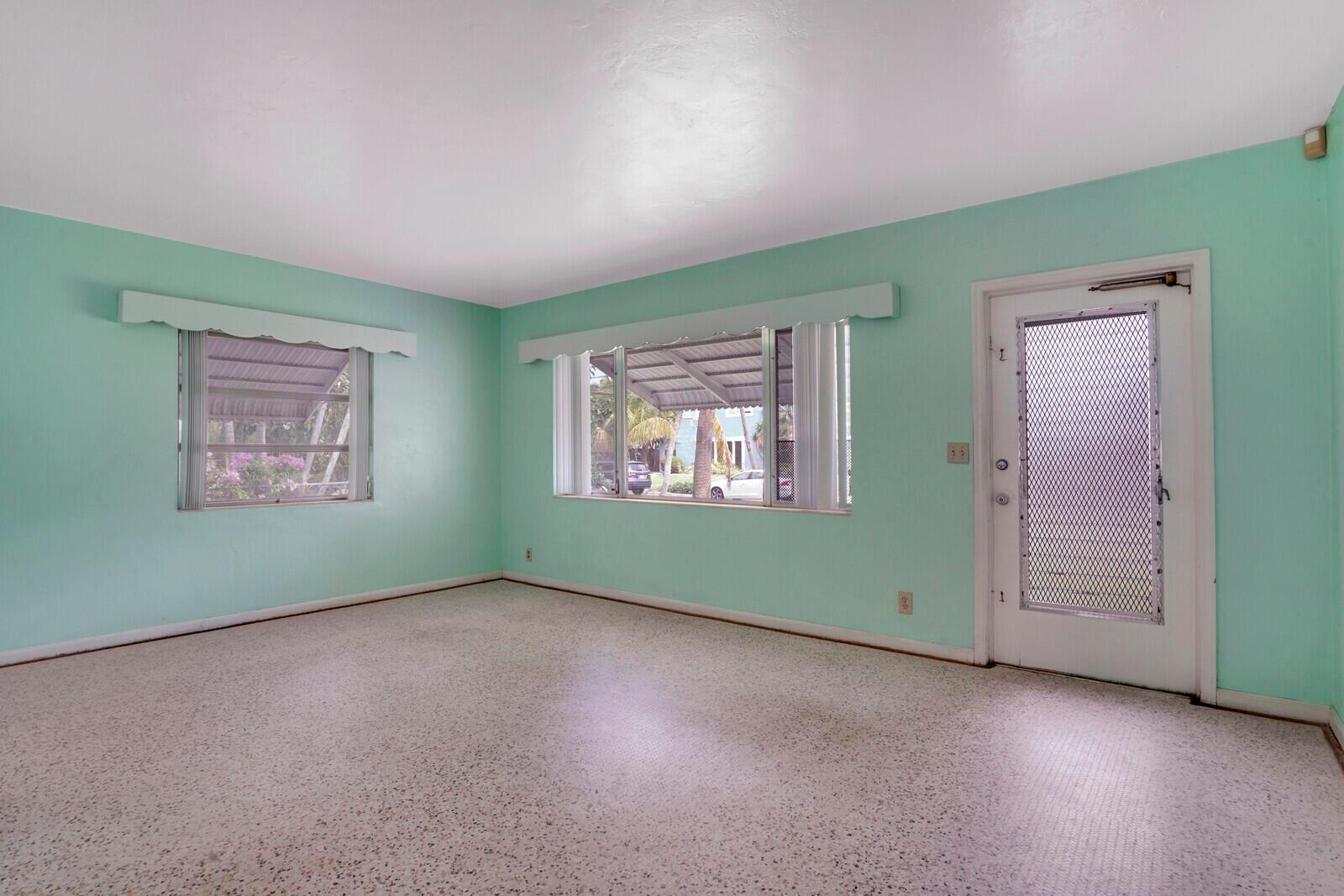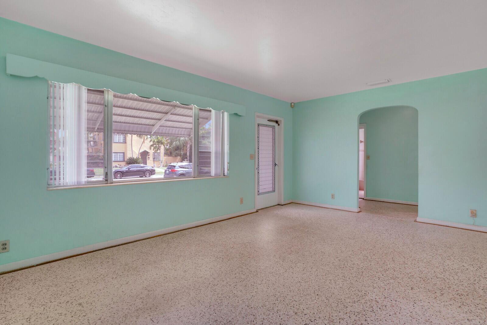 Concrete block home in the historic Northwood area. This residence features two bedrooms, 1.5 bathrooms, and stunning terrazzo floors throughout. It offers ample parking accessible from the back-alley street, along with a detached garage, shed, and fenced area suitable for a boat or RV. The property also has room for a pool. Conveniently located minutes away from the beach, park, boat ramp, tennis courts, downtown West Palm Beach, and Singer Island.