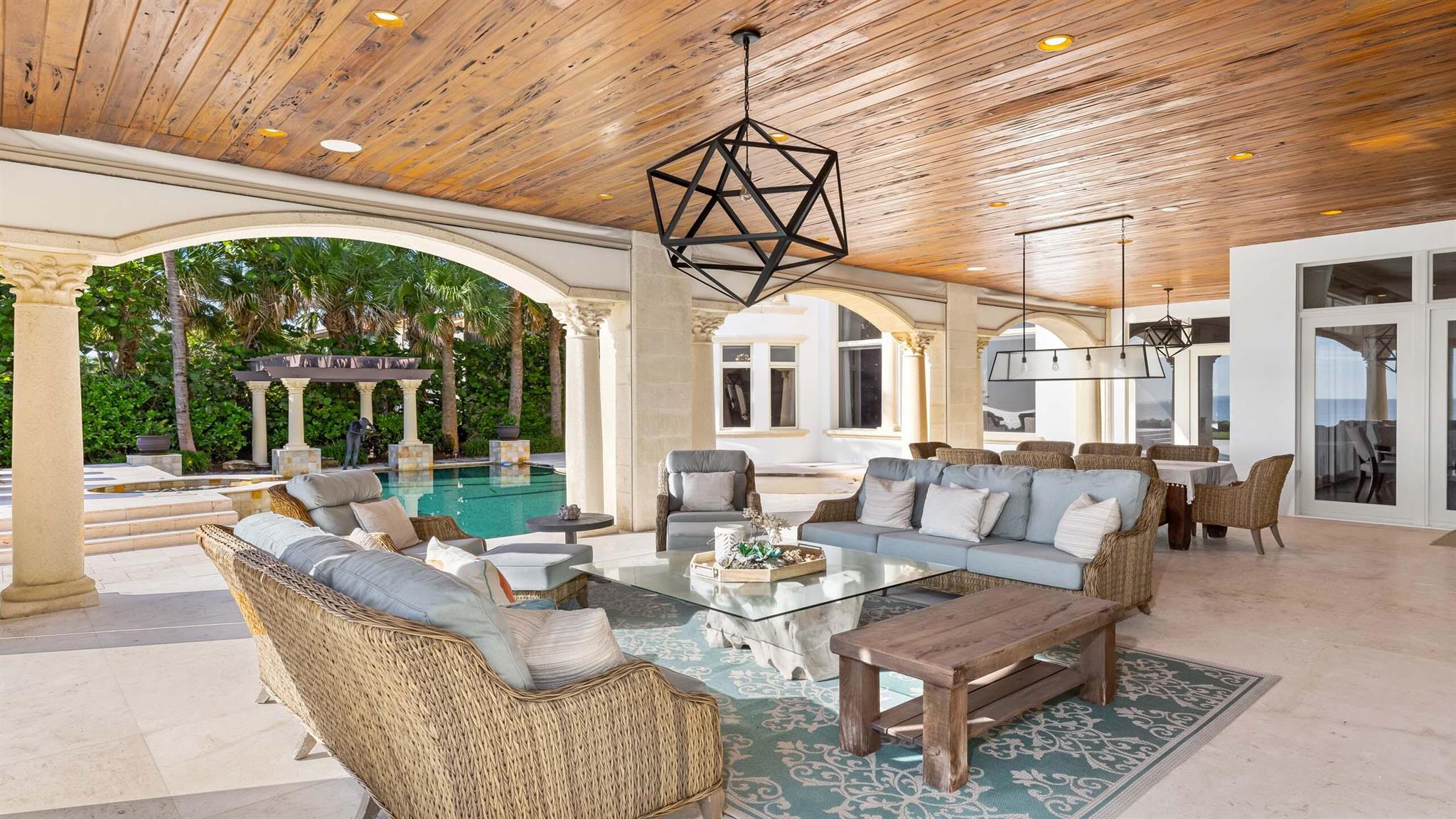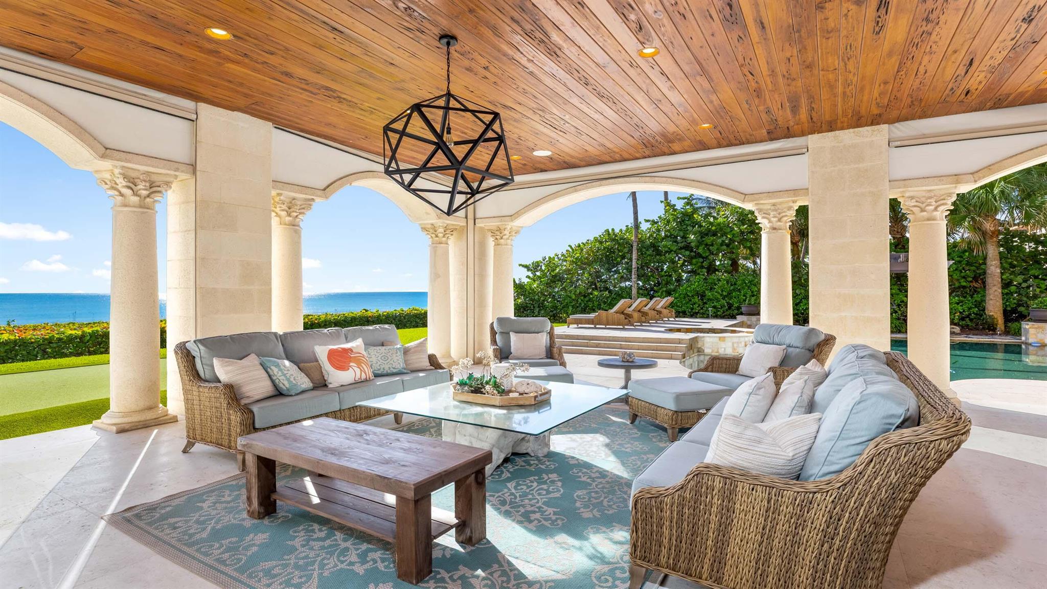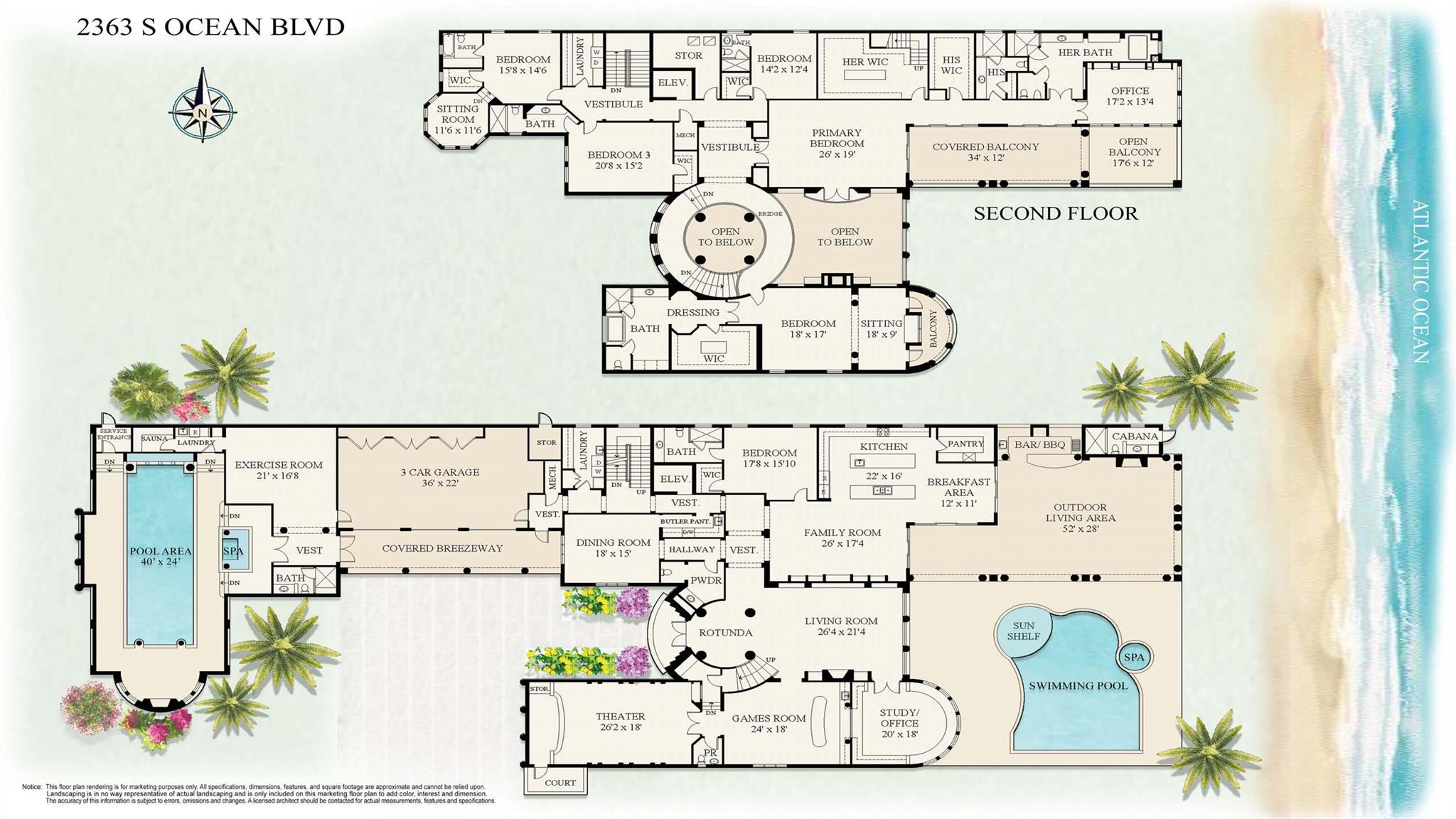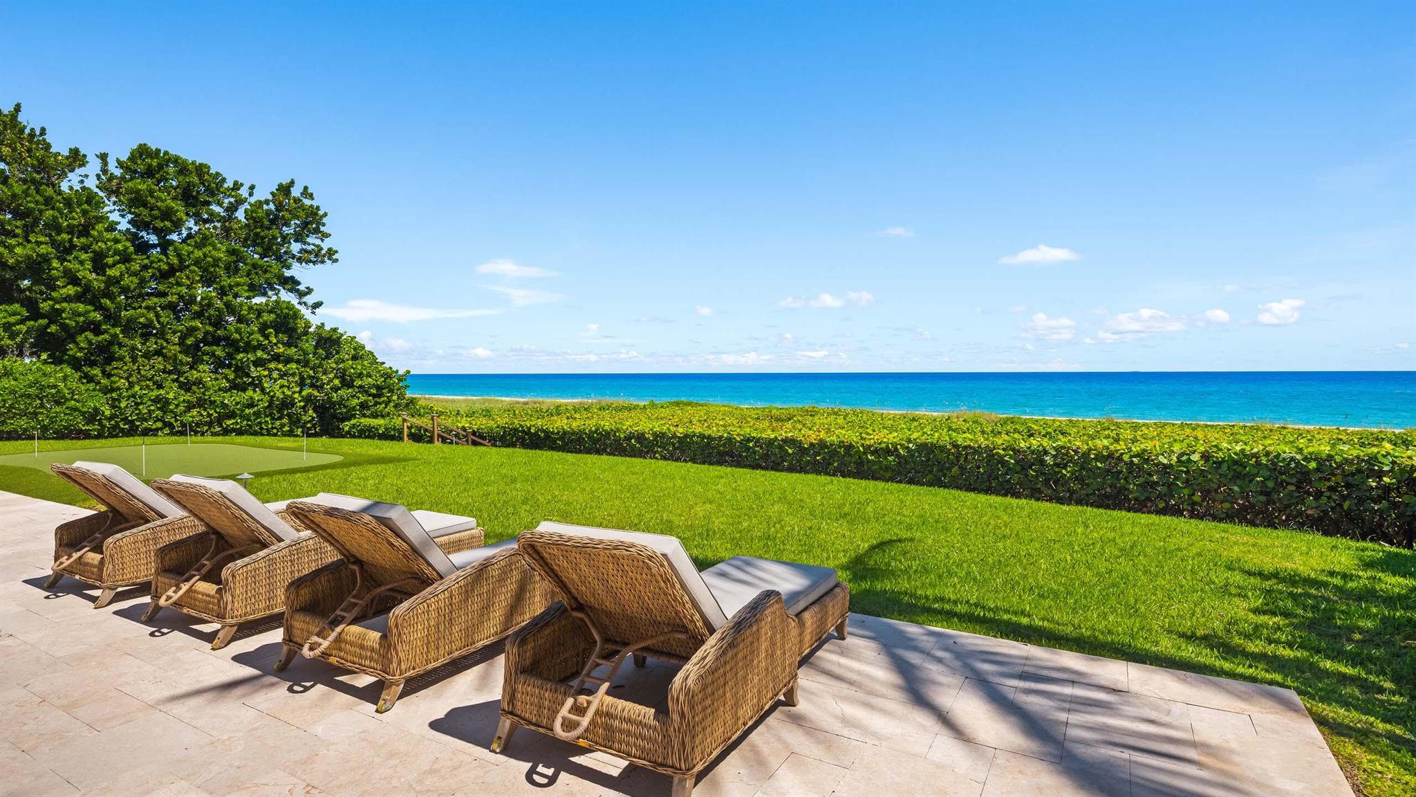 Introducing a one-of-a-kind oceanfront masterpiece in the prestigious Town of Highland Beach. Situated on 100 feet of direct ocean frontage with over 400 feet of depth, and almost 600 feet from the road to the water, this spectacular estate offers unparalleled luxury and privacy. Impeccable custom designer finishes elevate every aspect of this immaculate property. The residence boasts a stunning oceanfront pool complemented by a unique indoor pool and spa for year-round enjoyment. The expansive layout includes designer gourmet kitchen; two substantial offices that cater to modern work-from-home needs; state-of-the-art theater; and game room. With breathtaking views creating a sanctuary-like atmosphere and an oasis for relaxation, the primary suite has two separate baths with steam shower