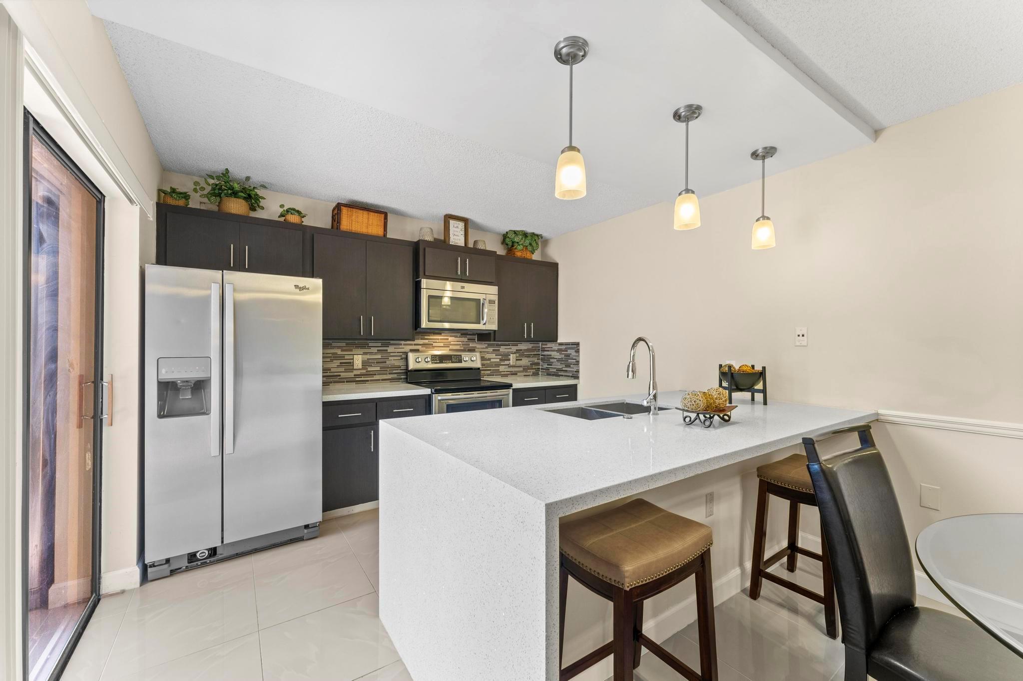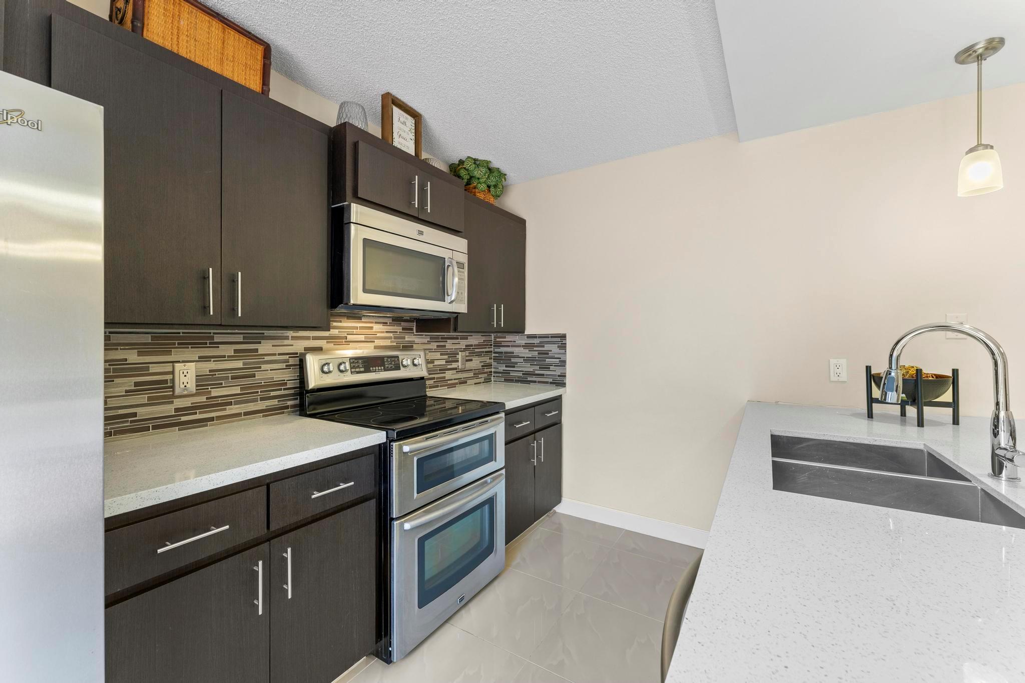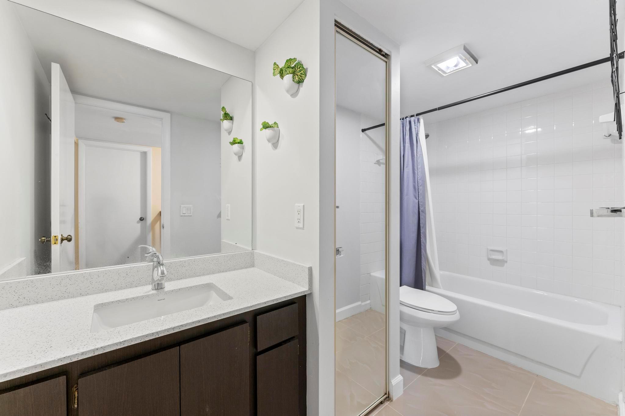 Welcome to this beautifully updated 2-bedroom, 2.1-bathroom townhouse. The open kitchen features sleek modern cabinets, stunning backsplash, quartz countertops, and stainless-steel appliances. Enjoy casual dining in the cozy eat-in kitchen. The primary bedroom offers both comfort and convenience with a spacious walk-in closet and a beautifully renovated en-suite bathroom, featuring double sinks, quartz countertops and a walk-in shower. Step outside to the fenced patio, perfect for relaxation or entertaining, with additional storage space on the side. This townhouse is the perfect blend of comfort and modern style!