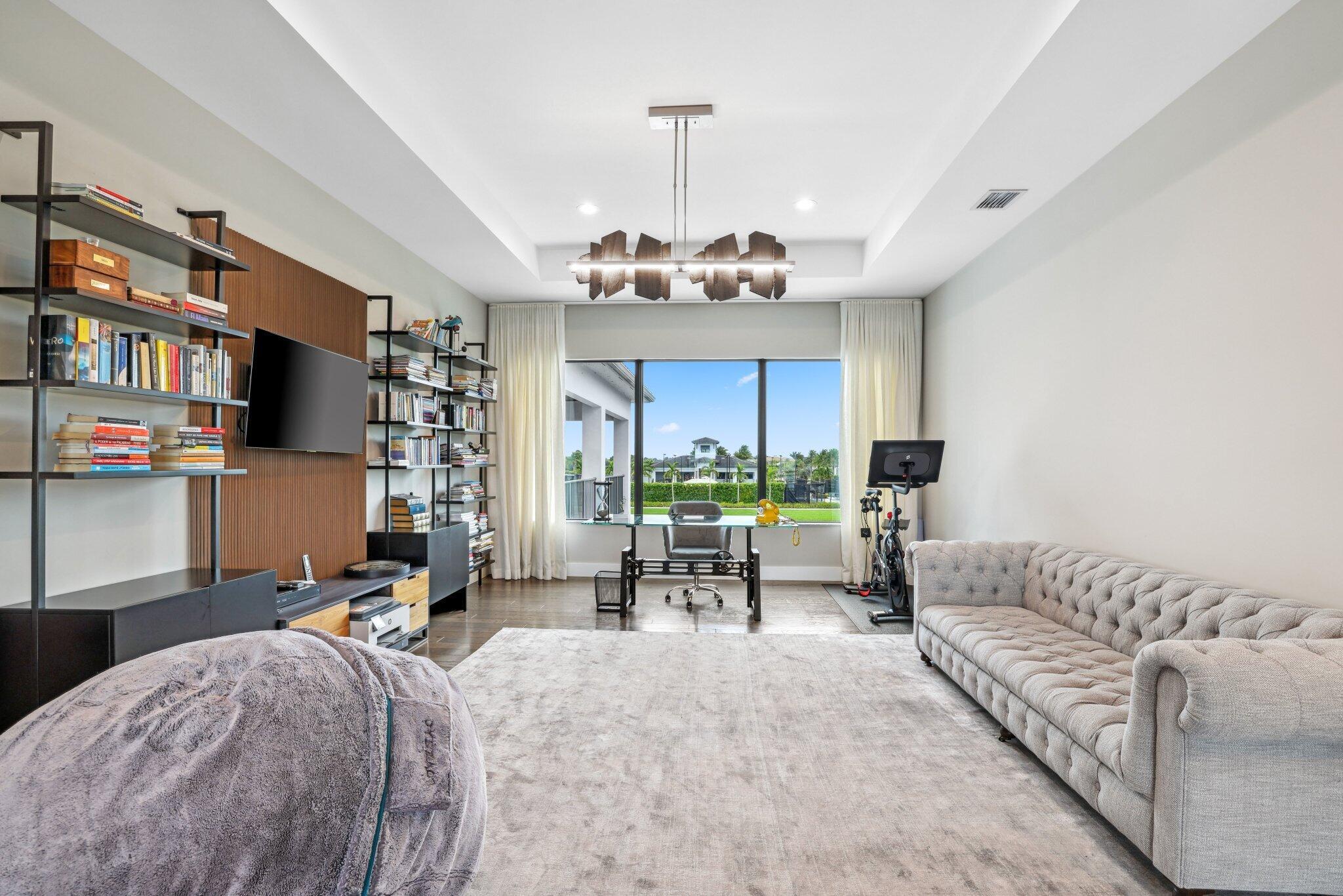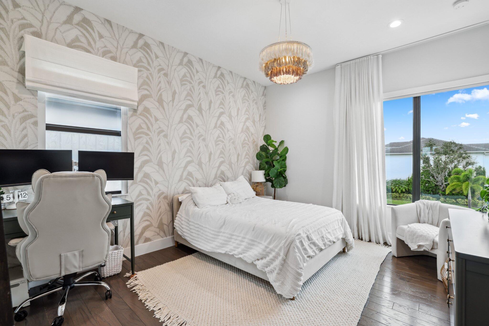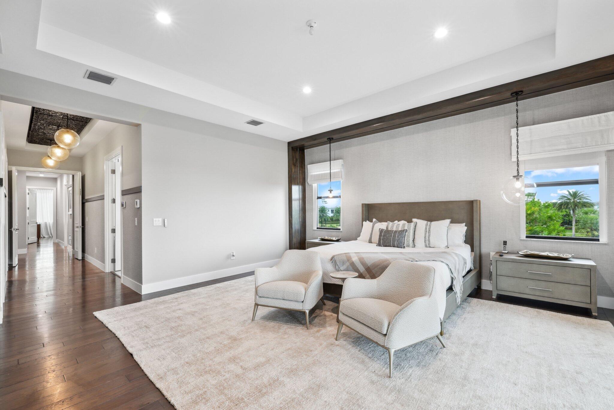 This highly upgraded, elegant estate in the sought-after Boca Bridges community offers over 6,000 square feet of living space, featuring 6 bedrooms, 7.5 bathrooms, and a sophisticated design throughout. The home showcases a gourmet chef's kitchen with sub-zero and Wolf appliances, a spacious master suite with a spa-like bathroom, and an expansive living area leading to a private outdoor oasis. Enjoy a covered patio, sparkling pool, and tranquil lake views. Boca Bridges provides resort-style amenities, including a clubhouse, fitness center, and tennis courts, all within a secure, gated community.