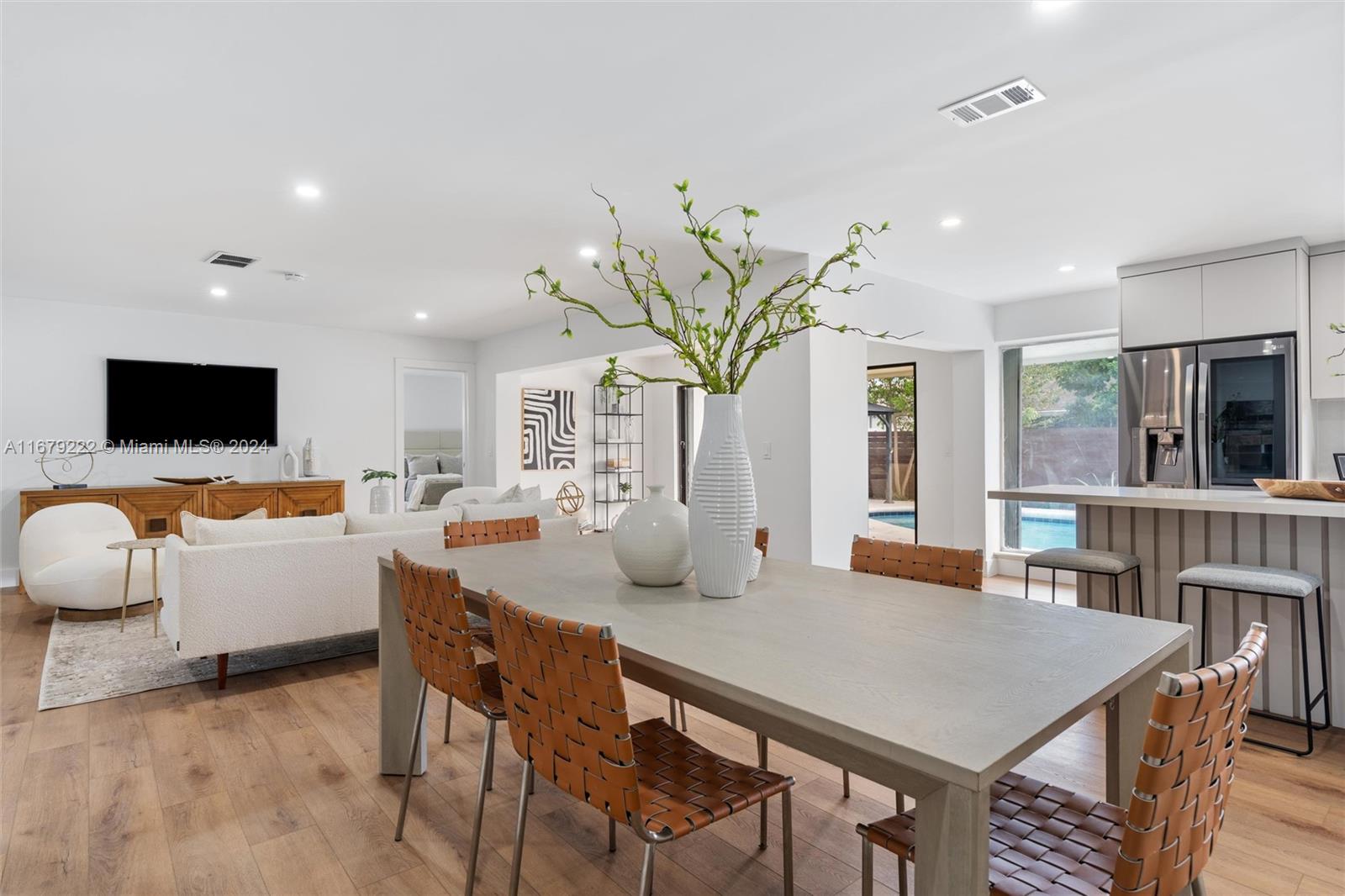 This is an incredible home with spectacular finishes, offering ample space and comfort. It features 3 spacious bedrooms and 2 beautiful bathrooms. The property also boasts a cozy patio with a swimming pool, perfect for relaxation and entertaining. The house is excellently located, close to shops, banks, schools, and hospitals, and less than 2 miles from the mall.there’s no HOA! Don't miss the opportunity to see this wonderful home for yourself!