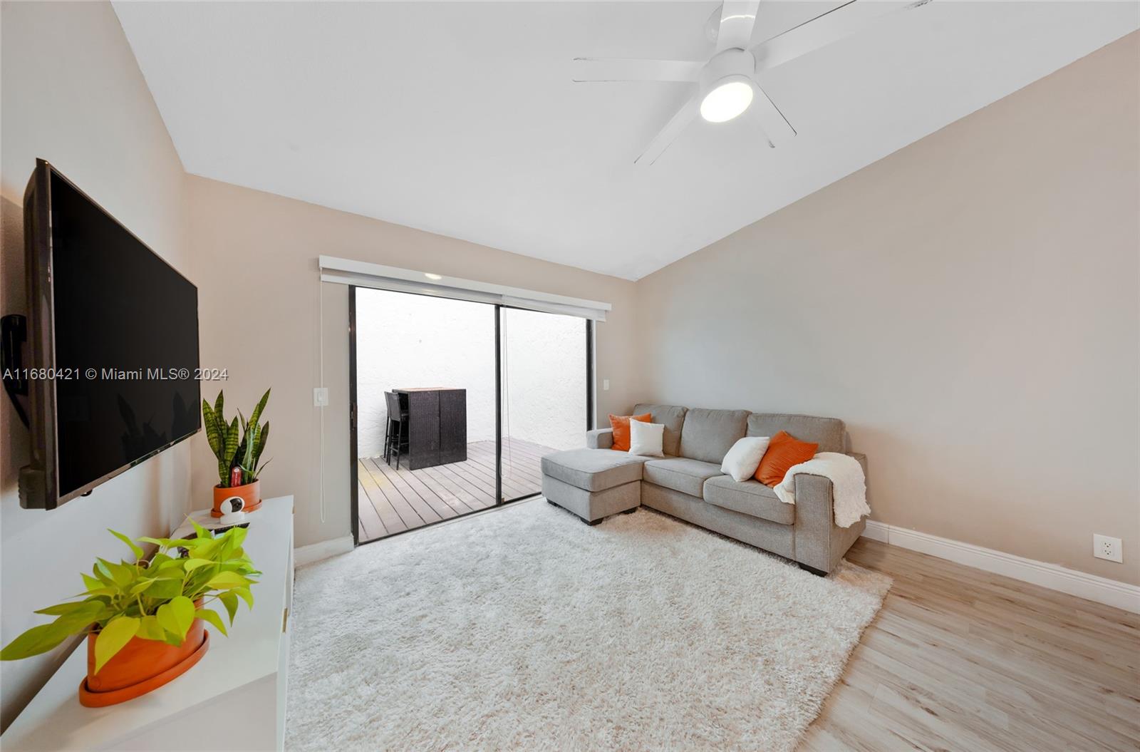 Enjoy an open-concept layout that maximizes space and natural light. The heart of the home features stainless steel appliances new washer and dryer and countertops, ample cabinetry making it a chef's delight. A generously sized master bedroom with an ensuite bathroom, complete with a walk-in closet, provides a peaceful retreat. Step outside to your private front-yard made with travertine stones, ideal for summer barbecues or cozy evenings under the stars. Fleshly painted Community with new roof. Assigned and guest parking. This address qualifies you to the top rated 10/10 Del Prado Elementary School. Only a 5 minutes walk to Gardens Shop where Publix, Skillets, Kosher Market and variety of medical offices and restaurants are located, with easy access to major highways. Easy to show.