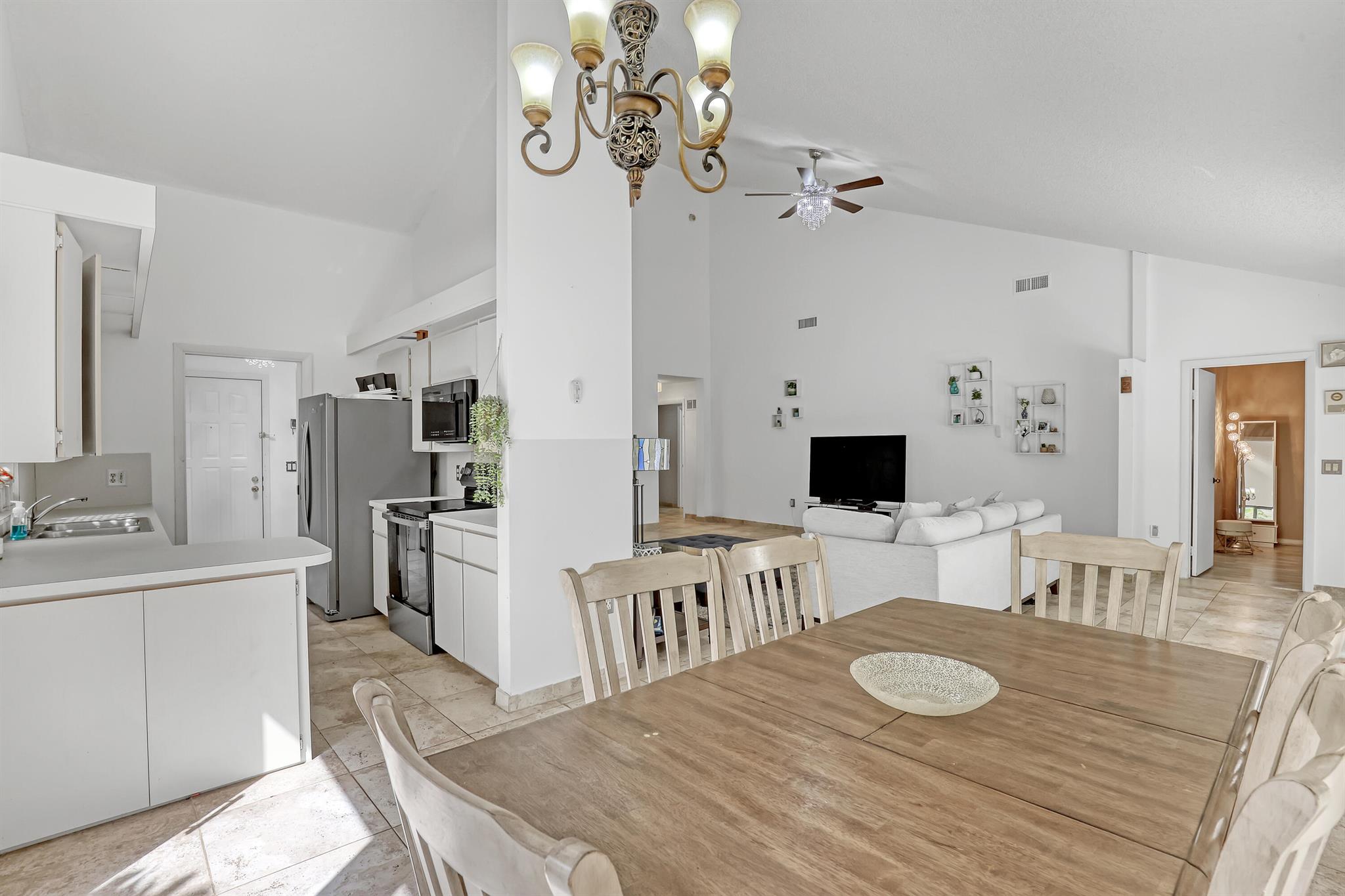 Quality-built CBS DiVosta home. This 3 BR, 2 BA home with a 2-car garage is located in Saratoga Pointe, in the Bear Lakes area. With low HOA fees you'll have access to 3 parks featuring pools, tennis, pickleball, racquetball, volleyball, playgrounds, jogging trails, a dog park and more. The main living area features vaulted ceilings and Beautiful tile floors. There are big views from the living area to the patio and an open-air patio. The kitchen has a New stainless Range, microwave, and Refrigerator. There are his and her closets, hers of course being a walk-in! The guest bedroom wing includes 2 bedrooms, a full bath, and a dedicated laundry room. The laundry room has a newer side-by-side washer/dryer. NEW