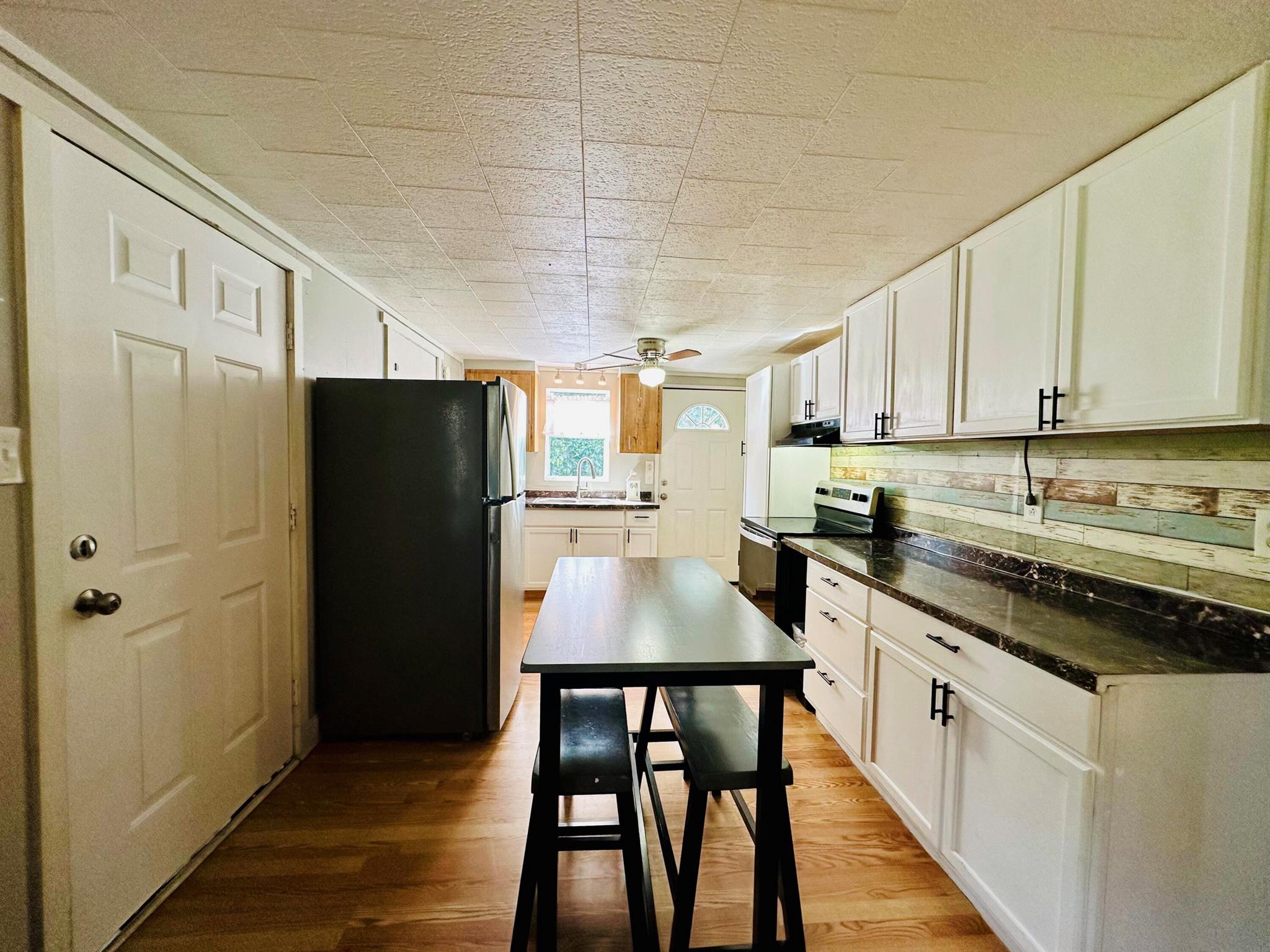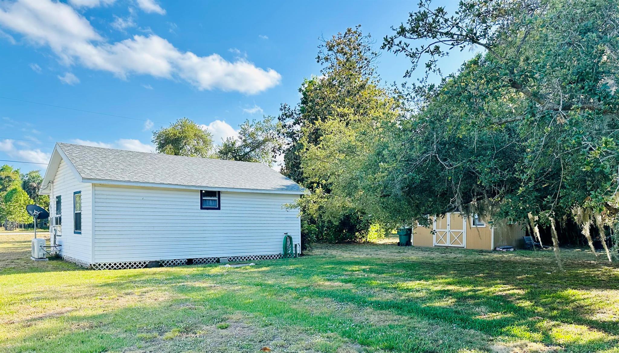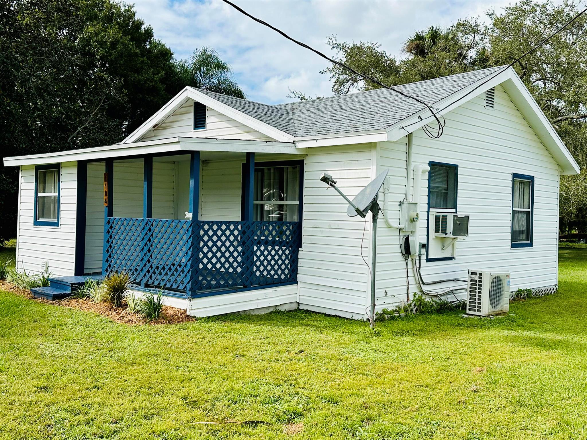 NON Flood Zone X, in desirable SW Section, Updated in 2022 and fully furnished,1960, wood frame, single family home on large .36ac lot. 2bed/1bath w/ laundry rm, living rm, & open kitchen. Covered front porch, open side porch. Two sheds w/ electric. One w/ window unit, other w/ attached lawnmower shed. Quarterly pest control, 2022 Roof, new mini split A/C w/ heat installed 2023. Public water, septic pumped & inspected w/ new lid. Conveniently located within walking distance to downtown shopping, schools, & 2 mins from boat launch. Front and rear of home accessible for ample parking. A non-paved, dead end easement road borders rear N property line. Grandfather Oak, Magnolia, & Palms. WELL MAINTAINED HOME! No owner finance. In house loan officer available, se habla espanol.
