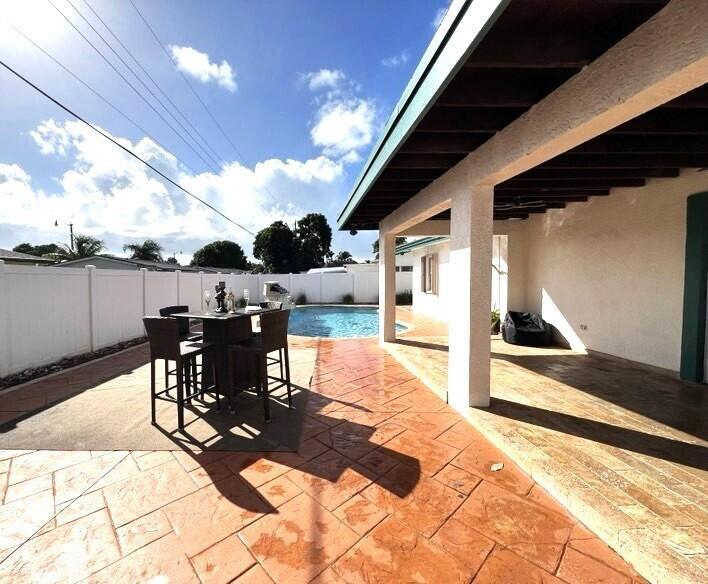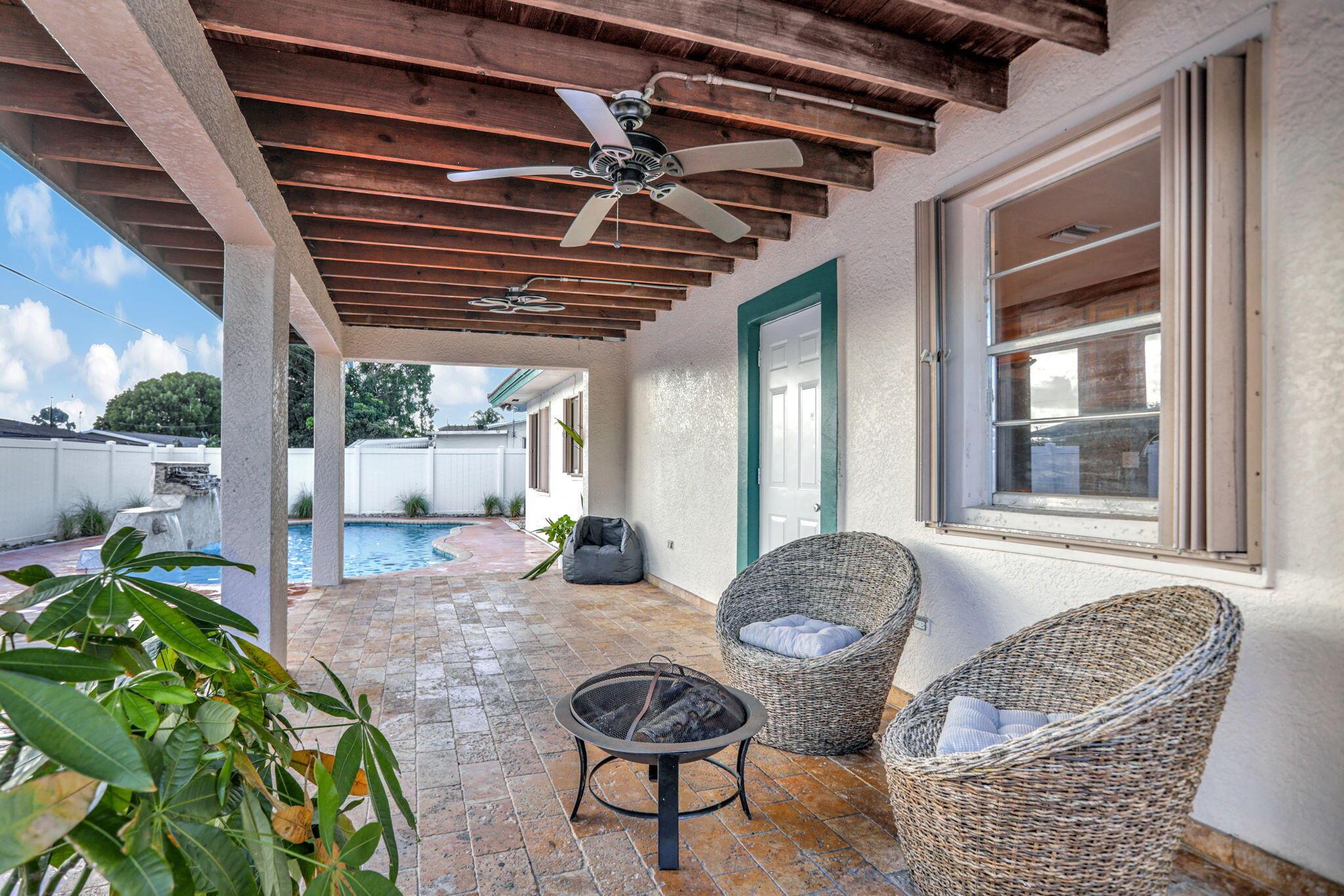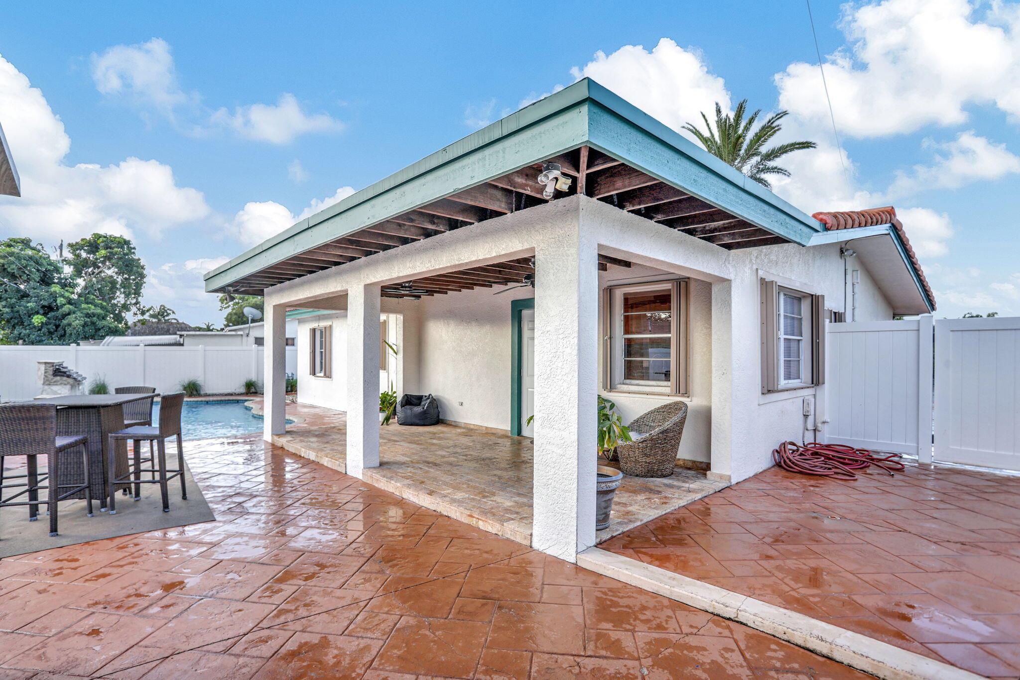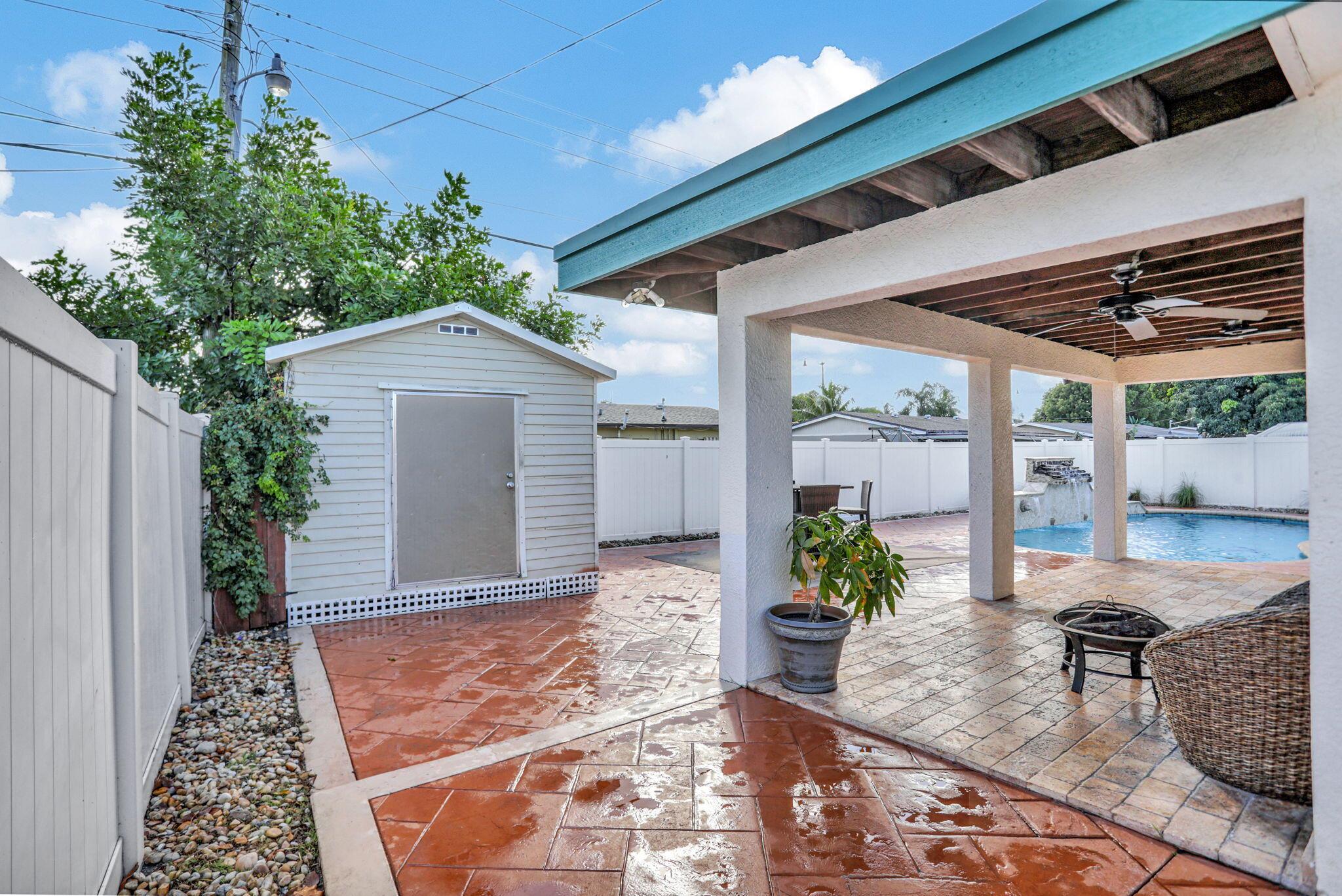 Gorgeous, updated home on large lot with mega parking and all the rings and bells. Come see the lovely updates including newer appliances, smooth ceilings, tile throughout, full accordion shutters & tankless water heater. Kitchen offers wood cabinets, granite counters & buffet bar for entertaining all. Updated bathrooms, Ice cold a/c, spacious bedrooms, 35 yr roof with 15+ years of life, huge living room and so much more! Looking for privacy? Jump into your designer salt or chlorine pool with dolphin and turtle designs, beautiful waterfalls and wrap around deck. Your covered patio makes backyard BBQ's a must! Oversized shed with W/D hook-ups makes laundry a dream while floating around your private pool. New fans, lights and fresh paint! Ask about 35K down pymt assistance-Home Town
