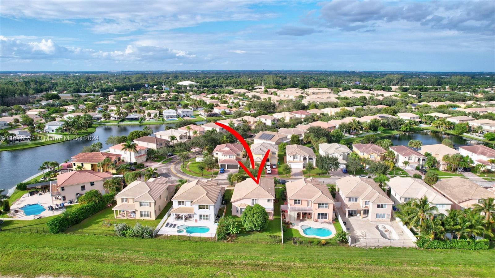 Welcome home to this inviting property nestled in the heart of Miramar. An exquisite 2-story 4 bedroom, 3.5 bathrooms, 2 car residence with a water view. One bedroom with a full bath is on the ground floor. The home has many upgrades that include iron staircase, multiple high hat lights, chandeliers (excluding front door chandelier), master bedroom balcony, propane installed gas stove. Enjoy the water view from the MB bedroom balcony. A modern kitchen featuring granite countertops, tall custom cabinets, updated stainless appliances. Accordion and electric hurricane shutters. This home is a gem waiting to be discovered! Don't miss the chance to make it yours and create unforgettable memories. Homeowners has a guarded gate with only $185 HOA fees.