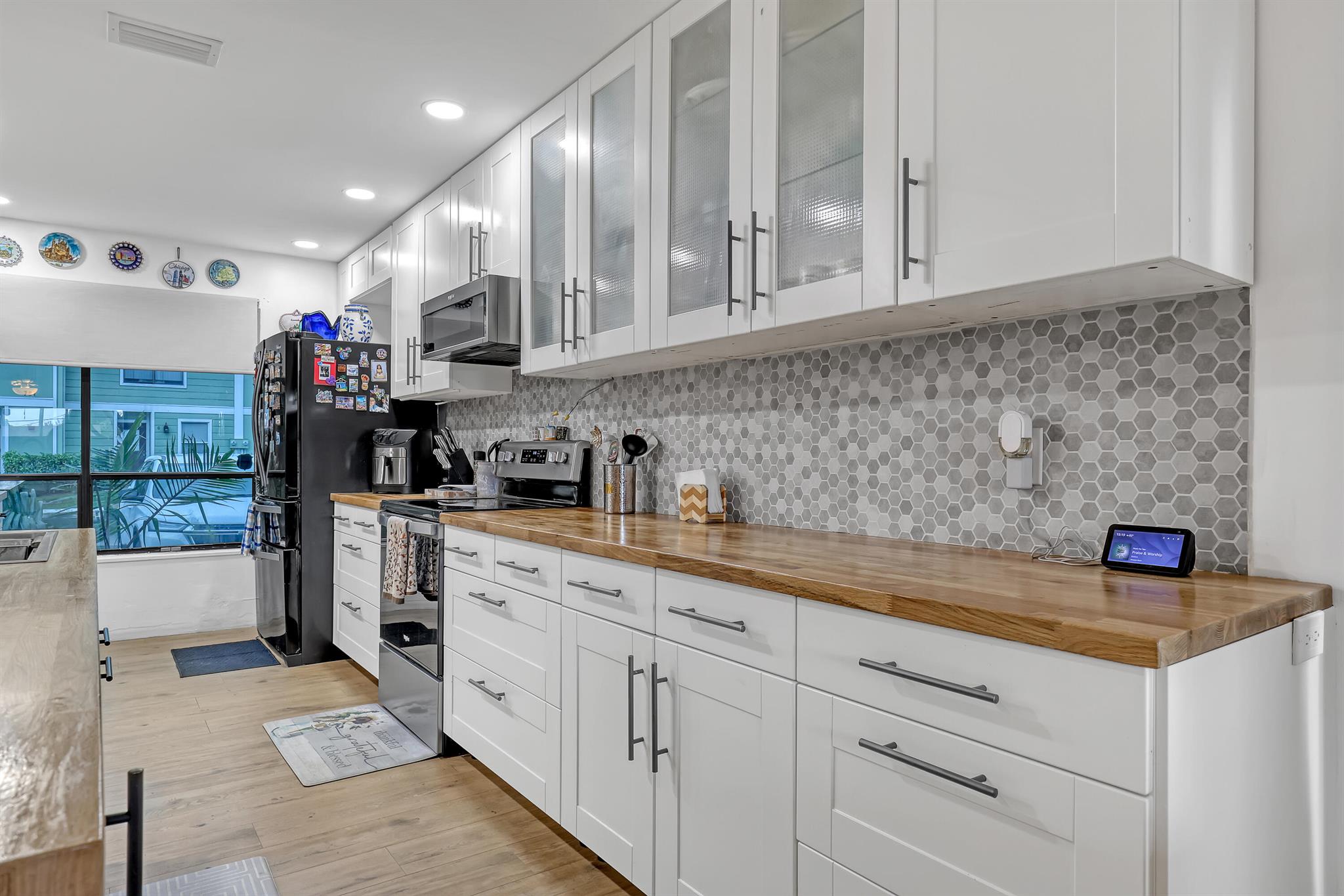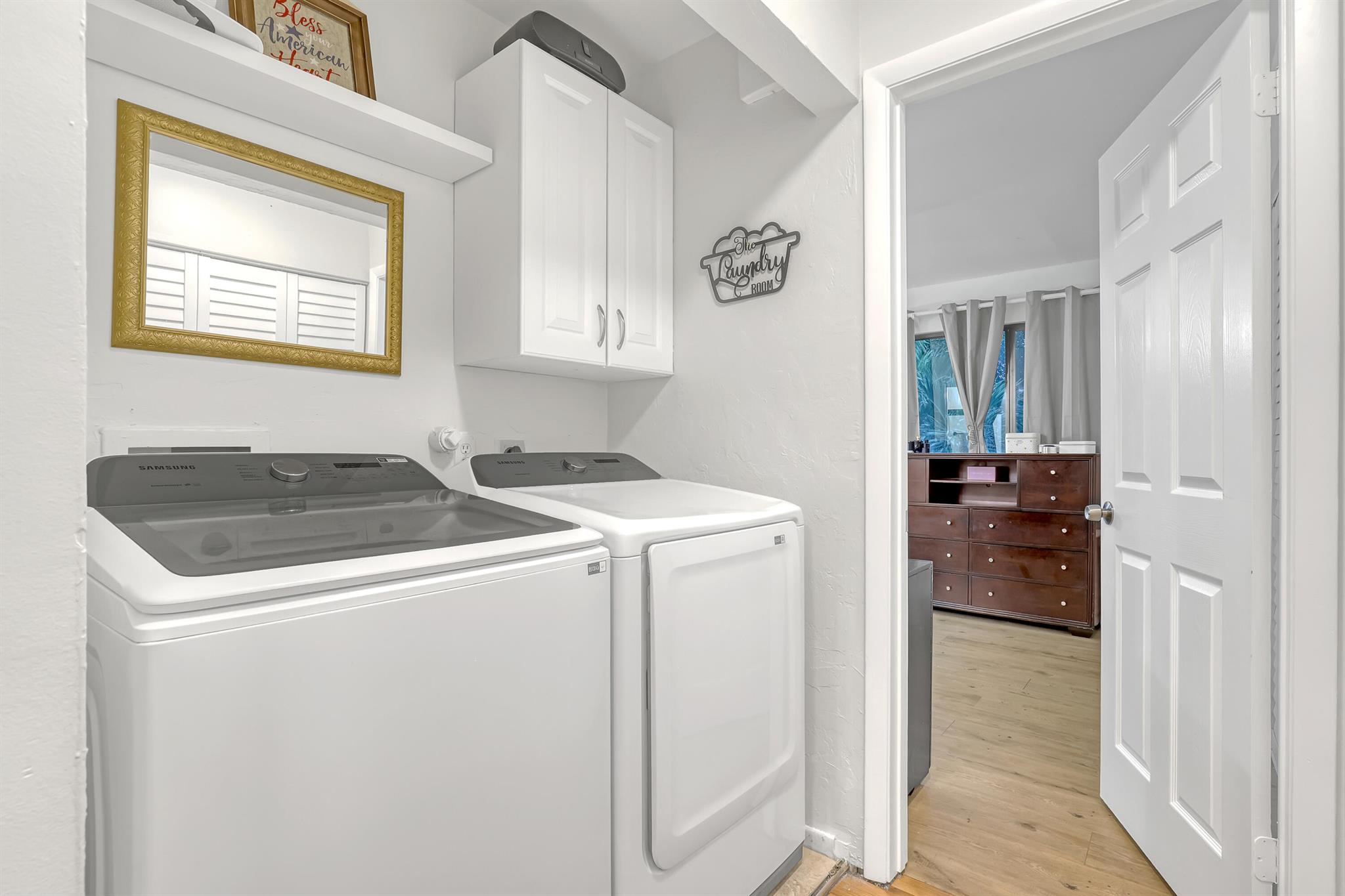 Welcome to this updated townhome in the sought-after community of Society Hill, blending modern upgrades with everyday convenience. This 3-bedroom, 2.5-bath home features a brand-new roof installed this year, impact windows in the master bedroom, and a brand-new stove. Freshly painted interiors and premium oak vinyl flooring create a bright, welcoming space, with natural light pouring in from large windows throughout. The split floor plan offers ultimate privacy, and you'll love the convenience of having the washer and dryer conveniently located upstairs. Two assigned parking spaces and low HOA fees add to the home's appeal.