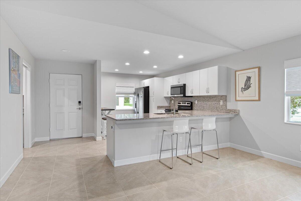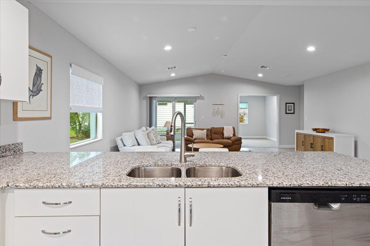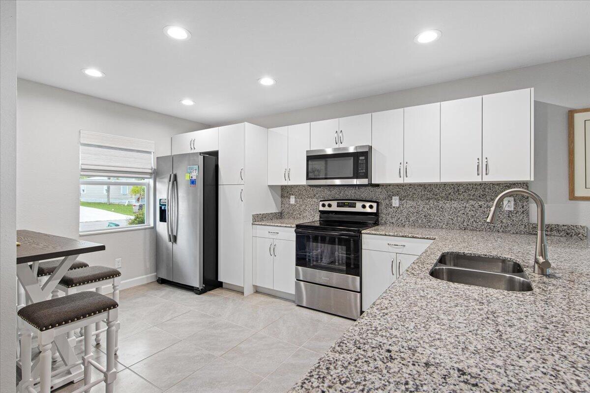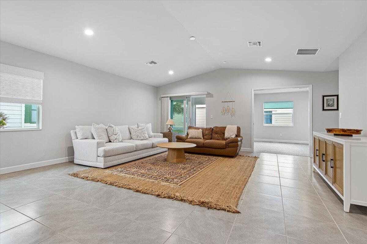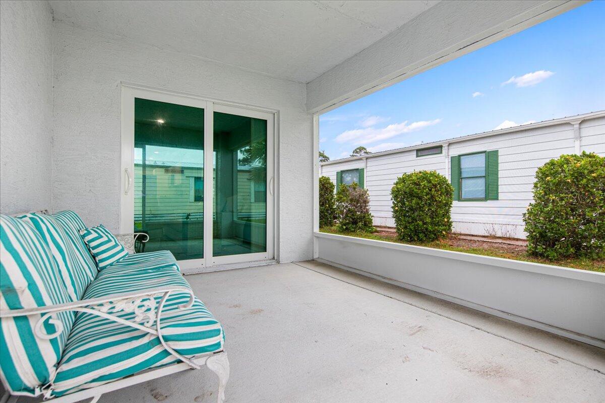 Adorable Cottage Model 1 bedroom 1.5 bath with den home. Home is only 1 year old. Tile through out main living and carpet in bedroom and den. Screened in patio. Home boast open concept with large bar in kitchen as well as eat in space. White cabinets with granite countertops in kitchen. Laundry is inside home. Home sits on a corner lot in the beautiful Spanish Lakes 55+community. Community is a land lease community. Lawn care and trash removal included in lot rent. 2 pools, tennis, pickleball, bocceball, shuffle board. club house and much more.