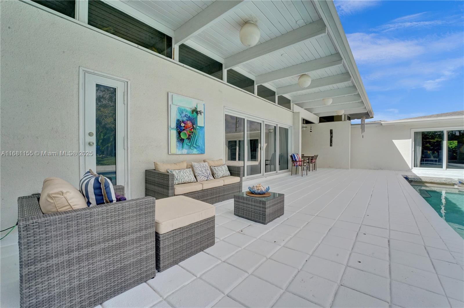 Welcome to your dream oasis! Meticulously renovated, this pool home on a double lot, offers opulent living. With soaring ceilings & exposed wood beams, a modern kitchen w/ black onyx counters, newer roof & impact windows/doors, every detail exudes luxury. Featuring 4 beds, 4 baths & over 3700 SF, it's perfect for a large family. Ample space for a fifth bedroom. Expansive, open layout filled w/ natural light. It boasts 2 spacious primary suites on opposite sides of the home. The first enormous principal bedroom is a true sanctuary, complete w/ a cabana bathroom. Outside, the backyard is a private paradise w/ a sparkling pool & lush mature landscaping. Live the resort lifestyle in prestigious Hollywood Lakes, minutes from the beach, downtown, marina/boat ramp, parks, airports & golf courses.