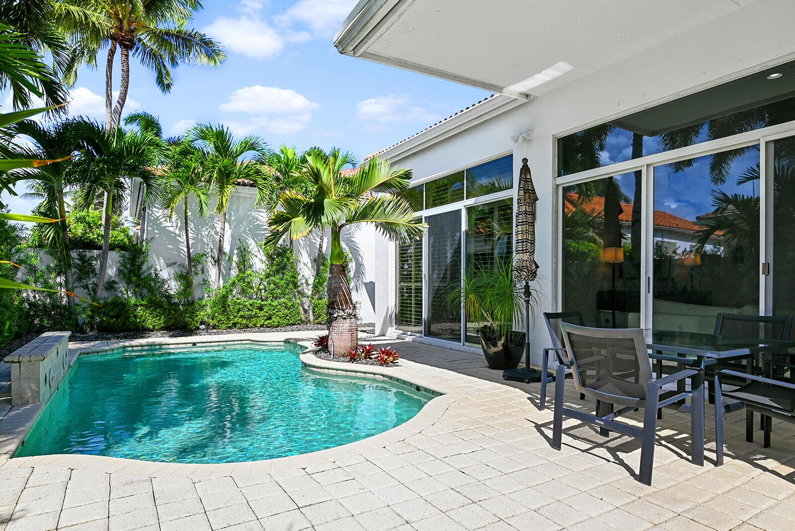 Rarely available & highly desirable stunning 3 bedroom, 2.5 bath single story gem in prestigious Woodfield Country Club is a must see. Located in Mayfair, this modern & elegant home features high ceilings, a light-filled open layout & a private pool perfect for entertaining. The neutral tile floors & white walls will complement any design. Enjoy a beautifully renovated chef's kitchen equipped with top-of-the-line Miele appliances, the dining room features a custom credenza & built in cabinetry. The updated laundry room with new washer & dryer is adjacent to the kitchen. The luxurious primary suite has glass sliding doors & plantation shutters, his & her custom closets & an opulent bath with a soaking tub & shower. Enjoy your private backyard oasis with pool, patio & meticulous landscaping