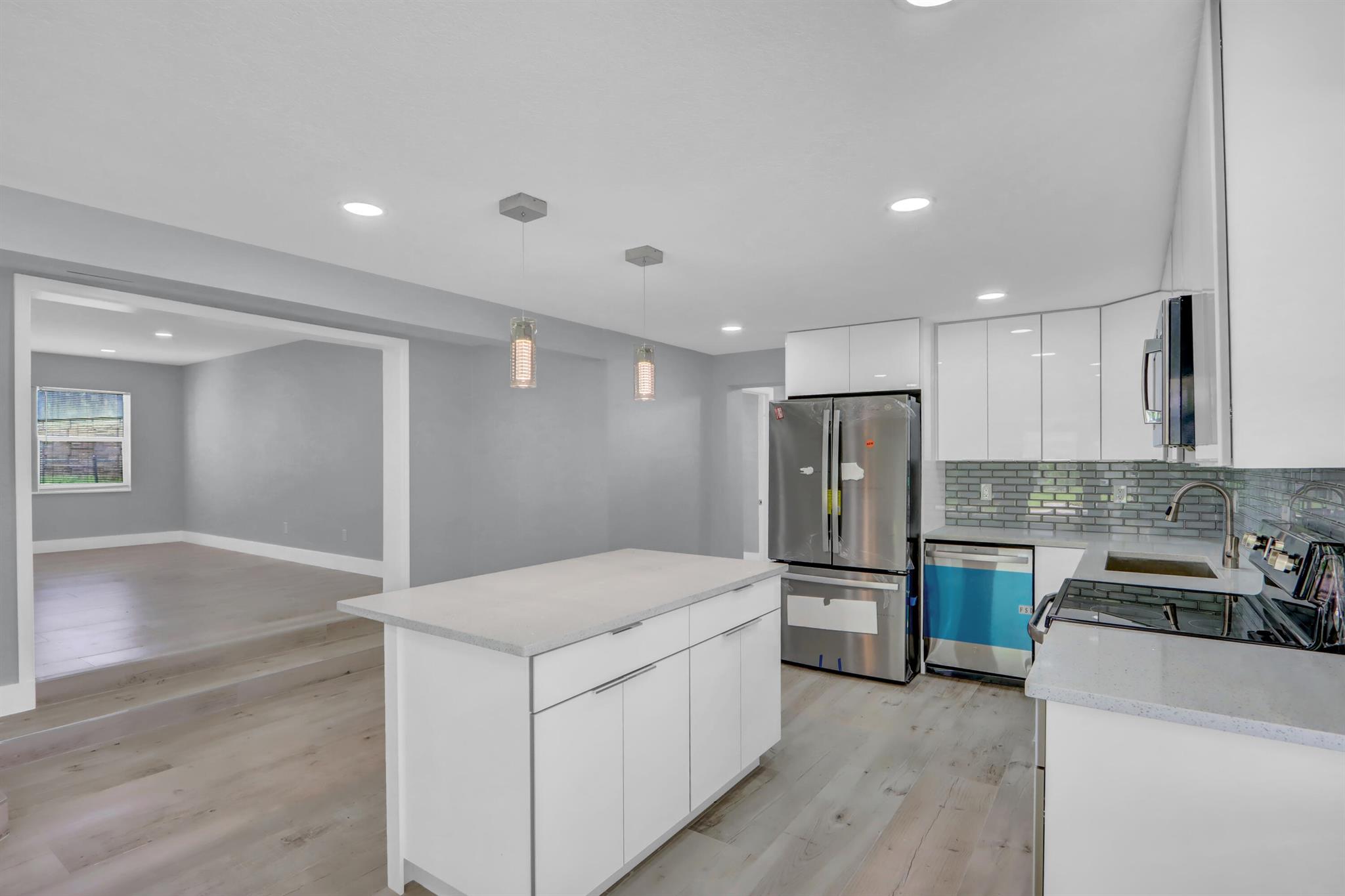 Check out this recently renovated single-family home located in the historic area of West Palm Beach. With a total sqft of 2985, this spacious home has total living 1805 sqft, a covered porch area with 830 sqft, and a separate 350 sqft covered building, that can be converted in an in-law apartment. It also has 3 bedrooms, 2 baths, new roof, inside laundry room, fenced backyard and a new kitchen with brand name stainless steel appliances and a waterfall island. This property has an extra room that can be used as an office or extra storage area. Large backyard with fruit trees and space for a pool. Conveniently located close to supermarkets, pharmacies, and major roads. Come and see this property now!