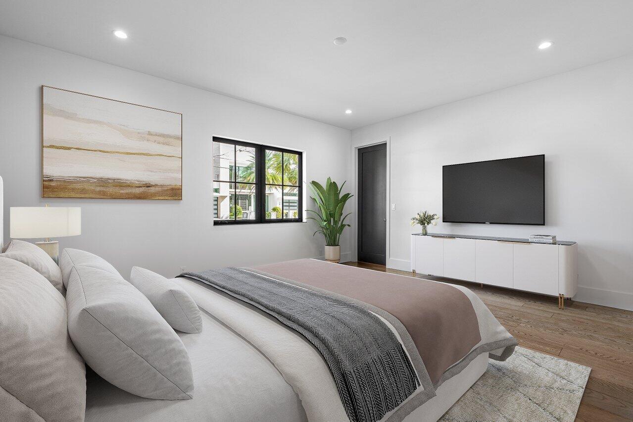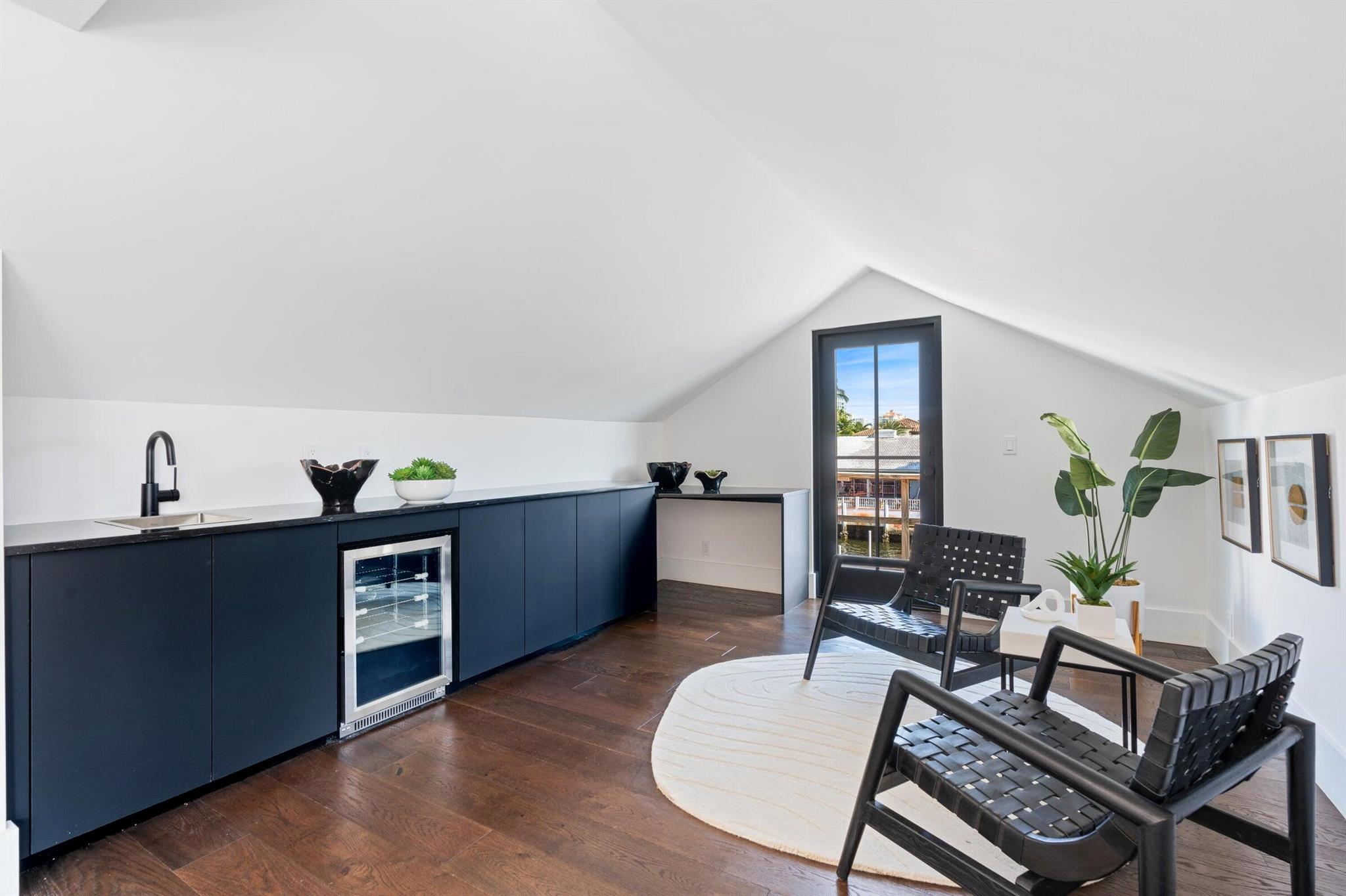 Step into this fully updated and meticulously renovated, transformed from the roof to the foundation, including every finish encompassed within - that is home at 2832 NE 37th Court. The curved, newer white architecture, and all black crested roofing, embodies the marking of a powerful statement piece seen by land, sea, or air. This rare, modern luxury, farmhouse estate, lies on a spacious 10,000 square foot lot, with 100' waterfrontage. Designed by a 360-lens seeking rarity, edge, elegance, glamour, and simplicity combined, this 5-bed, 5.5 bath estate brought that vision to real-life. The moment guests enter, they are captivated by the near floor-to-ceiling, cascading crystal chandelier. Downstairs office/den can easily be converted to a bedroom, complete with a built-in closet.