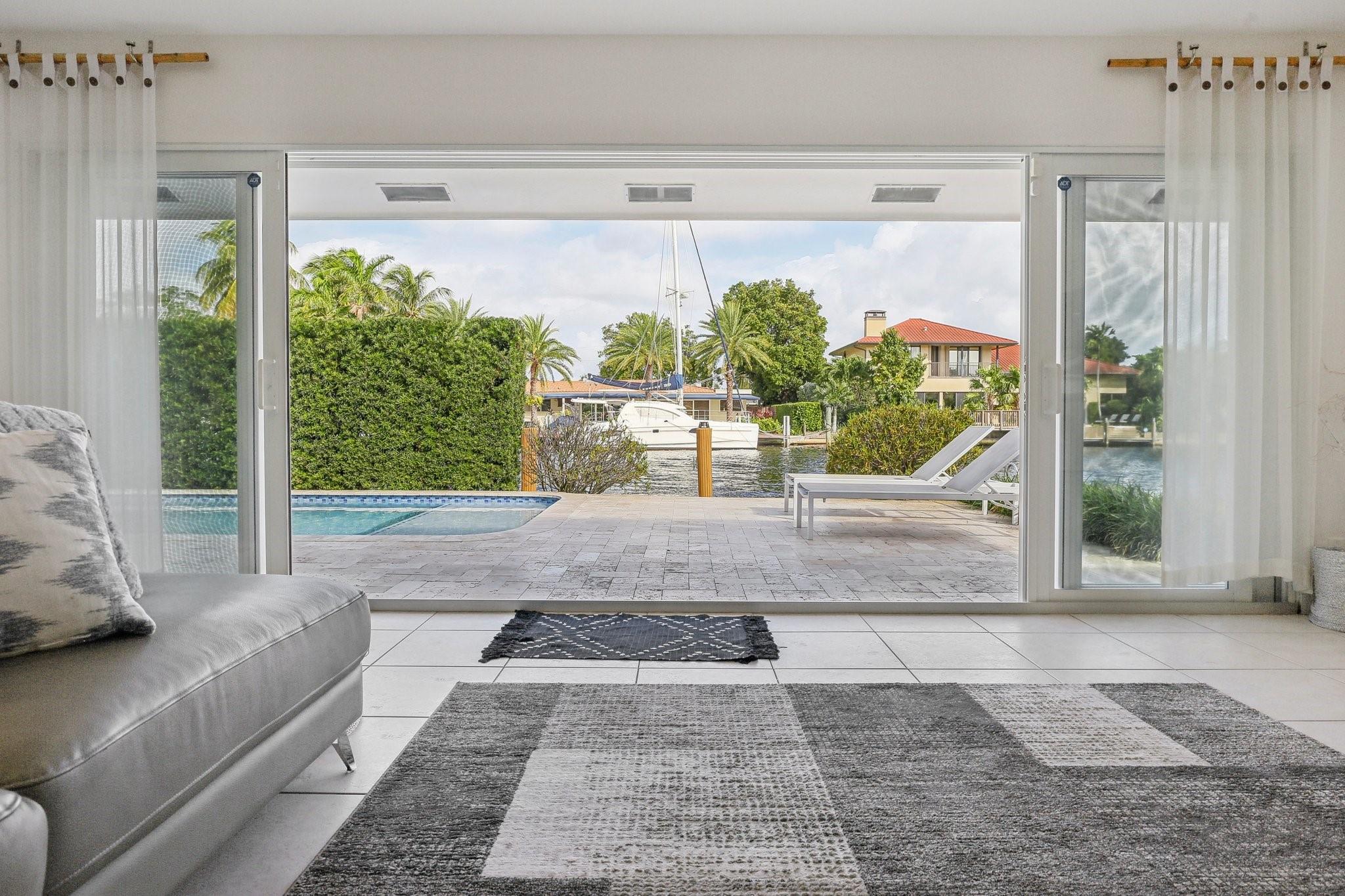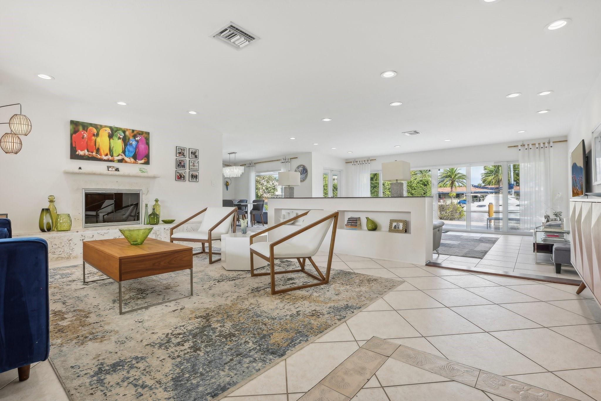 This beautifully renovated 3-bedroom, 2.5-bath home offers 100 feet of waterfront with a 90' dock and a spacious turning basin, approximately 140 feet across, boat lift included. Convenient access to shops and restaurants, and located in the highly desirable Bayview School District. The stunning kitchen is designed for both style and function, featuring a gas stove, double convection ovens, granite countertops, a wet bar, and a wine fridge—perfect for entertaining. The open-concept dining area flows effortlessly into two spacious living rooms, creating the ideal layout for gatherings. Step out your sliding glass doors to a spacious pool, dock, boat lift, waterfront living at it's finest. Large airconditioned garage. Best waterfront lot in Coral Ridge!