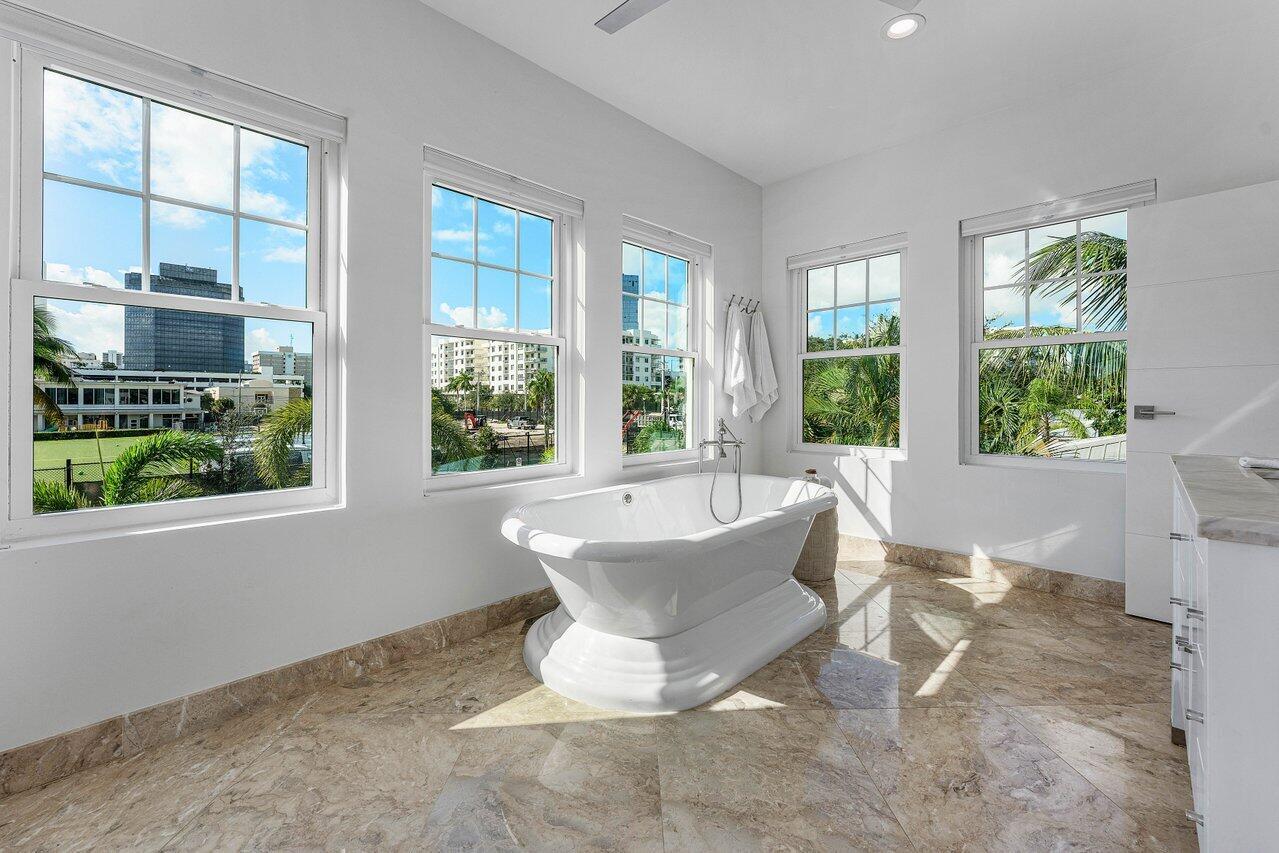 Nestled within a rich tapestry of history and modern elegance, this stunning luxury residence, originally built in the 1920s, has been meticulously transformed into a modern haven of comfort and style. A comprehensive 2020 renovation brought this historic home into the present, blending its classic charm with top-tier, contemporary amenities. The fully permitted restoration included new framing, plumbing, electrical systems, and the addition of hurricane-rated windows and enhanced security features, such as a new gate system. Inside, the gourmet kitchen stands as a masterpiece of culinary design, boasting a Wolf induction range (convertible to gas), and premium Bosch, Miele, and Viking appliances, all framed by sleek quartz countertops and a spacious center island. The master suite