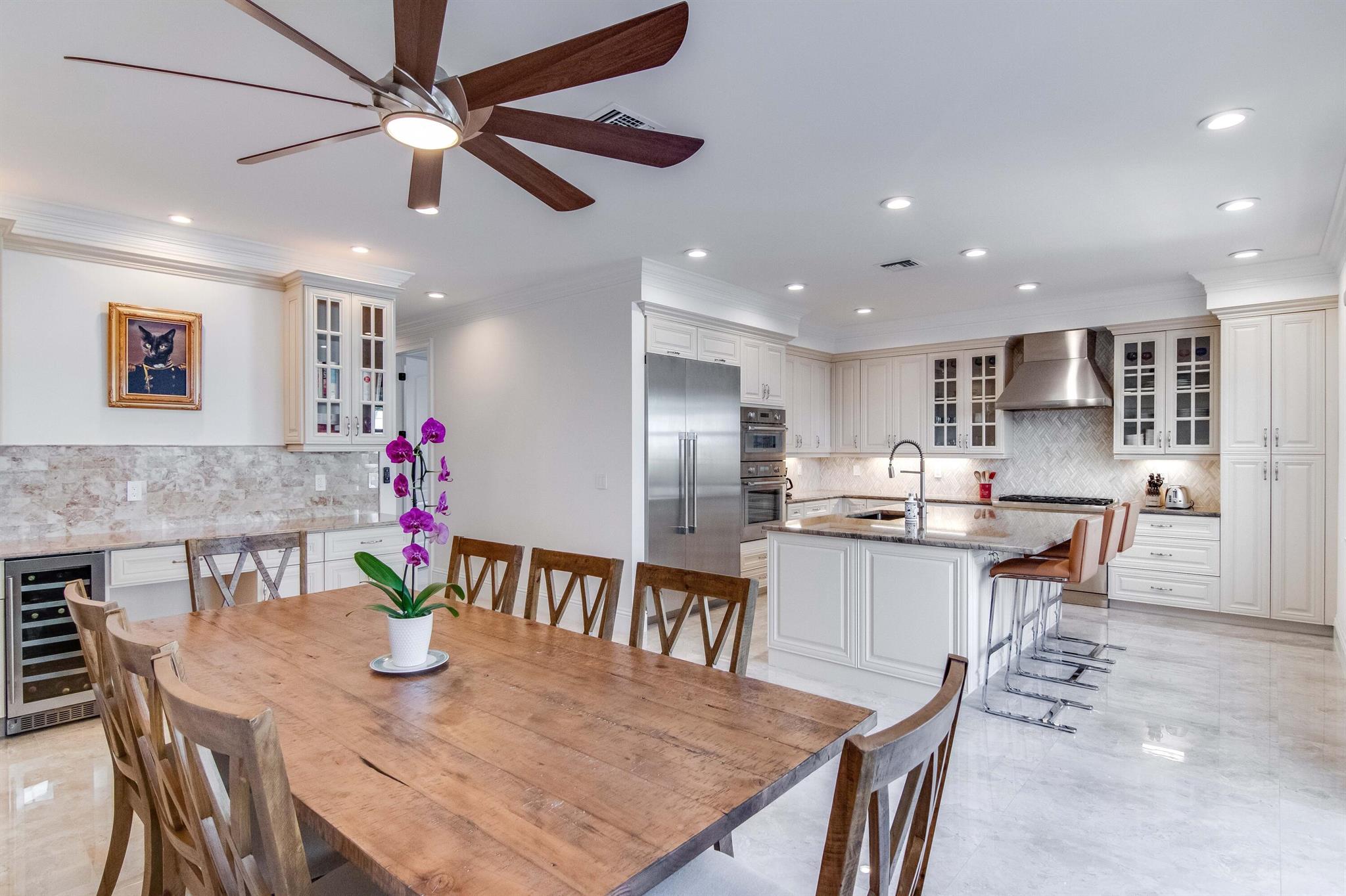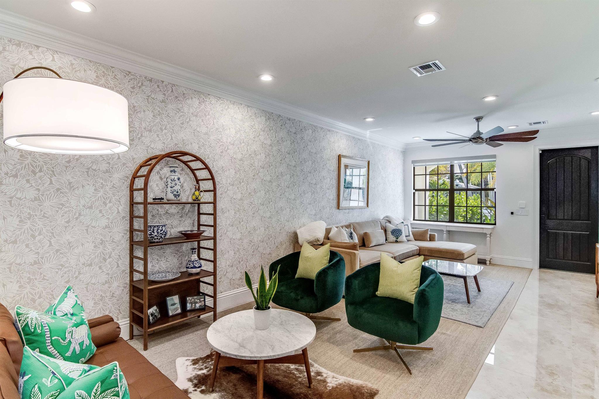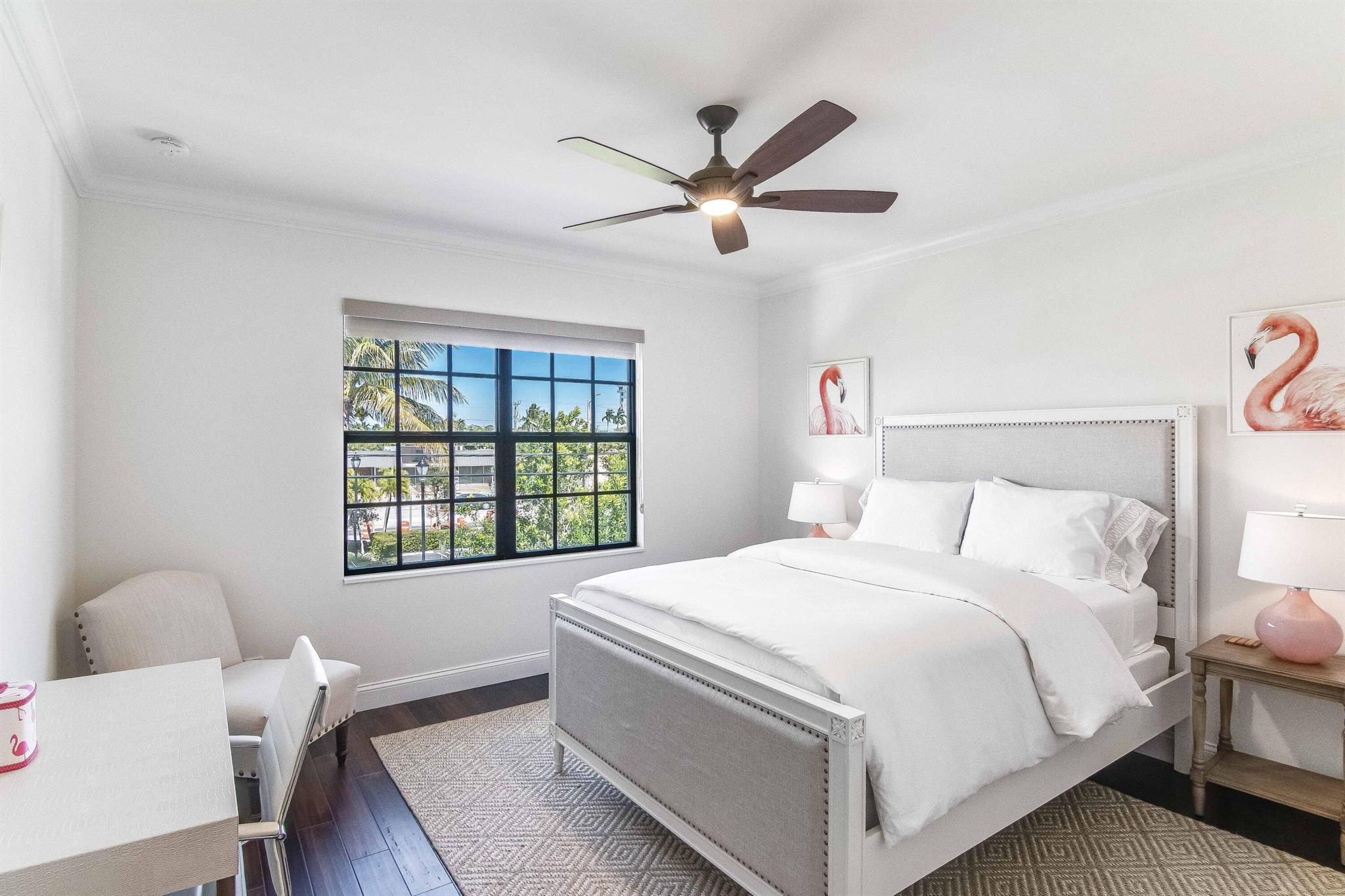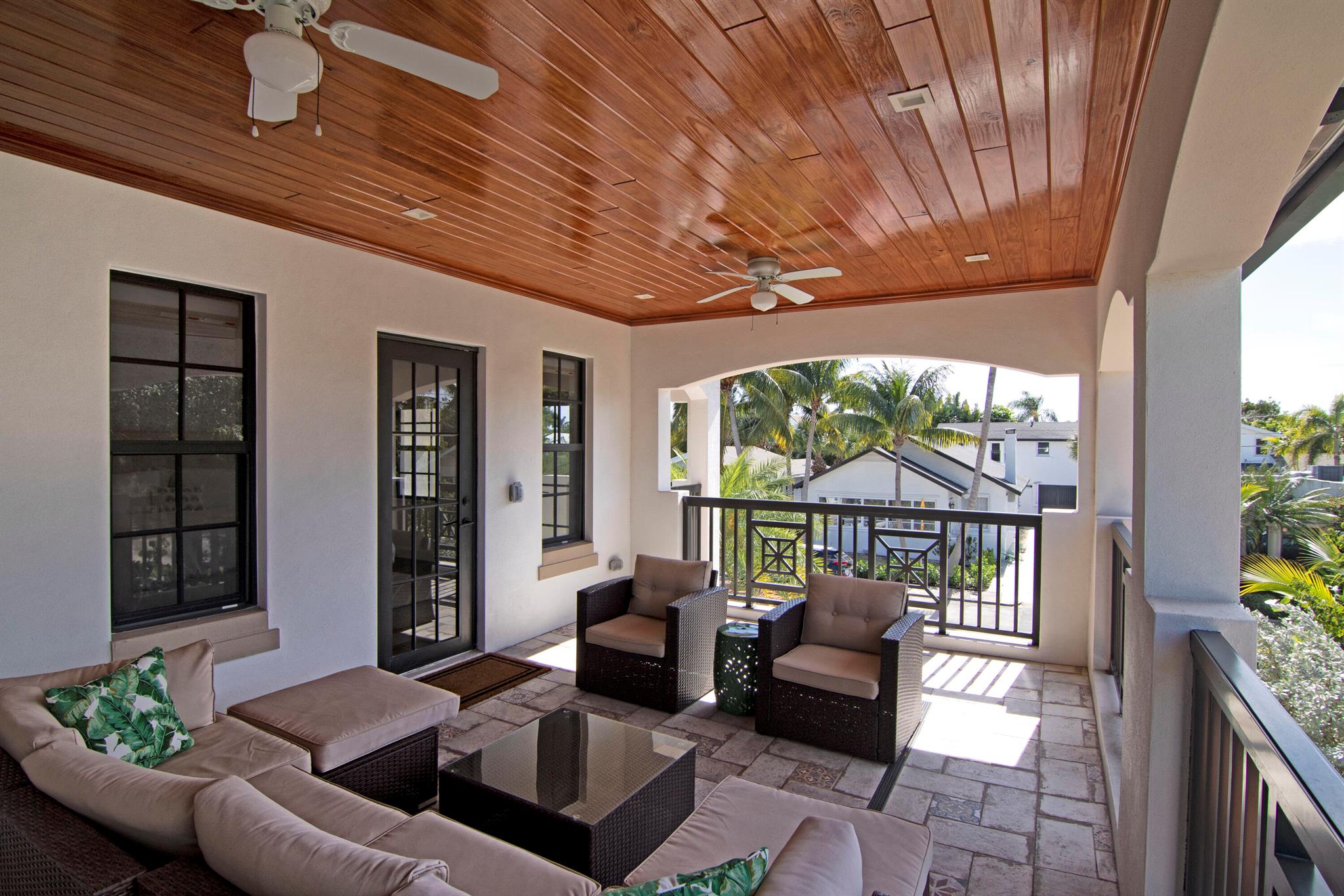 Presenting a luxurious Mediterranean-style townhome in the heart of West Palm Beach, ideally located in SoSo between Olive Avenue and Flagler Drive. Built in 2020, this sunlit home features spacious, open living areas and offers 4 bedrooms and 3.5 baths. The custom kitchen is outfitted with premium Thermador appliances, natural gas cooking and oversized island. Large glass doors open to a private outdoor oasis, complete with a recently installed pool. The living areas are adorned with imported porcelain tile, while the rest of the home showcases stunning wood floors. The primary suite boasts an expansive walk-in closet, a generous bathroom with a custom glass-enclosed shower, a separate tub, and two private balconies. A convenient laundry area is located on the second floor