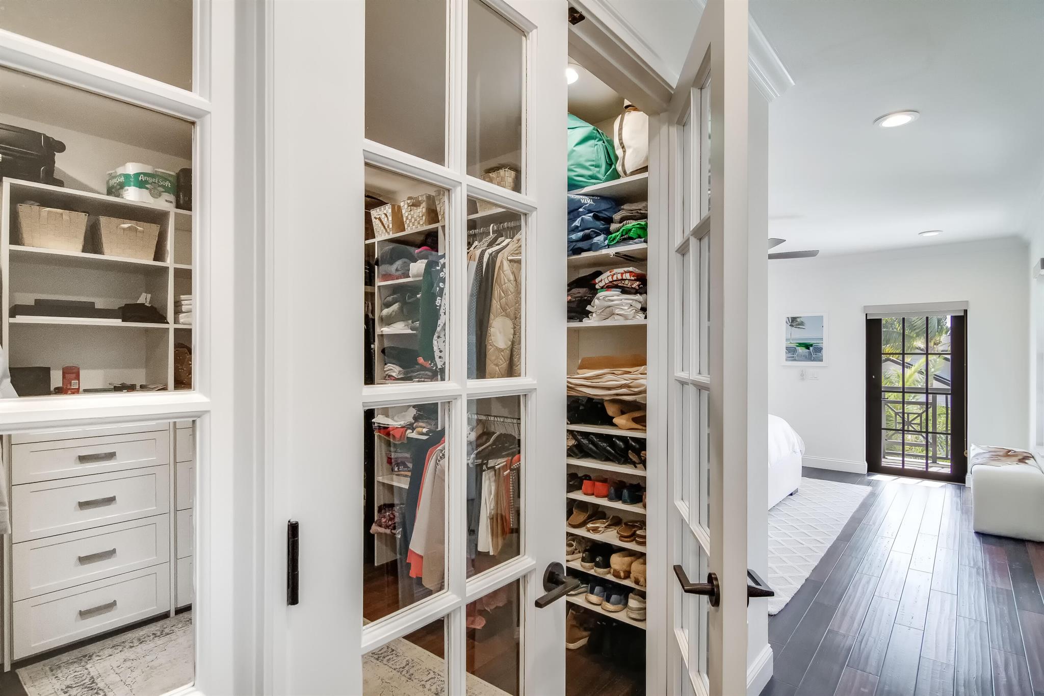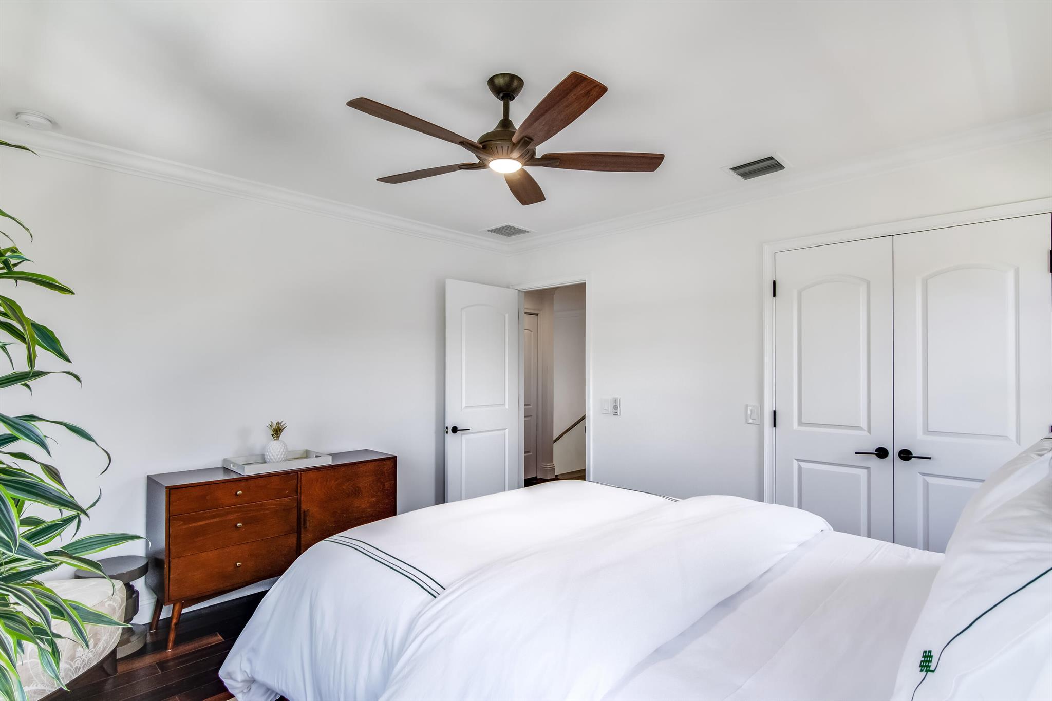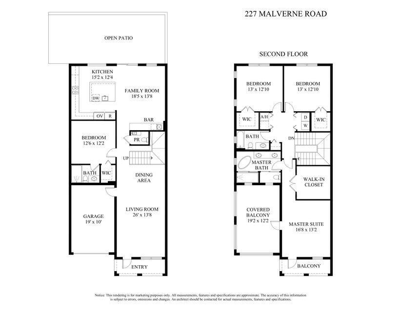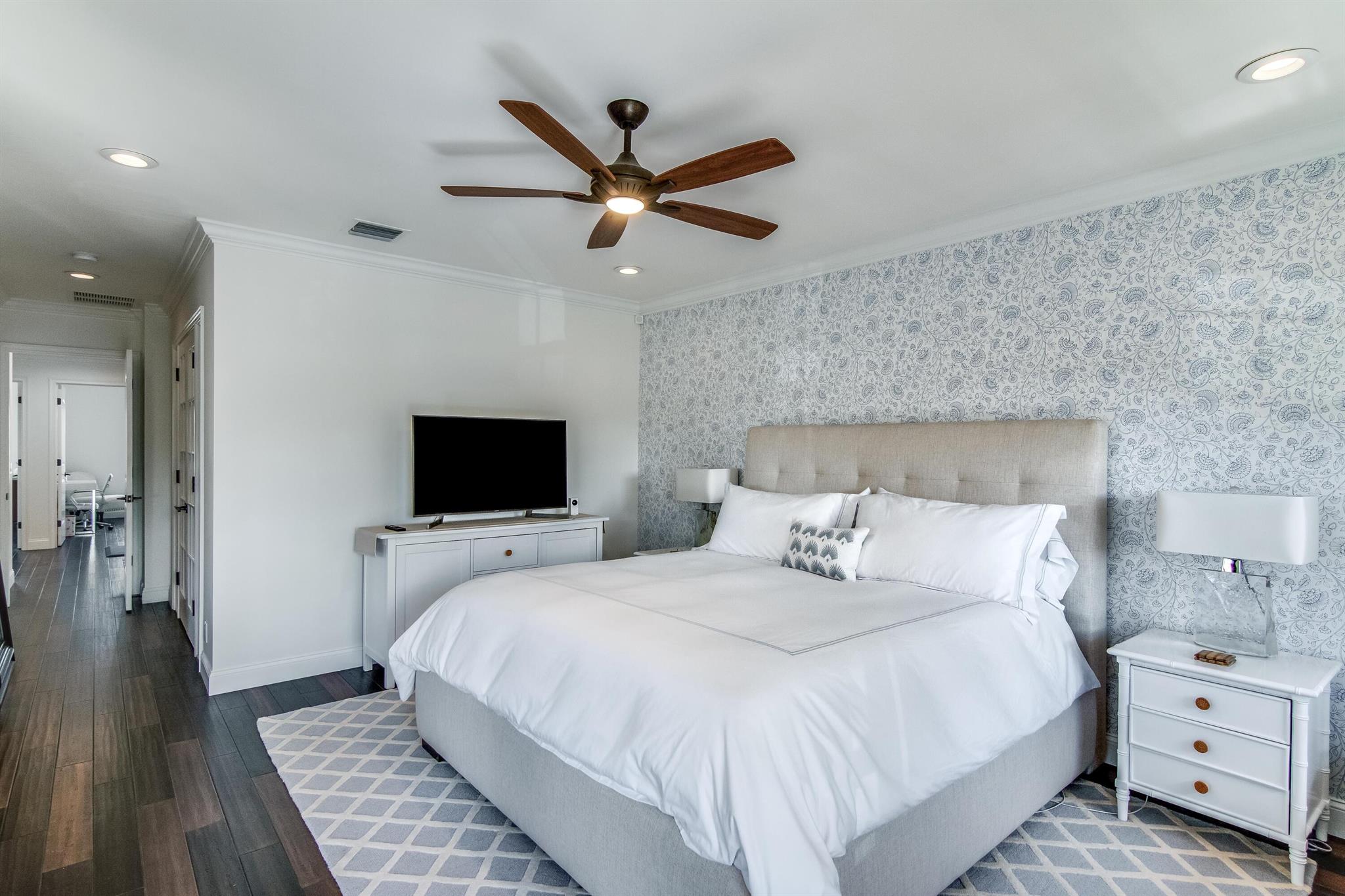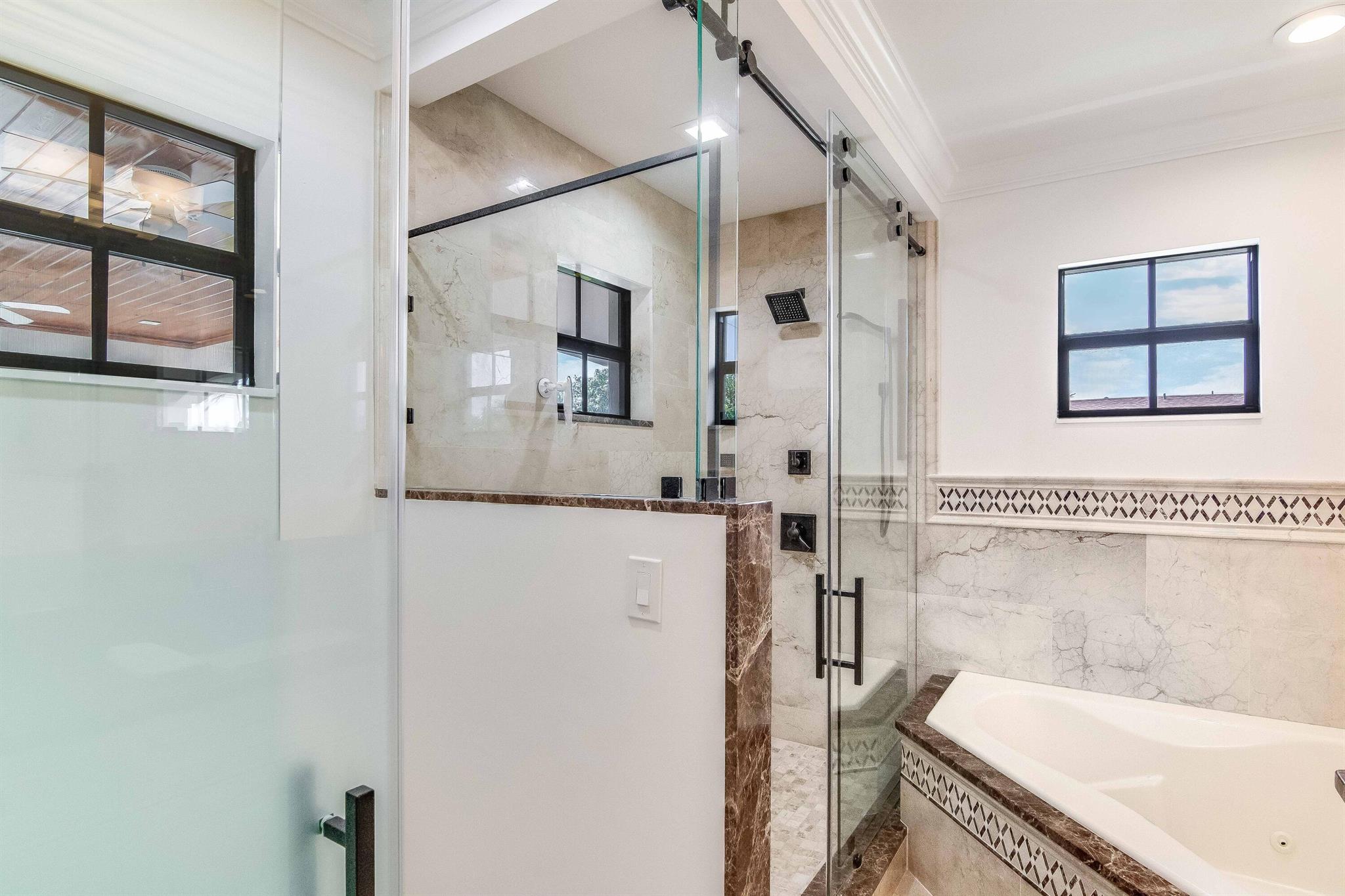 Presenting a luxurious Mediterranean-style townhome in the heart of West Palm Beach, ideally located in SoSo between Olive Avenue and Flagler Drive. Built in 2020, this sunlit home features spacious, open living areas and offers 4 bedrooms and 3.5 baths. The custom kitchen is outfitted with premium Thermador appliances, natural gas cooking and oversized island. Large glass doors open to a private outdoor oasis, complete with a recently installed pool. The living areas are adorned with imported porcelain tile, while the rest of the home showcases stunning wood floors. The primary suite boasts an expansive walk-in closet, a generous bathroom with a custom glass-enclosed shower, a separate tub, and two private balconies. A convenient laundry area is located on the second floor