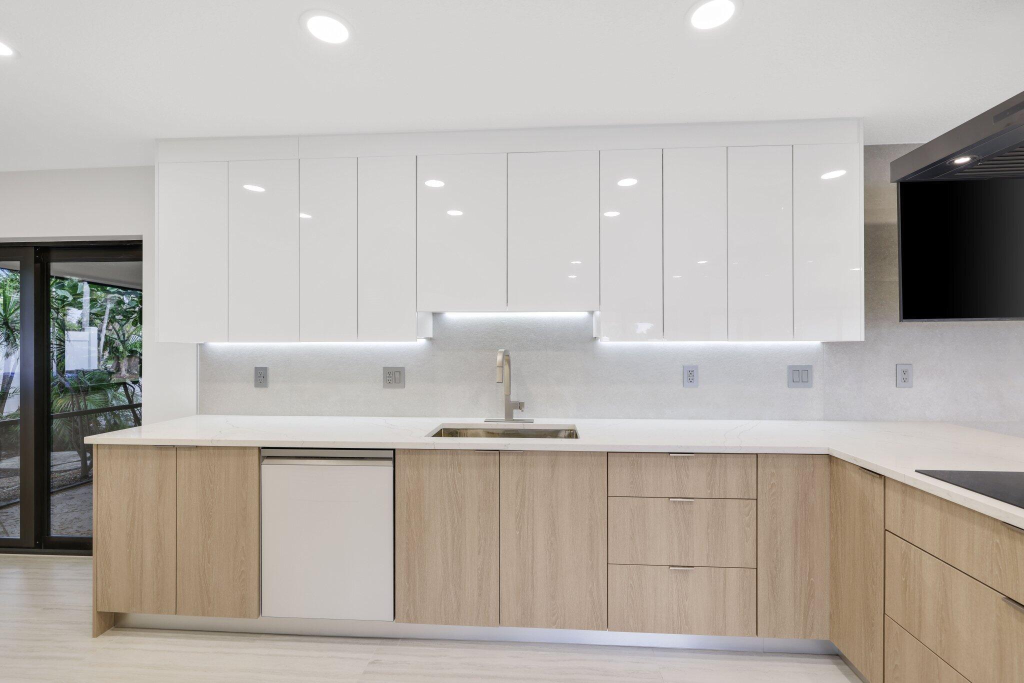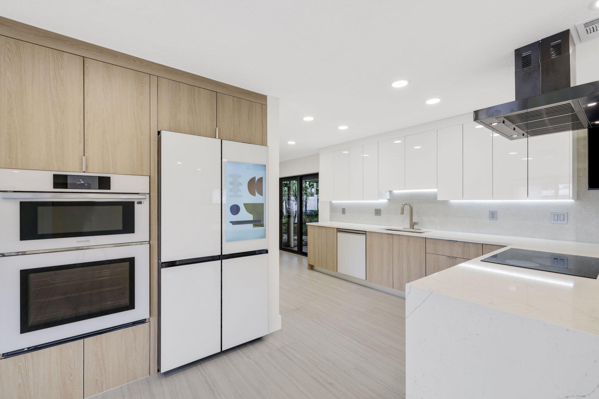 Introducing this spectacular, freshly renovated home in the renowned Imperial Point community. This spacious 4-bedroom, 2-bathroom residence has a total of 2,131 square feet and features a generous open floor plan, including formal living and dining rooms, a renovated eat-in kitchen, a Florida Room, a separate laundry room, and a full two-car garage. This renovation spared no expense, showcasing a large custom-designer kitchen with stunning quartz countertops and beautiful tile backsplash. The two-tone kitchen design is a significant upgrade from the standard common shaker style, featuring high-end Samsung white smart appliances, illuminated by custom LED lighting and underglow accents that truly highlight this property.