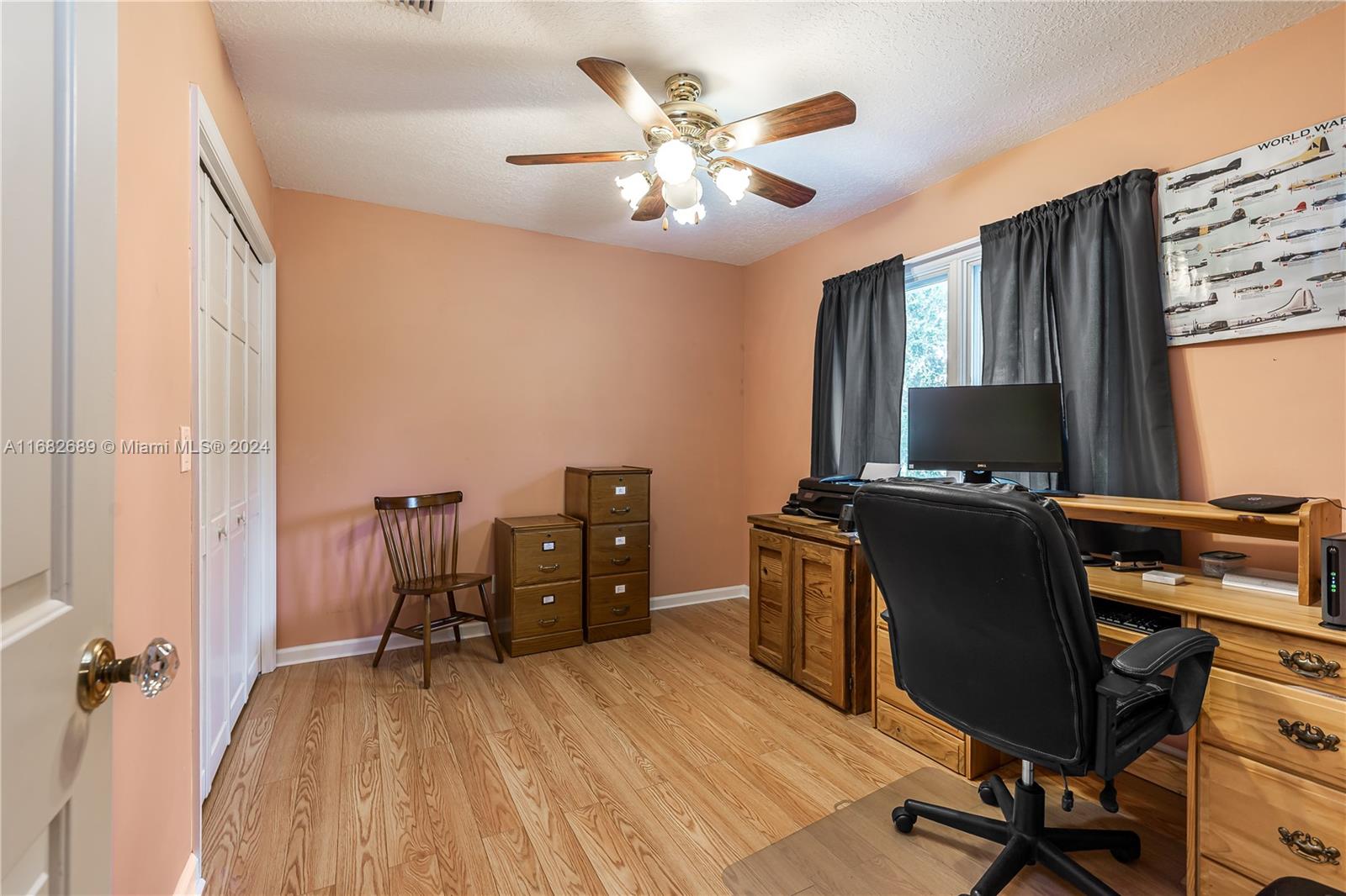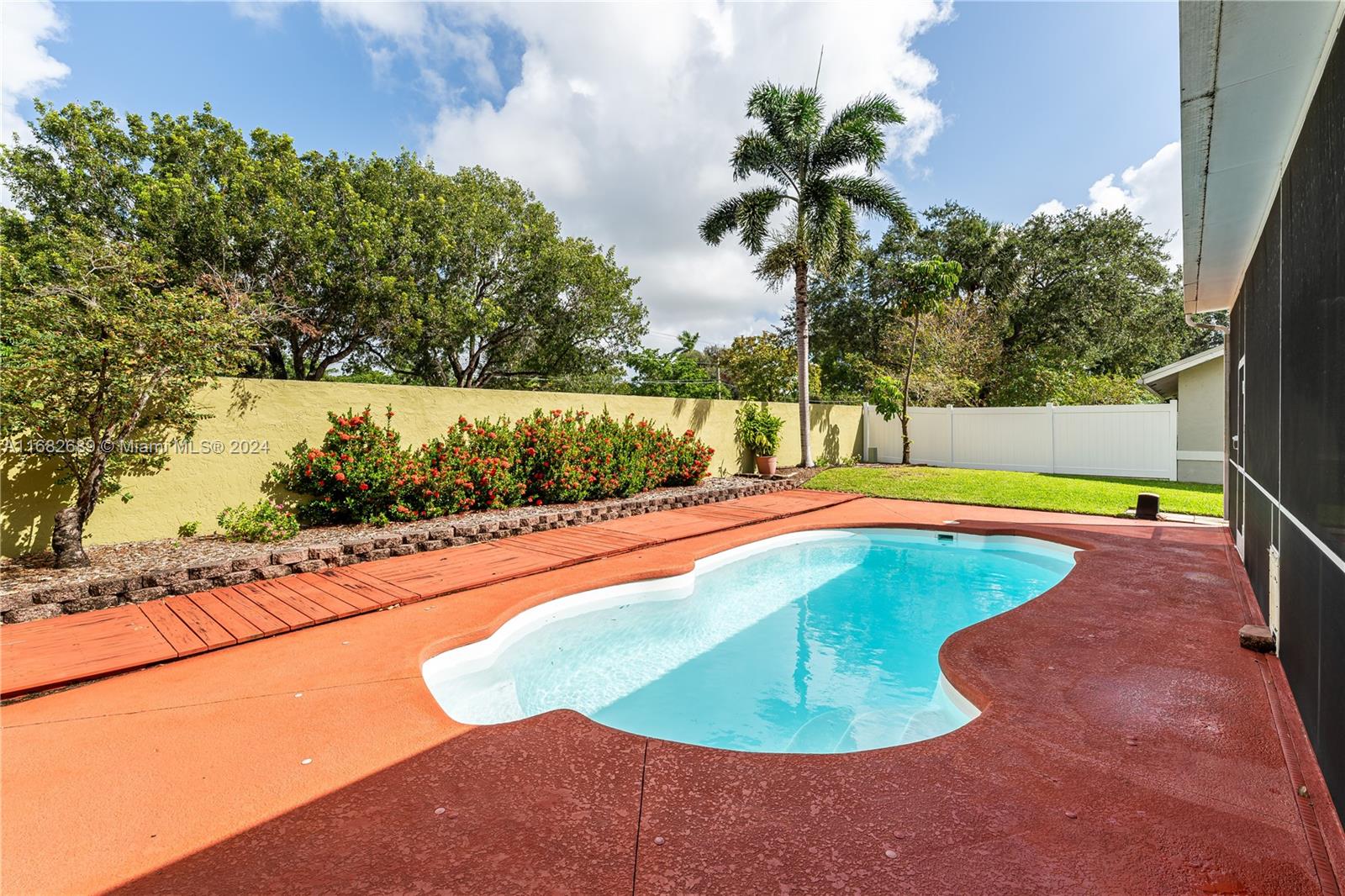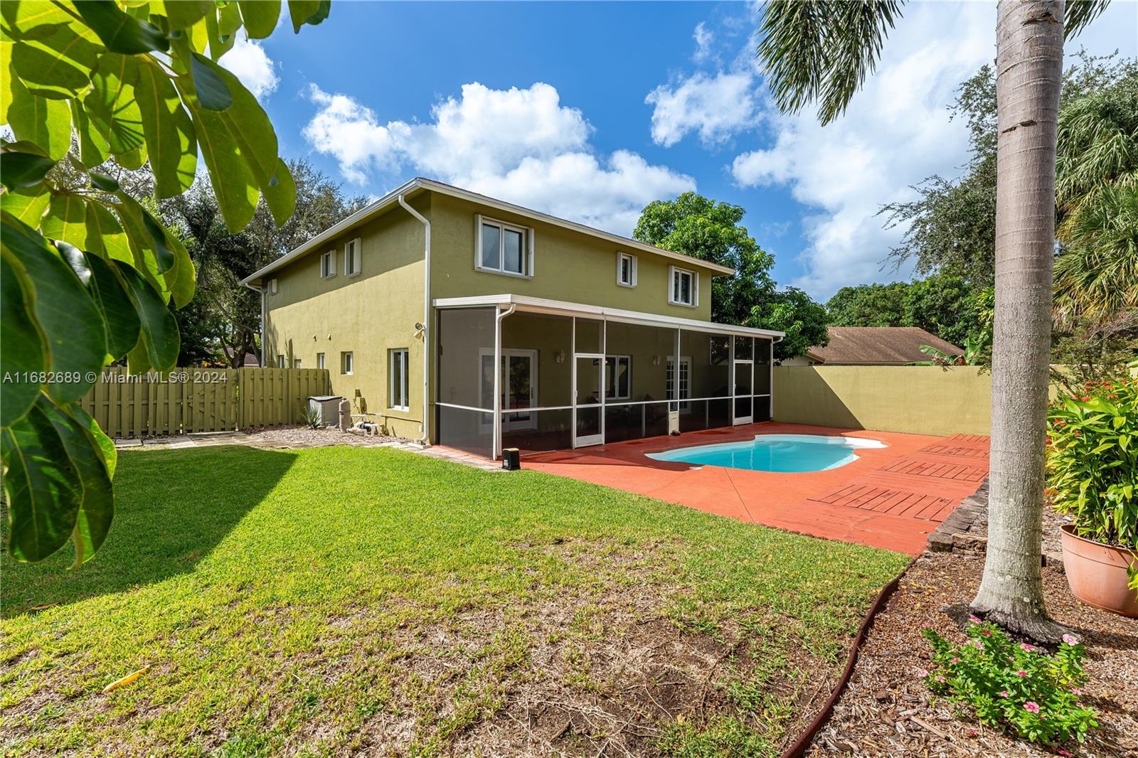 BACK ON MARKET, BUYER LOSING FINANCING, APPRAISED OVER LIST. Welcome home to this big 4 bedroom PLUS handy office with closet. Built in 98 this one has been kept in PRISTINE condition by the original owner. Large kitchen with wood cabinets & solid surface counters. Breakfast area, living area & quaint sitting area which can used for formal dining Textured ceilings & walls. Pretty laminate floors & open staircase. The primary suite is huge. Nice sized bedrooms. NEW ROOF! Hurricane shutters, accordions & rated garage door. Easy to maintain fiberglass pool with deck. Big screened & covered patio for entertaining. Private fenced lot w/no neighbors in the back. Terrific Plantation location within walking distance to elementary. Easy access to shopping, restaurants & highways. Low HOA.
