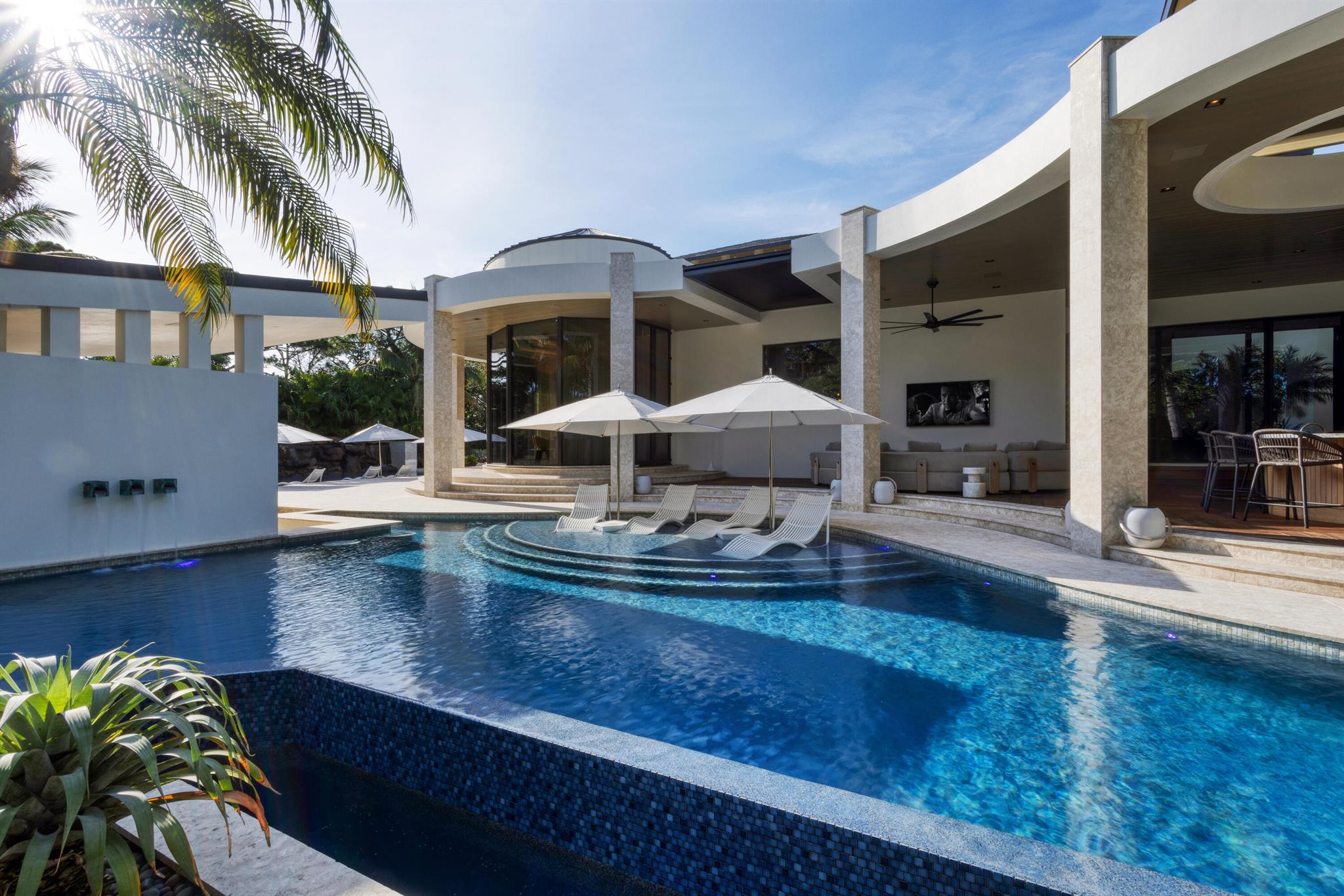 This 25,500+SF resort-style estate is privately positioned on a sprawling 2.4 acres in one of Jupiter's most sought-after communities: The Bears Club. Designed for luxurious well-being, this architectural masterpiece offers unmatched amenities in a single-family residence. Immerse yourself in the fully equipped fitness center, salon, spa, or massage room; stay on top of your game with the golf simulator; or get some reps in the 2nd level lap pool. Wind down in the meandering oasis pool with swim-up bars & cascading waterfall, regale in the game room or in one of the thoughtfully curated lounge areas. This home truly embodies the perfect blend of stunning architecture, spacious living, endless entertainment, and a rare lifestyle.