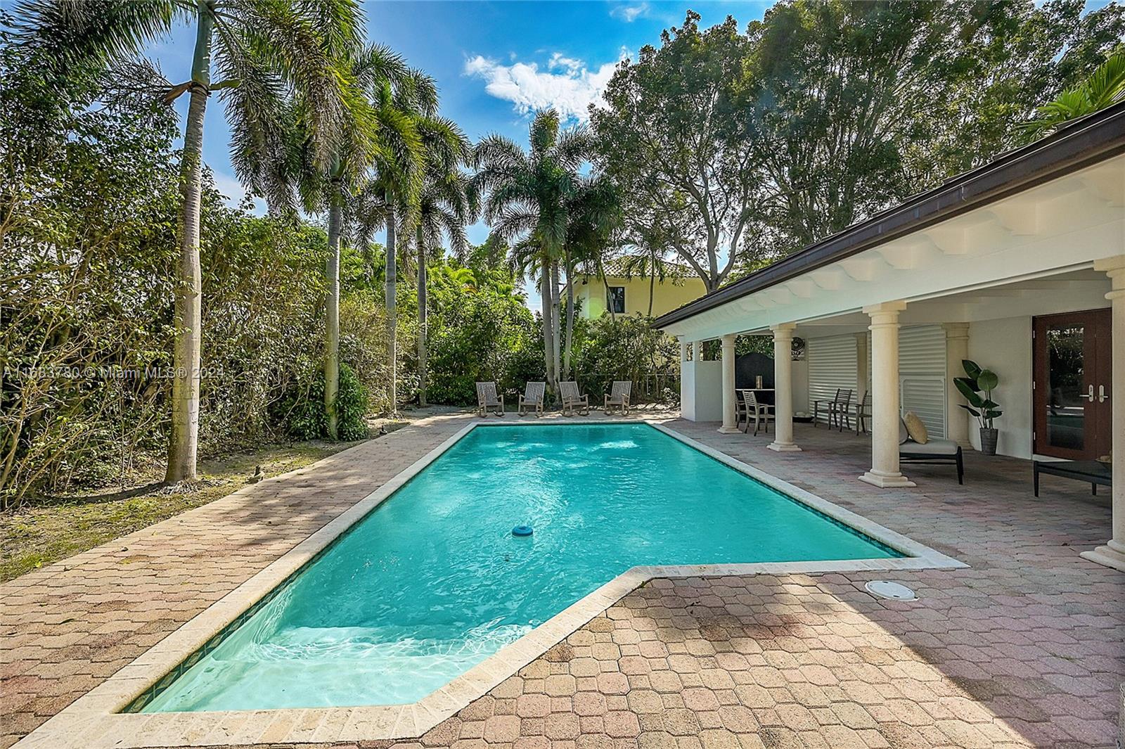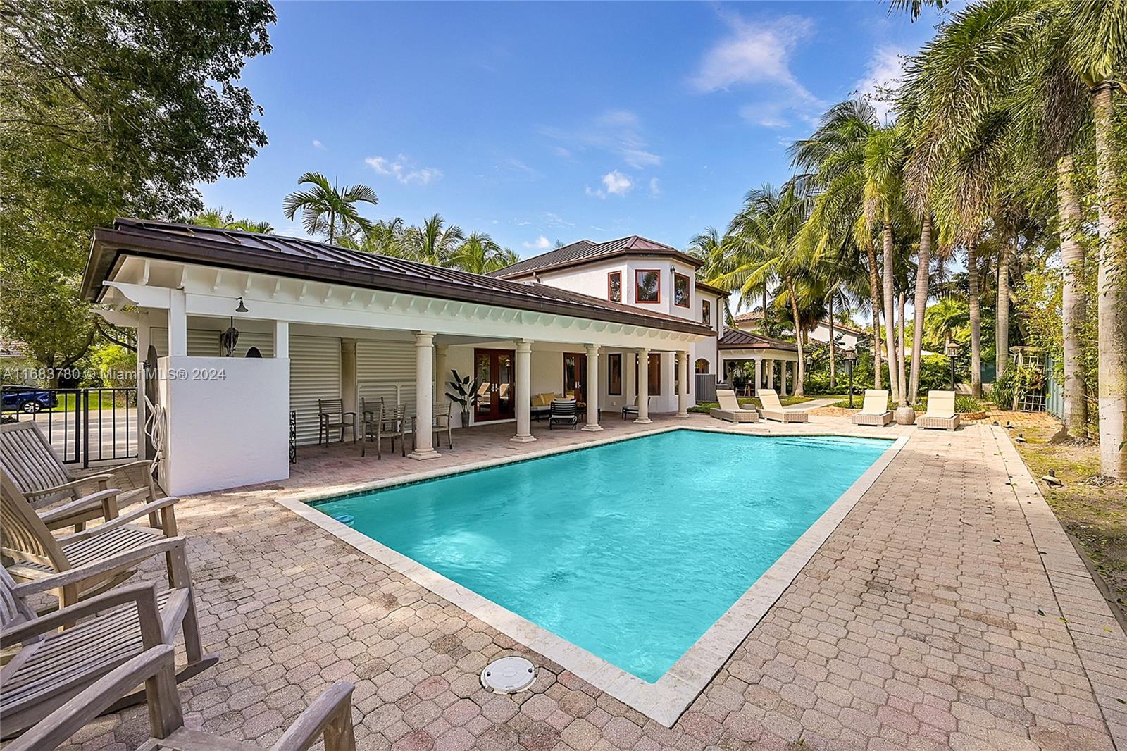 Discover this classic beauty where elegance meets functionality in this sought-after wonderfull tree lined cul-de-sac, adjacent to Historical Old Floresta. This inviting 3 bdrm home with the potential for a 4th large bdrm in the upstairs 2nd family room. The heart of the home features a living room with a cozy fireplace and cathedral ceiling that elevate the space, creating an airy grand atmosphere. The remodeled gourmet kitchen is sophisticated with all high-end appliances. Outside is the almost 1/3 acre lot with palm trees galore and a pool on a peaceful and quiet cul-de-sac lot promising privacy and relaxation. 2 car garage with a large driveway. Home also boasts: Newer metal roof, All Impact windows & doors, Home generator with propane tank, 2 covered outdoor areas 1 w/ wet bar.