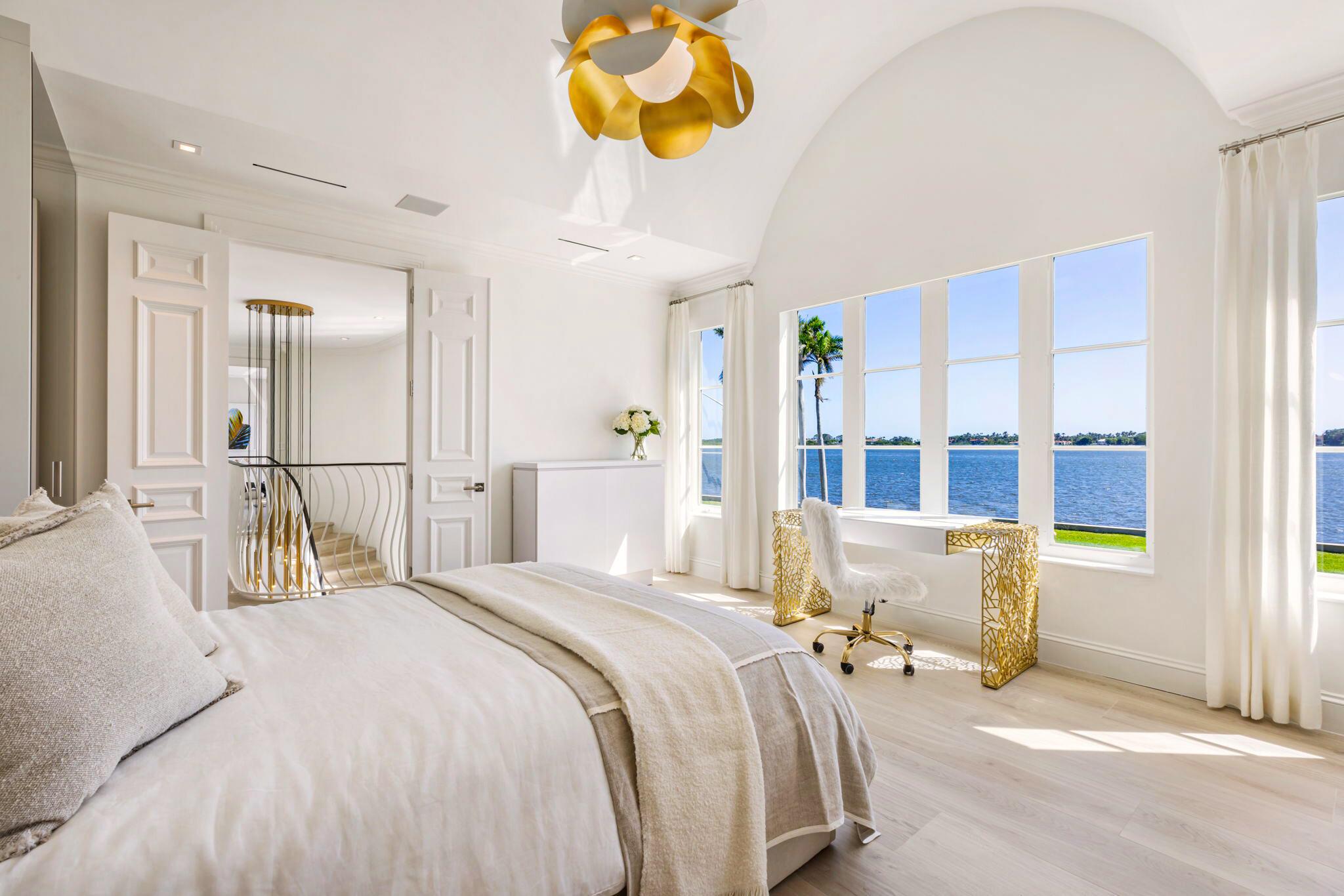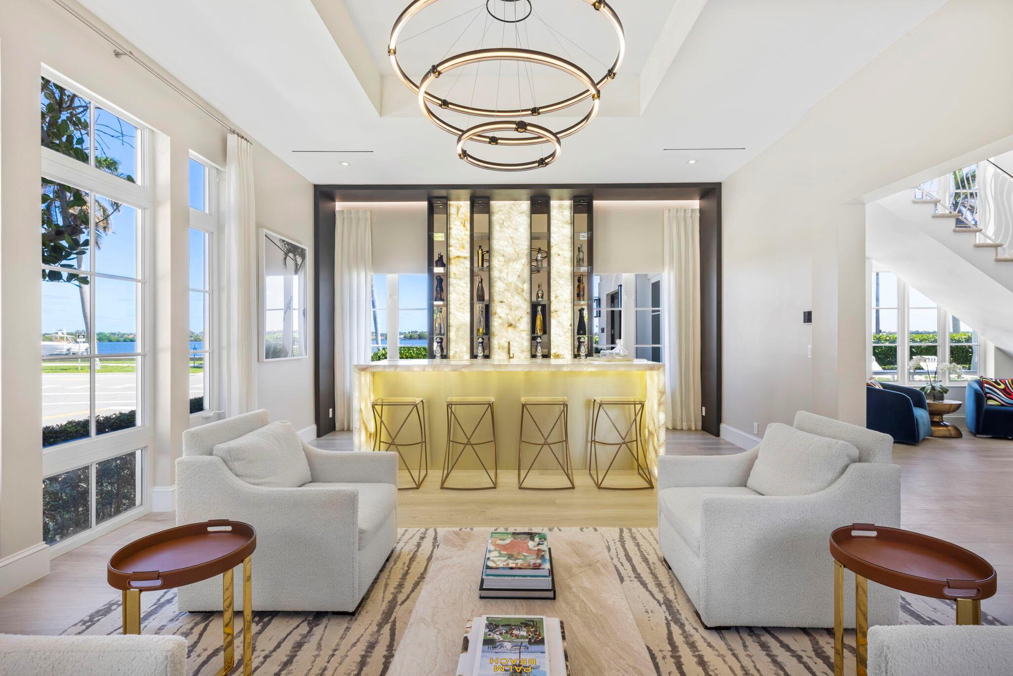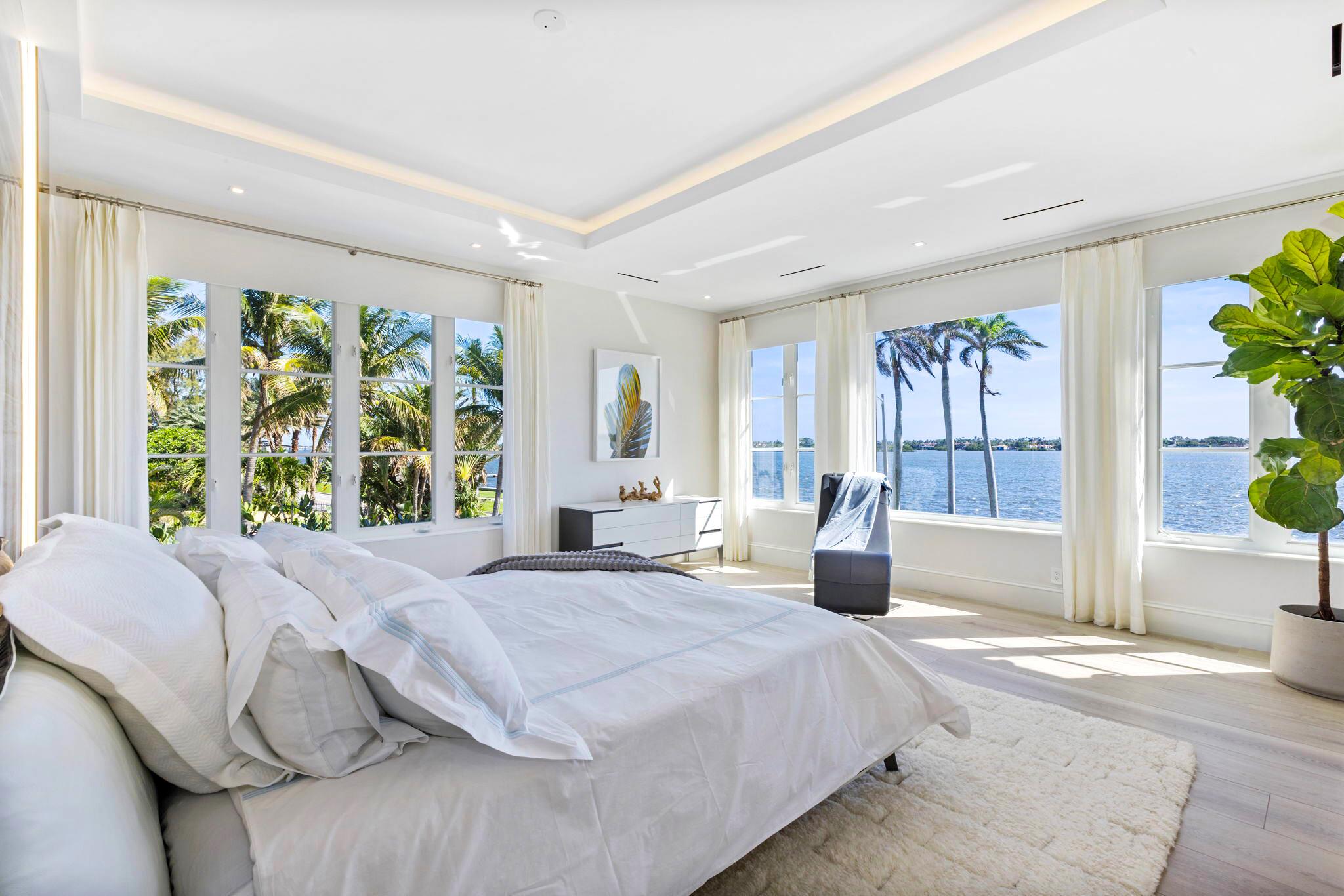 IMPRESSIVE 100-FT WATERFRONT ESTATE INCLUDING ITS OWN PRIVATE DOCK & BOAT LIFT. Newly renovated with every luxury for the discerning buyer, this 5-bed home offers breathtaking views of Billionaires Row, widest part of the Intracoastal Waterway, from all main rooms. Featuring 11-ft ceilings, 6,000 total square feet of meticulously redesigned living space, elevator, and a desirable semi-attached guest house. The very impressive waterfront bar/lounge features LED backlit crystalline quartzite a stunning brass sink, ice maker, and custom cabinetry, all inspired by the Bulgari Hotel in Paris. A sprawling primary suite complete with oversized dual dressing rooms with Italkraft closets and custom cabinetry. This home has an abundance of natural light, high-end finishes, and every...