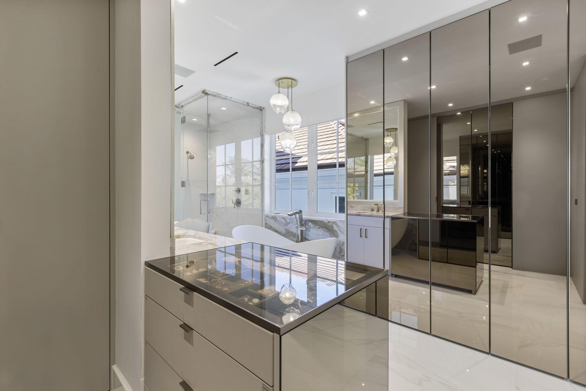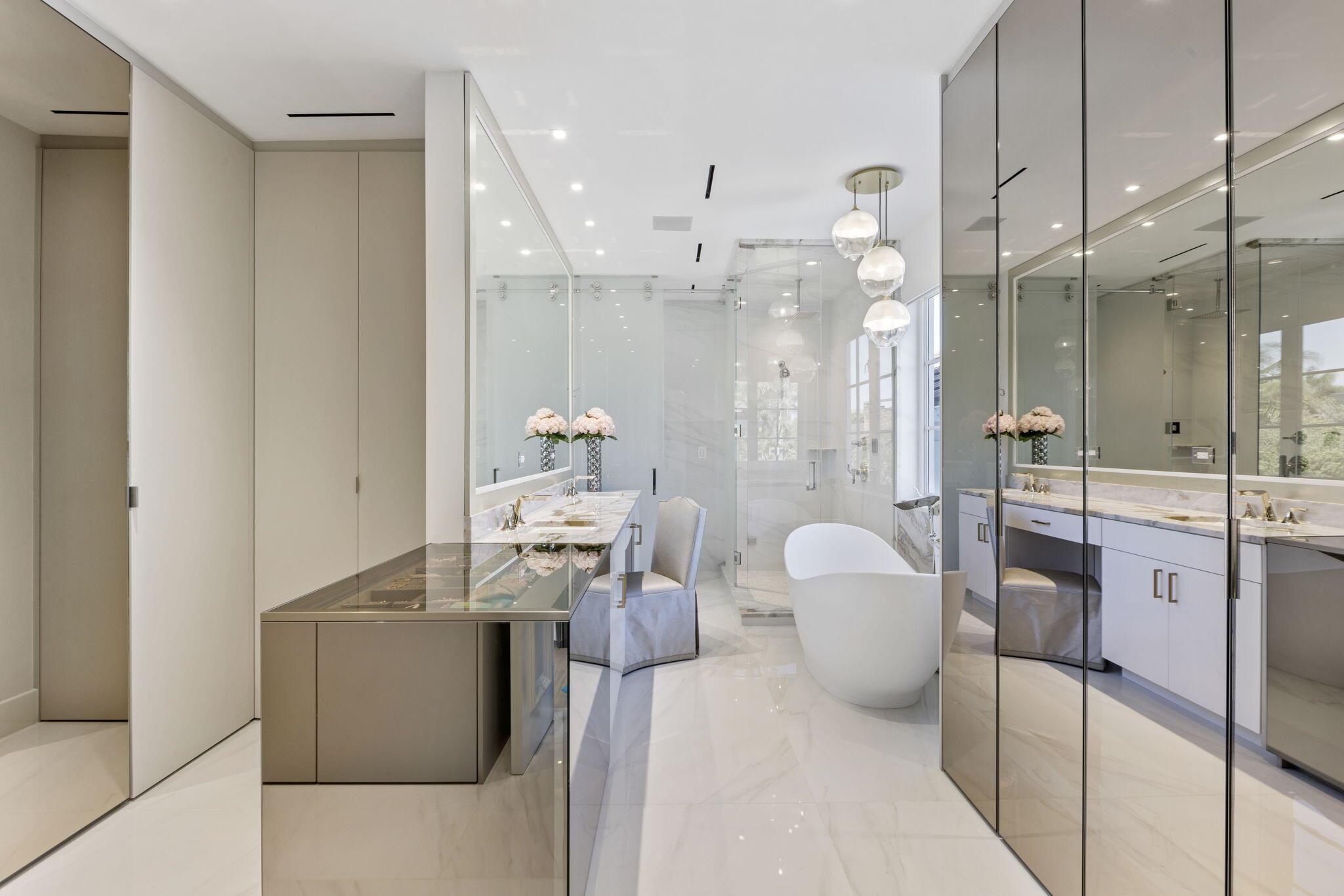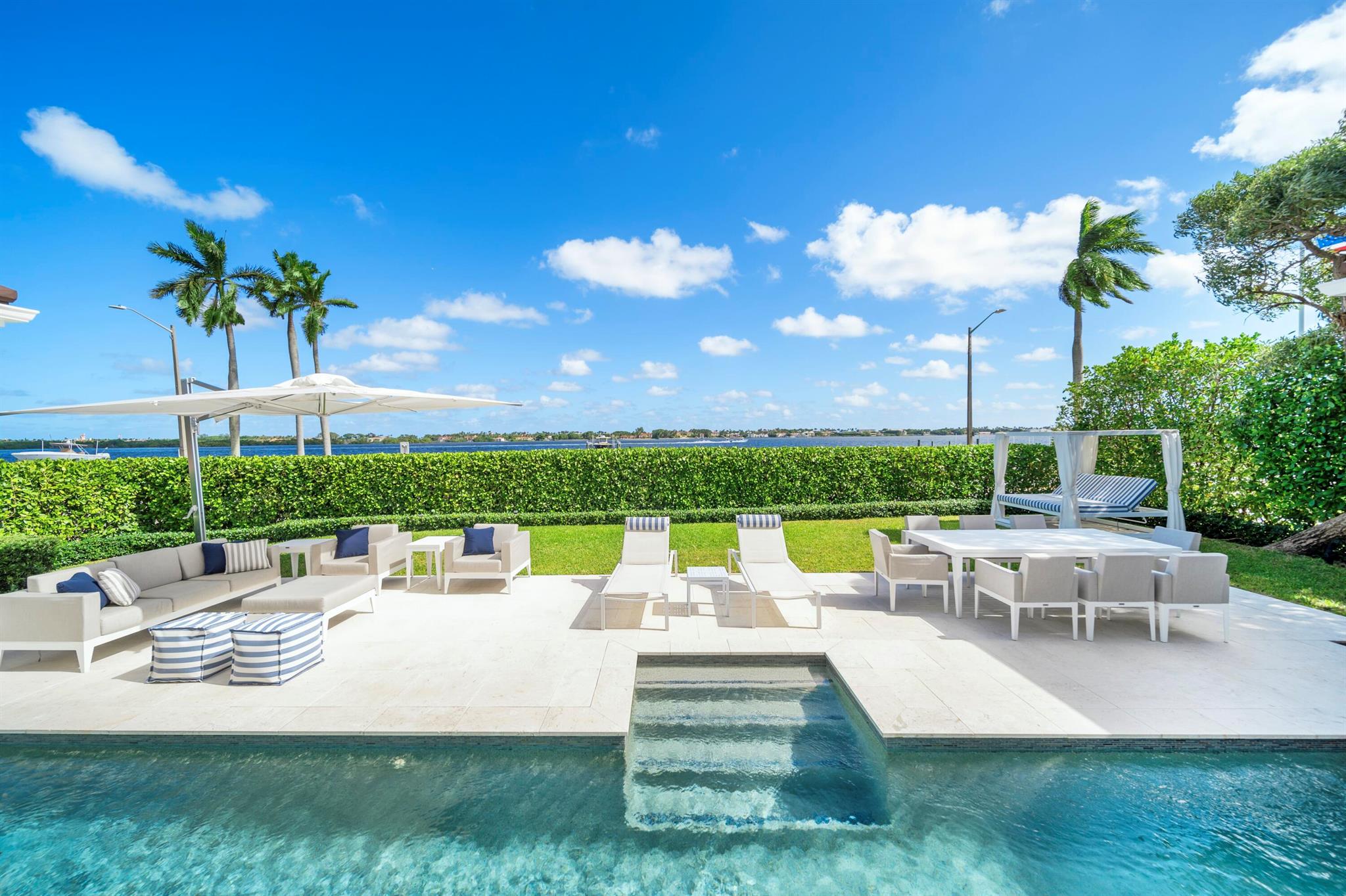 IMPRESSIVE 100-FT WATERFRONT ESTATE INCLUDING ITS OWN PRIVATE DOCK & BOAT LIFT. Newly renovated with every luxury for the discerning buyer, this 5-bed home offers breathtaking views of Billionaires Row, widest part of the Intracoastal Waterway, from all main rooms. Featuring 11-ft ceilings, 6,000 total square feet of meticulously redesigned living space, elevator, and a desirable semi-attached guest house. The very impressive waterfront bar/lounge features LED backlit crystalline quartzite a stunning brass sink, ice maker, and custom cabinetry, all inspired by the Bulgari Hotel in Paris. A sprawling primary suite complete with oversized dual dressing rooms with Italkraft closets and custom cabinetry. This home has an abundance of natural light, high-end finishes, and every...