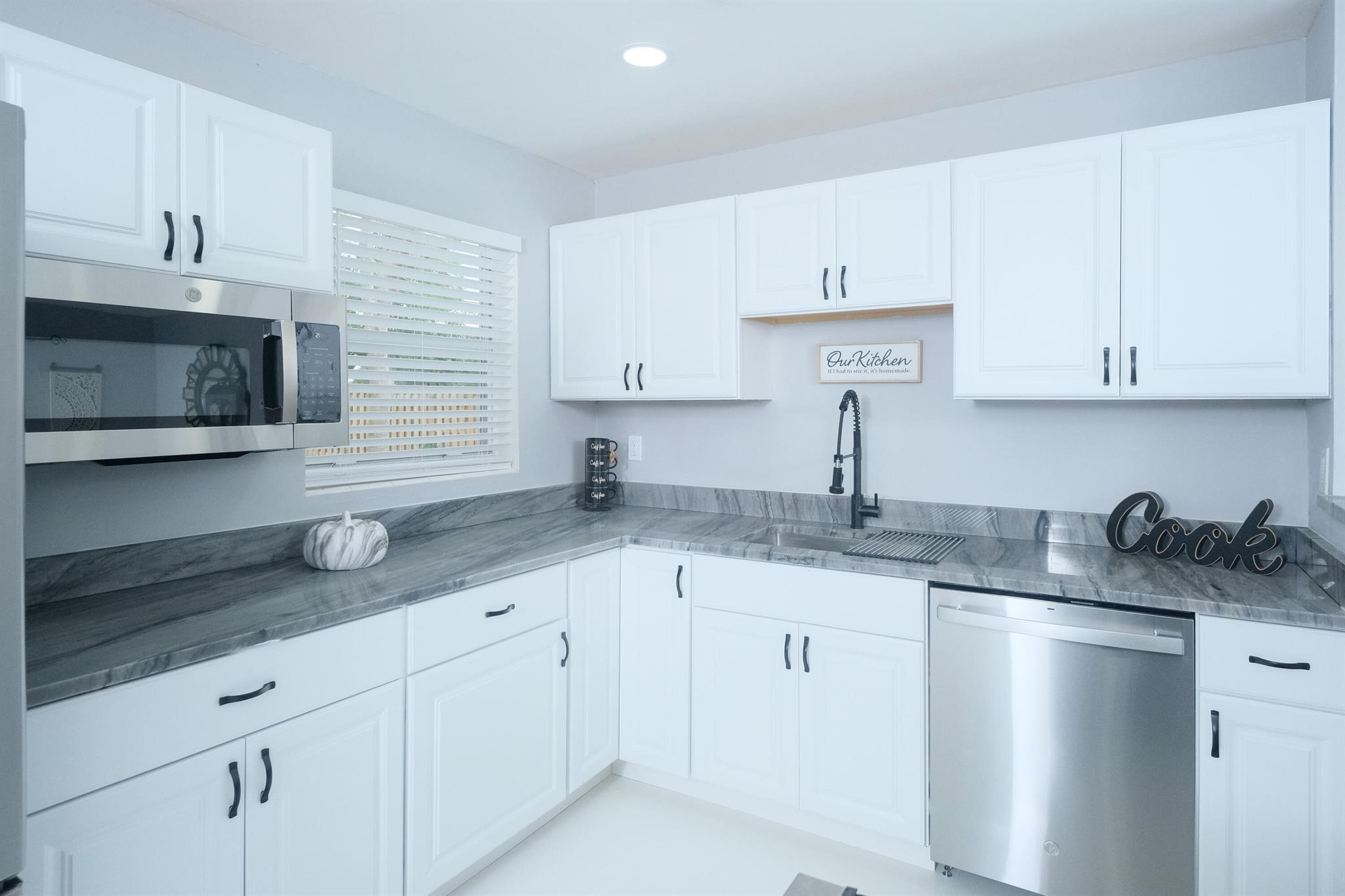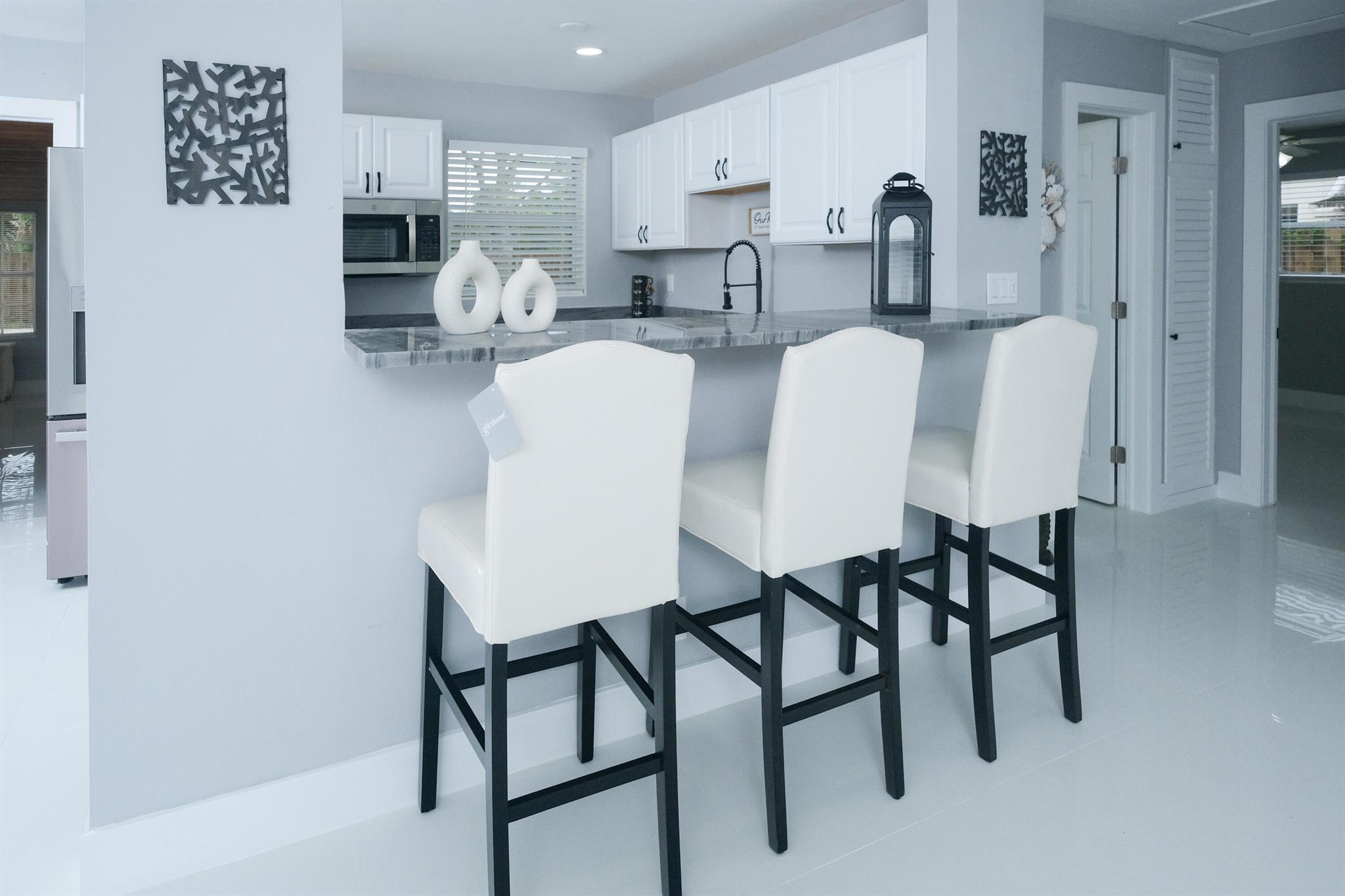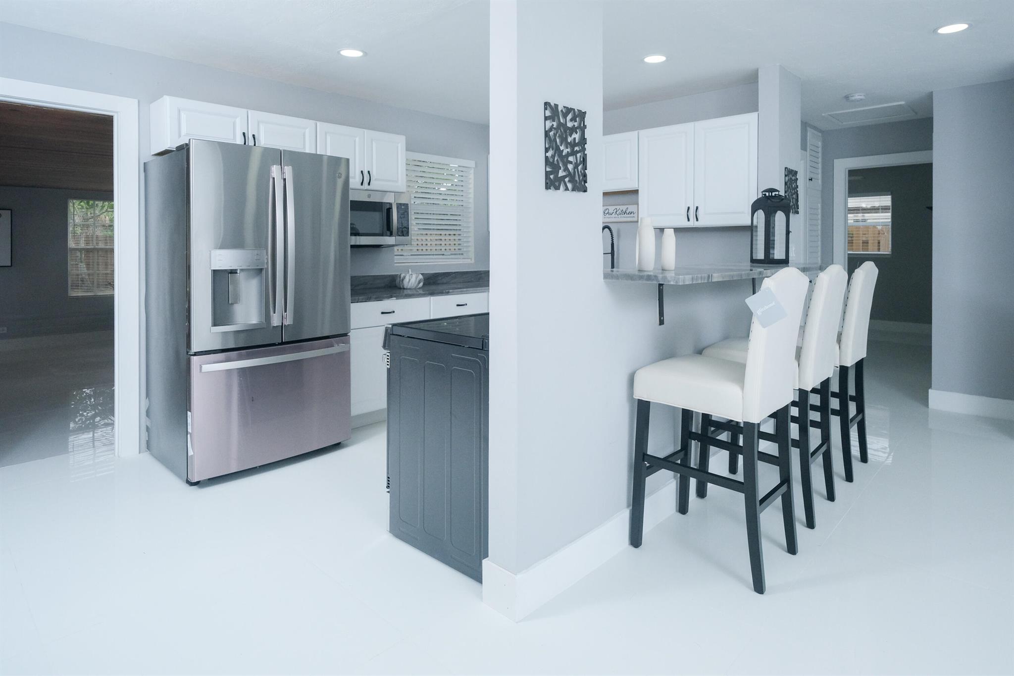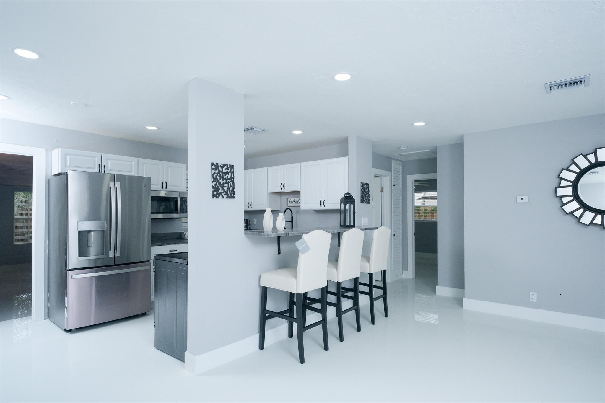 light and bright single family renovated home .4 bedrooms ,gleaming tile floors, natural stone kitchen with breakfast bar. New stainless steel appliances with touchless faucet. This home also features a stone driveway with a large back yard with a fish pond. Newer roof and ac about 5 years old. Nice quite street with no HOA .This is the one you have been looking for!!