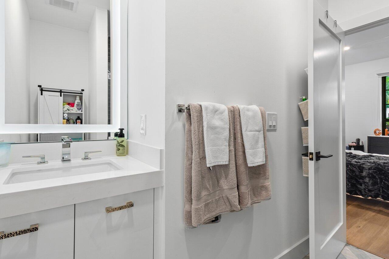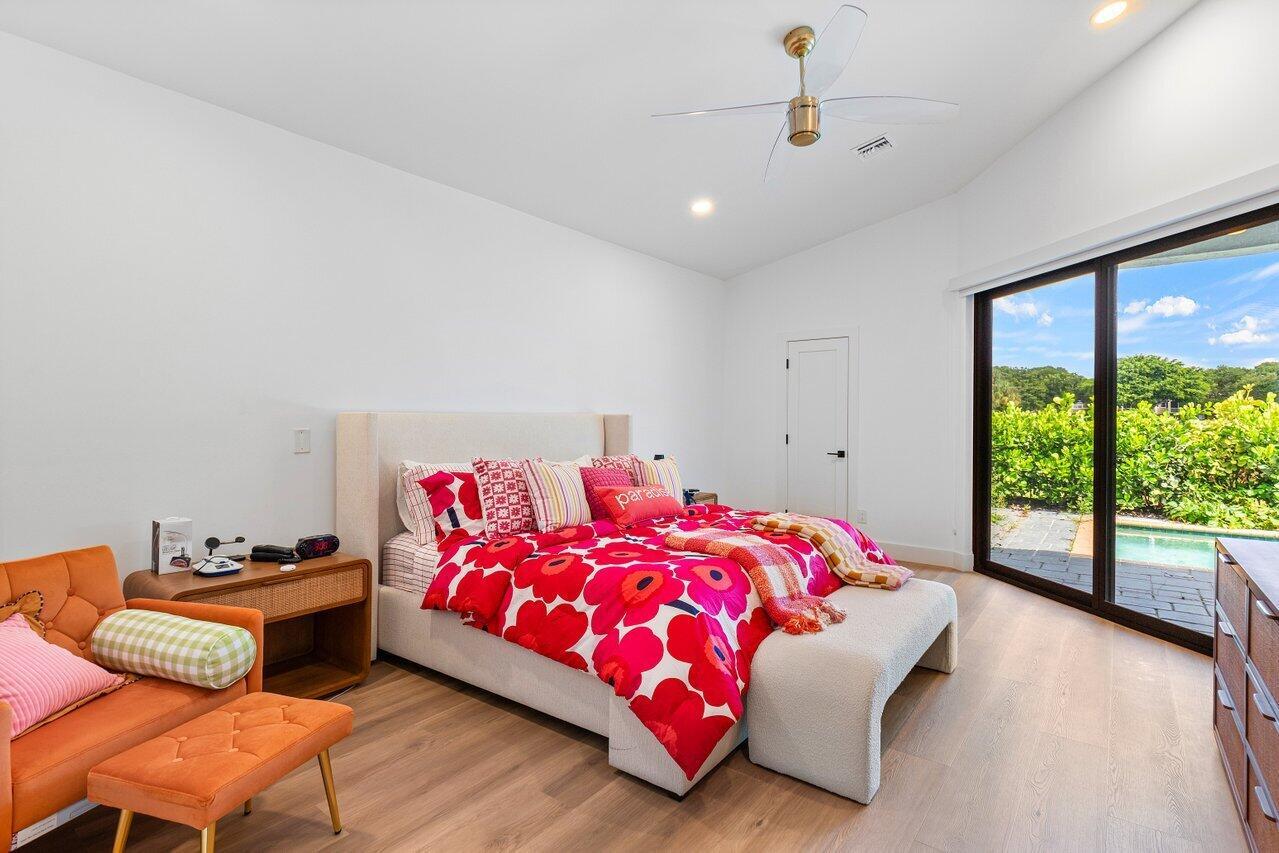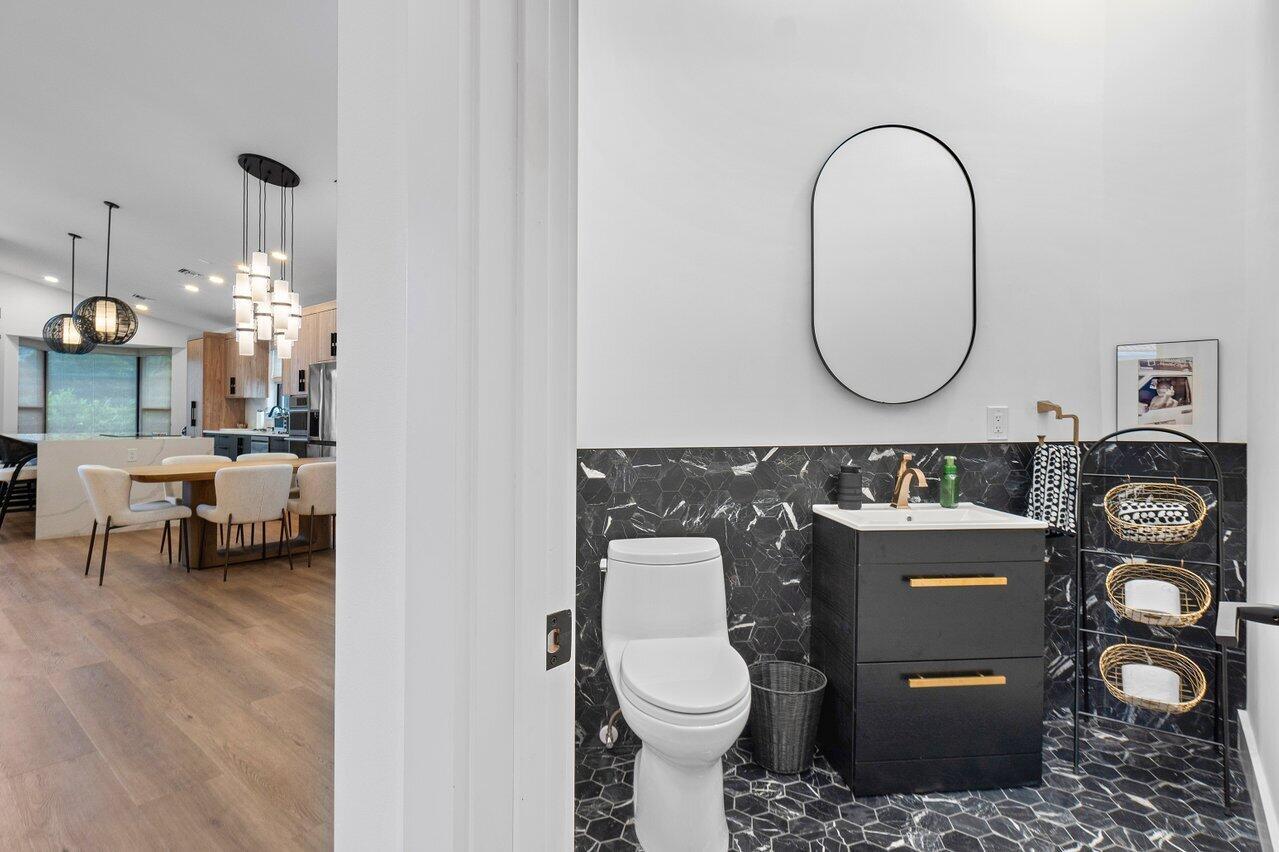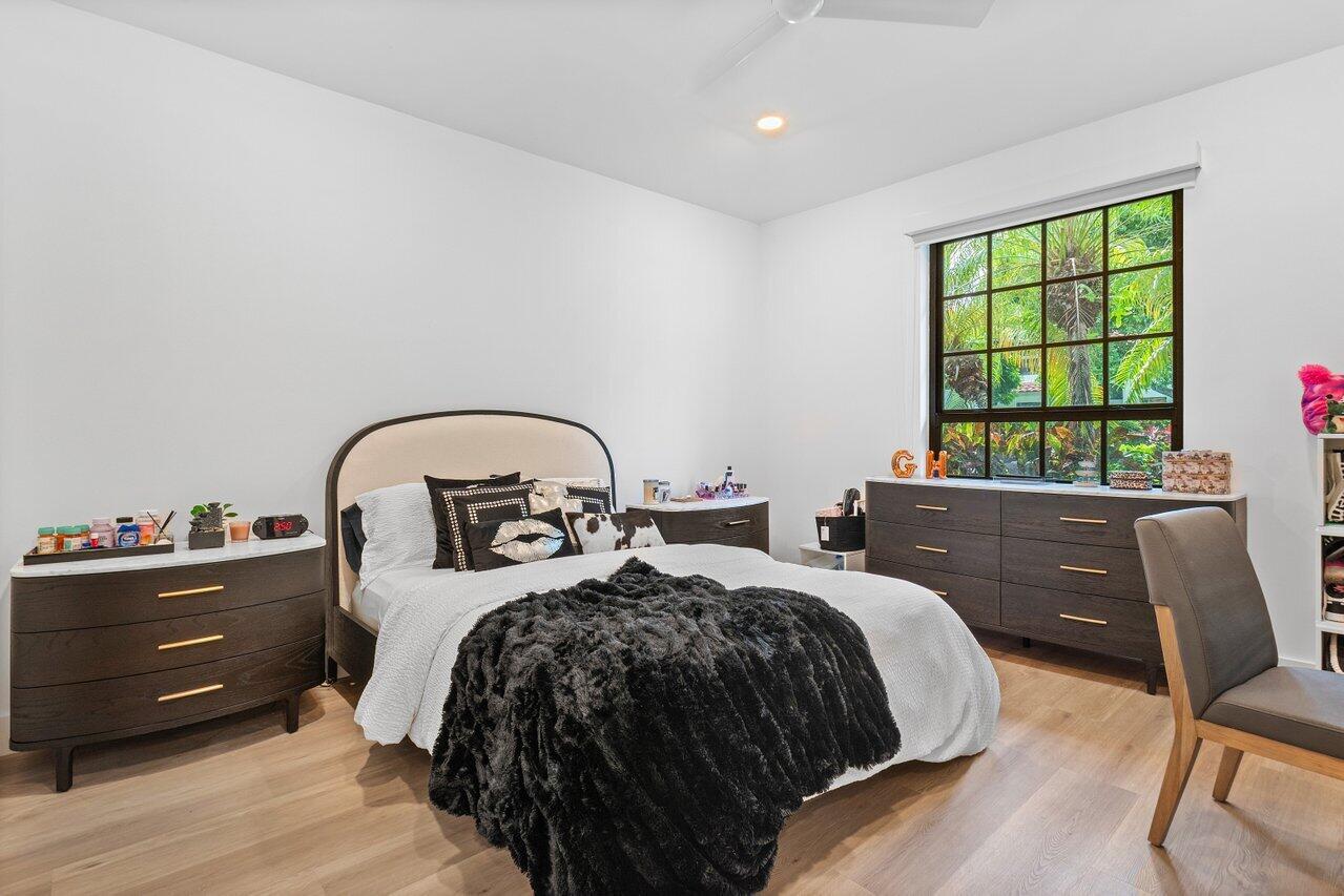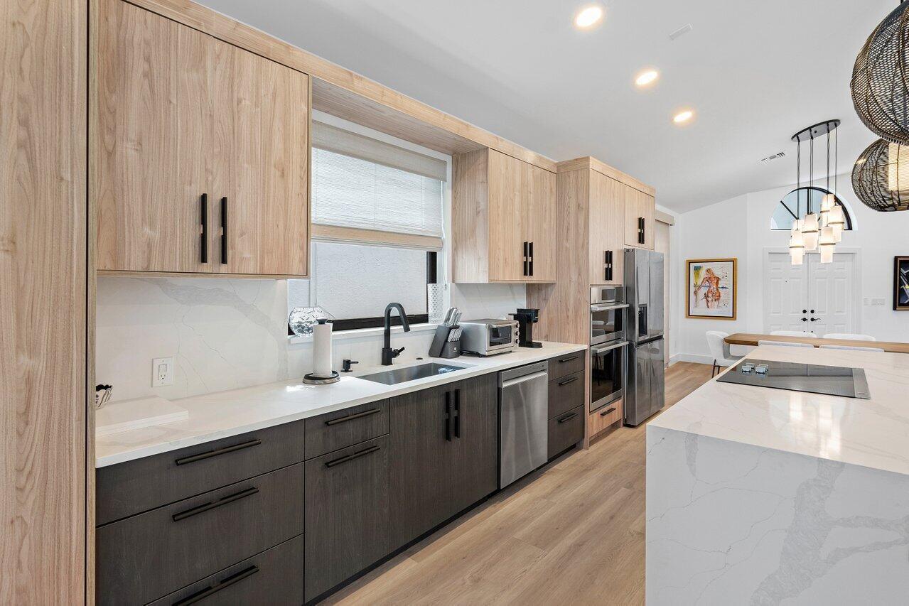 Stunning and renovated 3 BD 2.2 BA home, with a pool and golf course views. The beautiful light wood organic finishes with dark accents give a sophisticated and warm, designer look, that is consistent throughout. A completely remodeled kitchen with custom wood cabinets and quartz countertops complimented by a wet bar with a wine and beverage fridge. The spacious primary bedroom has sliding glass doors to the pool area, a large primary bathroom, and two oversized walk-in closets. A large gray built-in with wood finishes makes for a highly functional home office/3rd bedroom that hosts a private side patio. Impact windows, chic light fixtures, a half-bath for guests plus a cabana bath, turfed side yard, an abundance of natural light and so much more make this home one not to be missed.