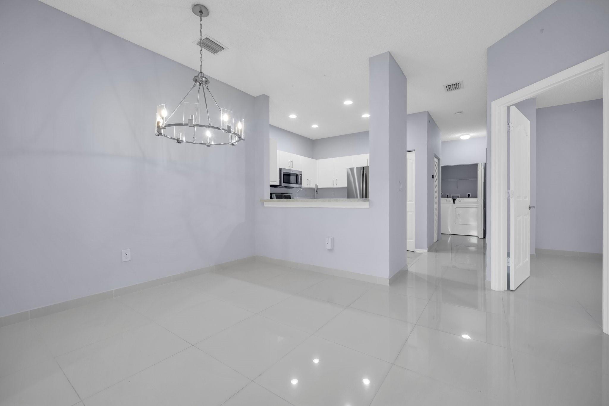 Updated 3 bedroom, 2 bath, 1 car garage, corner unit in the private gated community of Crestwood at Carolina. Completely repainted with new tile flooring throughout the open-concept living space. The refinished kitchen has new countertops, white cabinets, and new stainless steel appliances. This home is modern with Wifi enabled Nest thermostat and Ring security camera/doorbell with wireless mobile chime. Spacious primary bedroom with his and hers closets. Full size washer and dryer in the unit. Covered and screened rear patio overlooking the golf course area. Nice pool is only steps away. Low HOA and NO APPROVAL PROCESS.