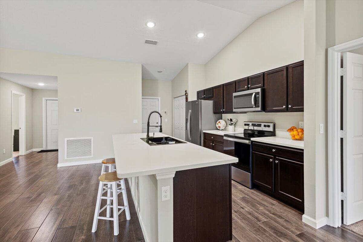 Mother-In-Law Suite!! Feast your eyes on this nearly brand new, customized Synergy Homes Verona model Exterior Elevation A , 4/2/2 CBS 1,915 square foot home, complete with a mother-in-law suite, built in 2023 and barely lived in. This home is incredible, but lot is unbeatable! This pristine home is situated on a .28 acre pie-shaped lot at the end of a cul-de-sac in the deepest interior portion of a quiet neighborhood in the coveted 34953 zip code in Southwest Port St Lucie. This is the best valued home on the market at this time with unbeatable location, incredibly spacious floor plan complete with a Northward facing covered patio and a huge, private backyard due to the pie-shaped lot on the cul-de-sac, and it's nearly brand new.