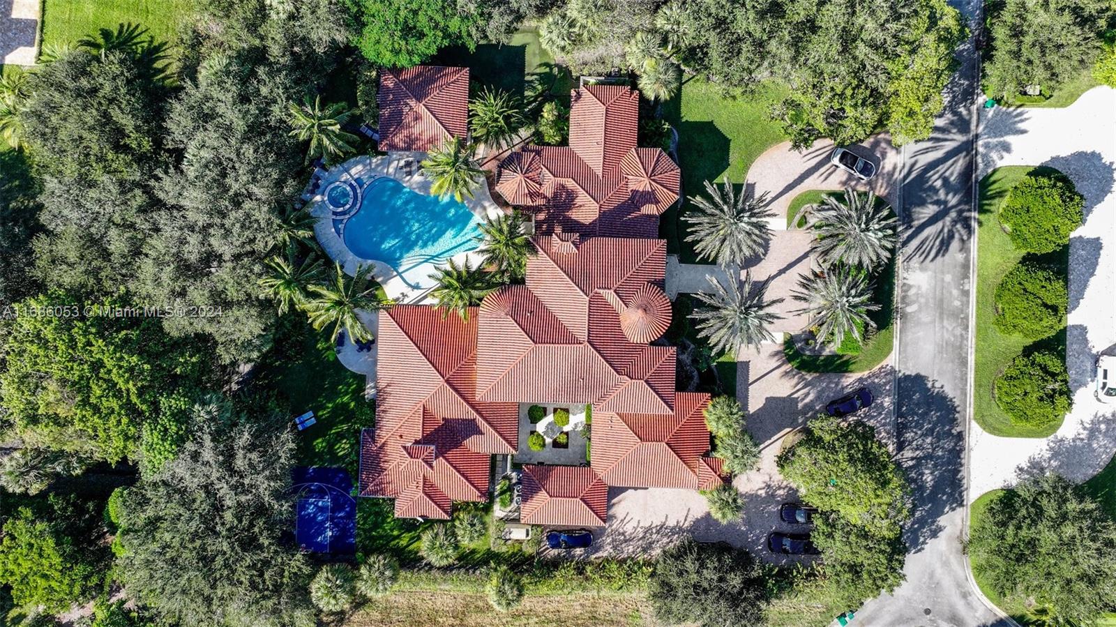 This Custom Mediterranean Estate exudes timeless grandeur in the most welcoming of ways, with warm, high end finishes and all the amenities one could desire. An ideal multi-generational compound. Located in the exclusive Estates of Pine Tree, one of only 5, acre + homes in the most private gated community in Parkland. This home has it all, Guest House, Basketball Court, Putting Green, Resort style heated salt Pool and Spa, Summer Kitchen, cigar lounge/studio, Bar, Office, Gym, you name it. Originally built and owned by a NFL Legend, this home offers timeless sophistication abounds with hand-painted imported Italian tile, marble, hardwood, coral & limestone finishes. Smart home tech, Whole Home water filtration/softening, propane generator with buried tank & more features than I can list.