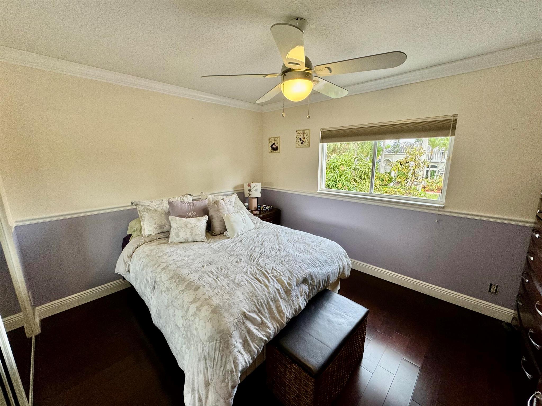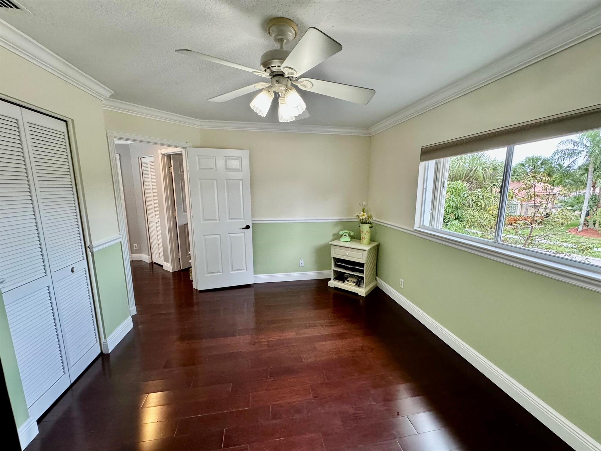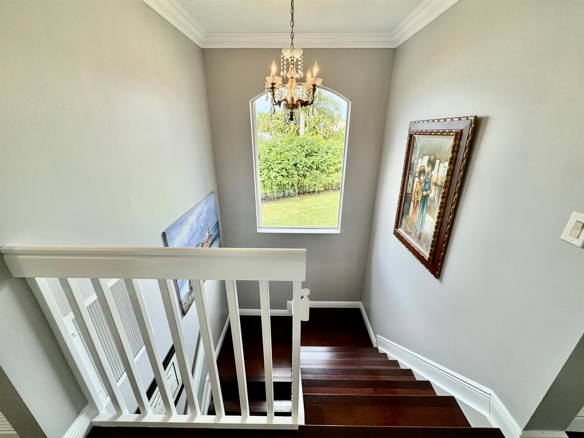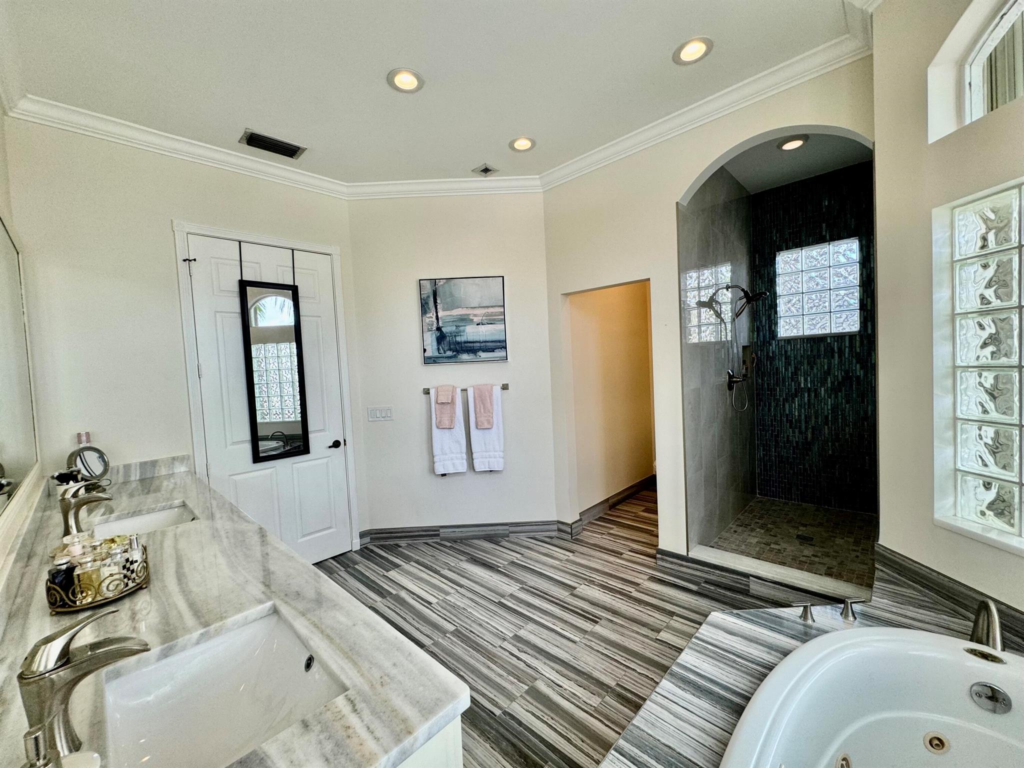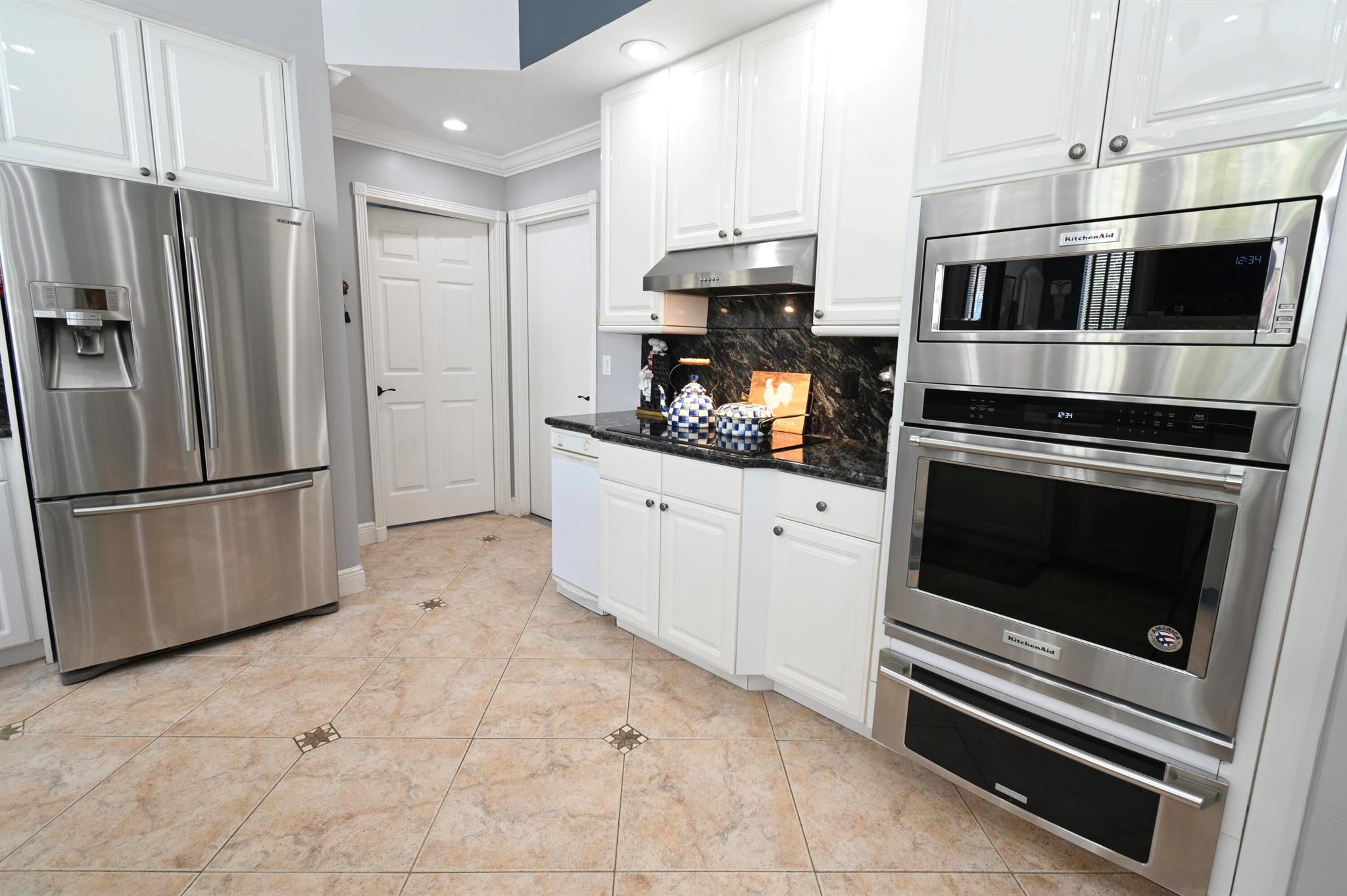Nestled in the prestigious RESERVE section of Boca Isles South, this Palm Beacher model has the LARGEST LOT available in the neighborhood. The 5-bed, 3-bath waterfront home offers a luxurious & serene lifestyle with a magnificent pool overlooking the lake. An elegant circular driveway & 3-car garage welcome you to this home of distinction & elegance. The move-in-ready residence exudes sophistication with tile & hardwood flooring flowing seamlessly throughout. The kitchen, a chef's delight featuring granite countertops, farmhouse sink, stainless steel appliances, & convection stove. The kitchen offers seating at the counter, a separate breakfast area & a formal dining area. First floor primary suite is complete with walk-in closet, jetted tub, dual sinks, and a separate shower.