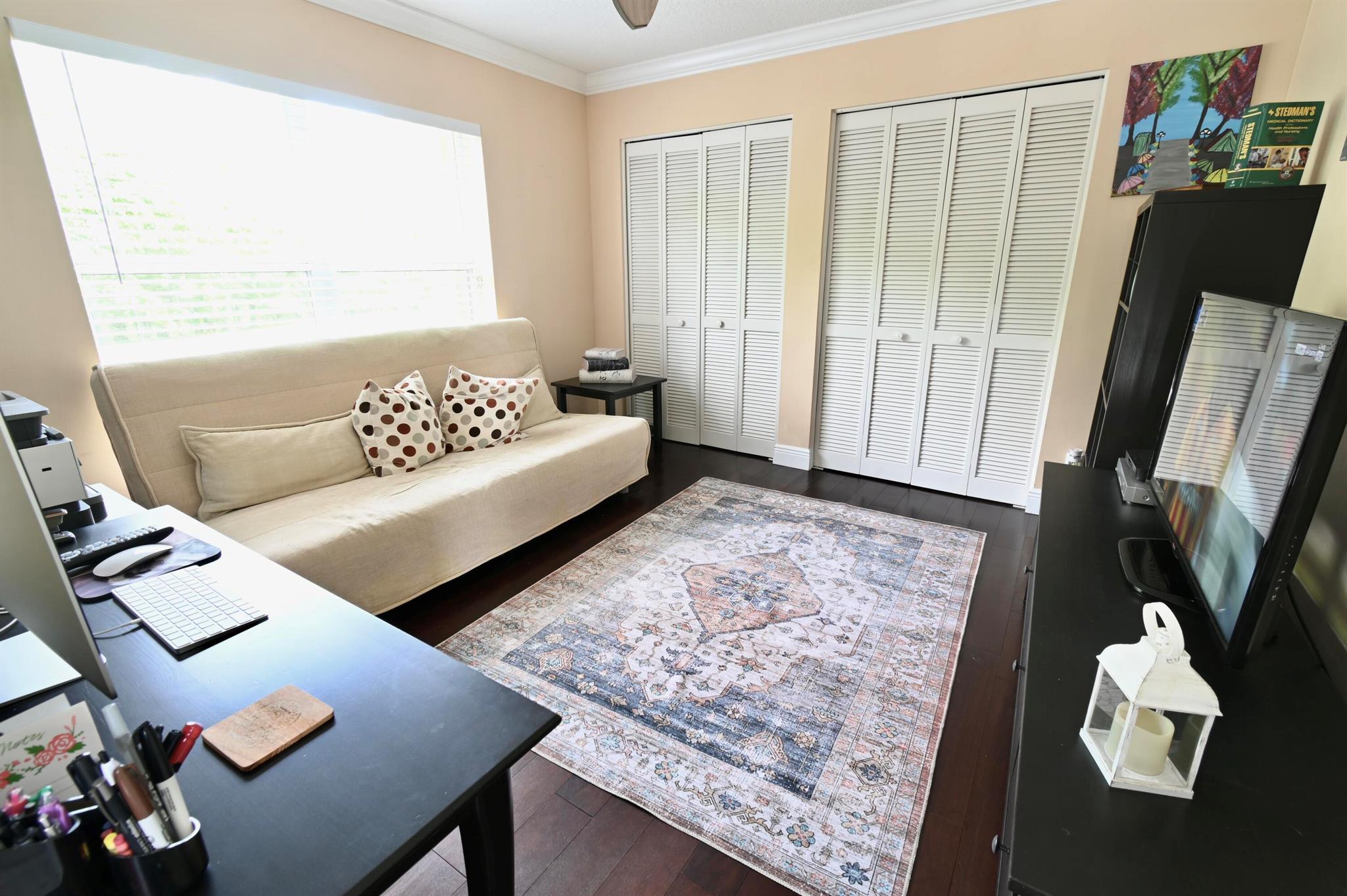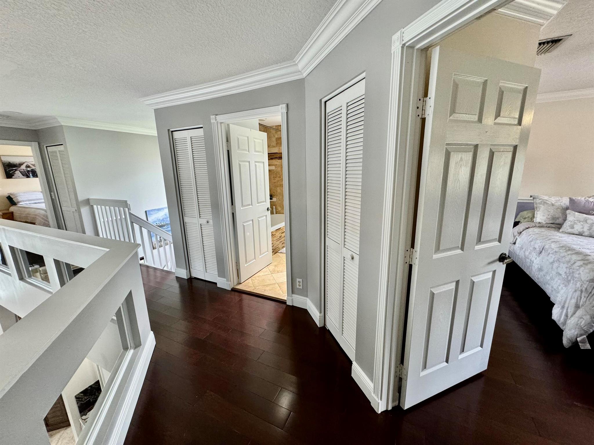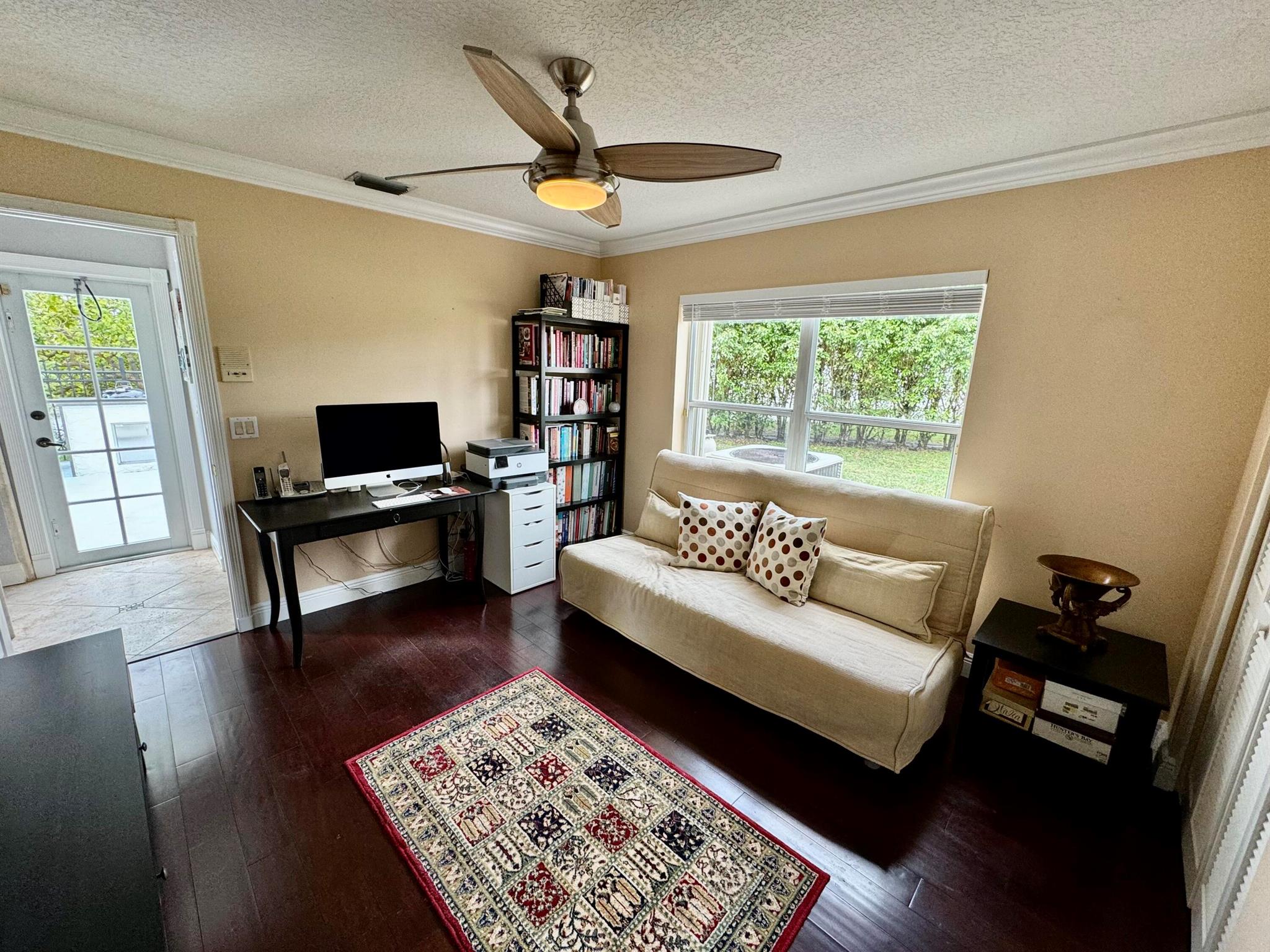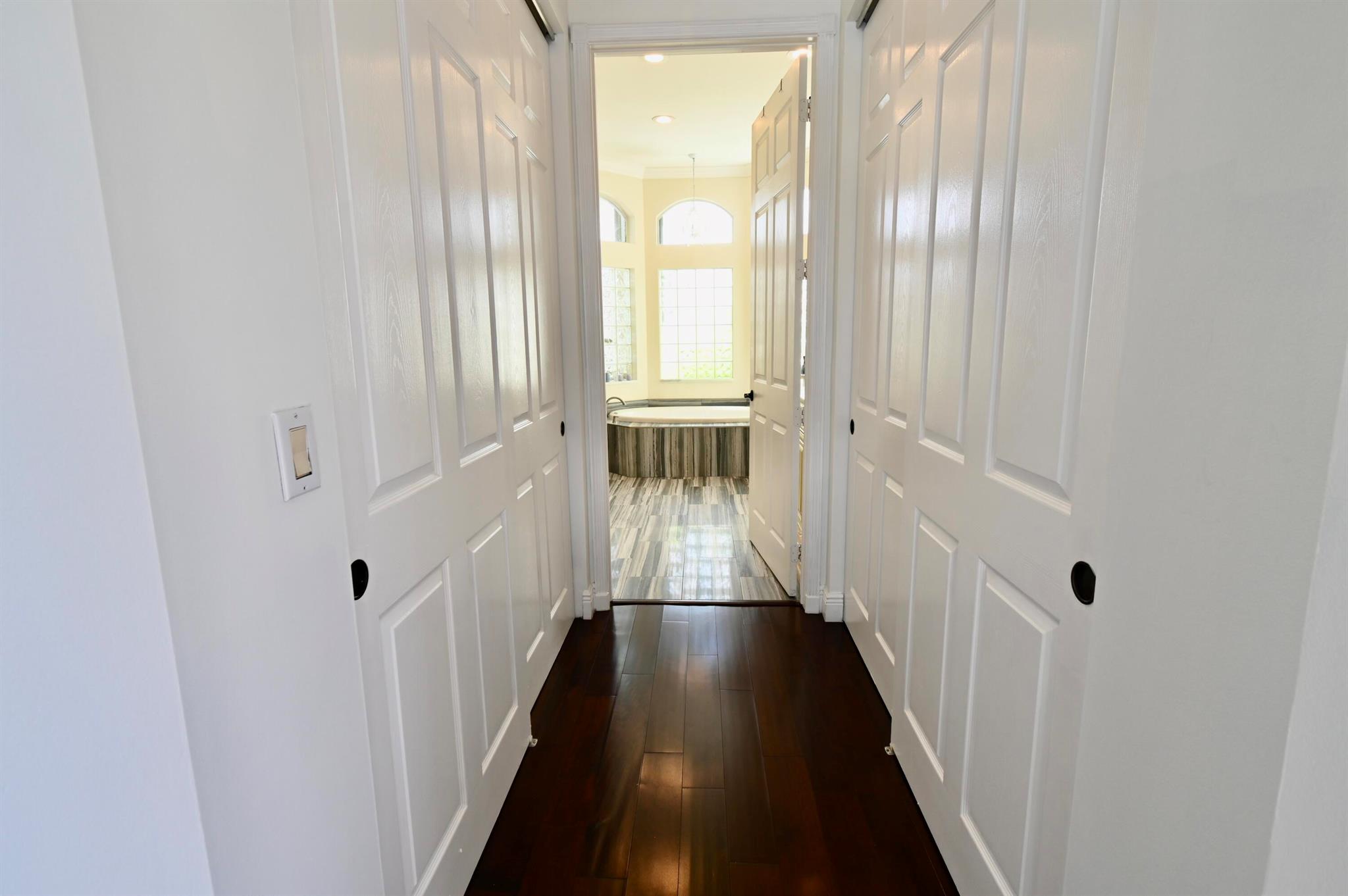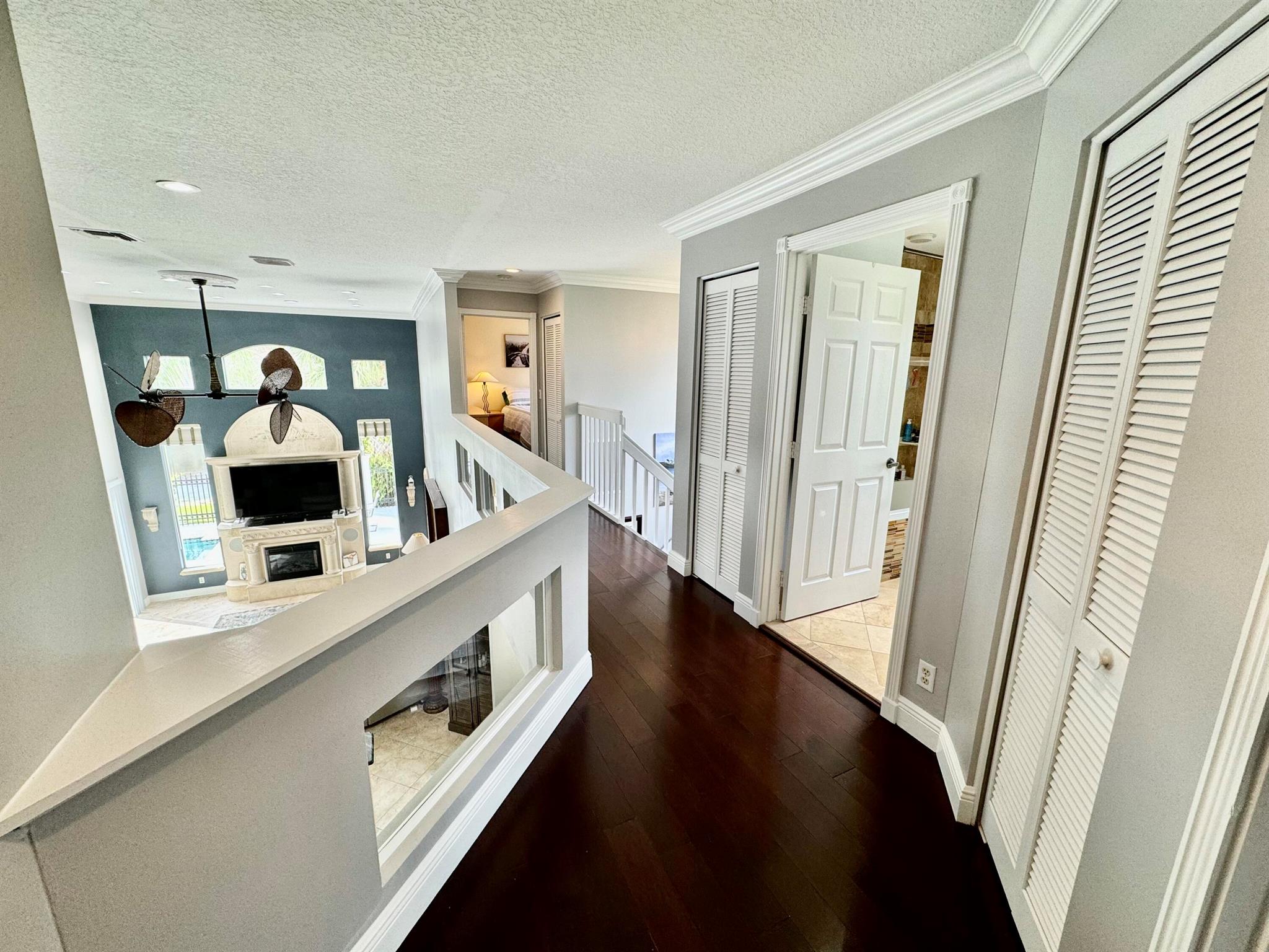 Nestled in the prestigious RESERVE section of Boca Isles South, this Palm Beacher model has the LARGEST LOT available in the neighborhood. The 5-bed, 3-bath waterfront home offers a luxurious & serene lifestyle with a magnificent pool overlooking the lake. An elegant circular driveway & 3-car garage welcome you to this home of distinction & elegance. The move-in-ready residence exudes sophistication with tile & hardwood flooring flowing seamlessly throughout. The kitchen, a chef's delight featuring granite countertops, farmhouse sink, stainless steel appliances, & convection stove. The kitchen offers seating at the counter, a separate breakfast area & a formal dining area. First floor primary suite is complete with walk-in closet, jetted tub, dual sinks, and a separate shower.
