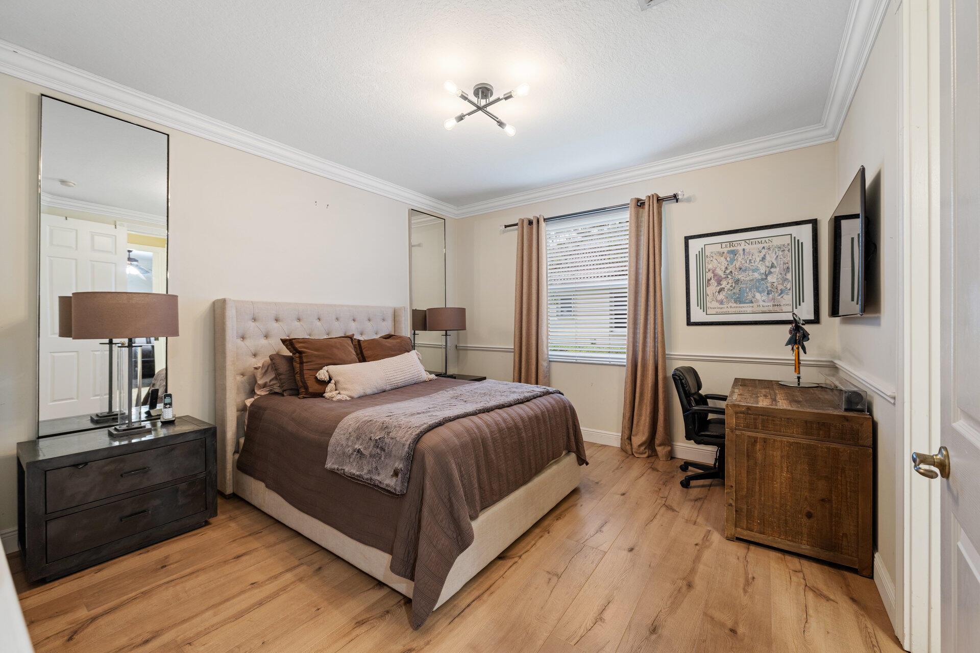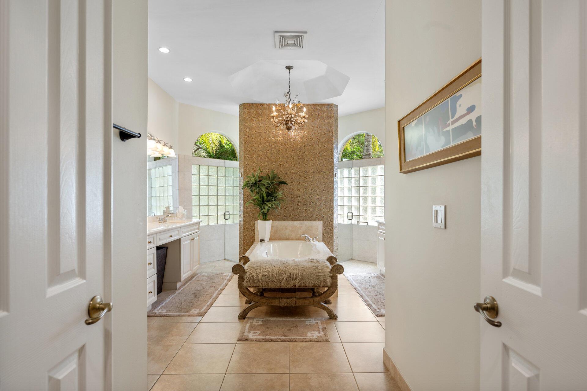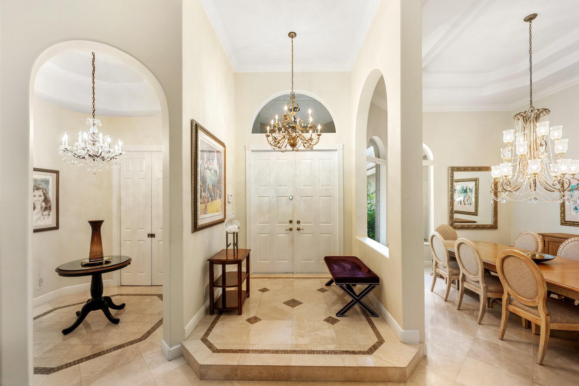 Elegant Former Model is located in the quant guard-gated community of Grand Cypress Estates. On .45 of an acre! This stunning home offers 4 spacious bedrooms, a versatile den/office, & 3 beautifully appointed bathrooms, all enhanced by luxurious Saturnia marble flooring that flow throughout the main areas. Step into an open-concept layout featuring a bright & inviting living space designed for comfort & effortless entertaining. The heart of the home is an expanded gourmet kitchen, fully equipped with a gas stove, that opens to both the family room & a cozy dinette area. The family room features a stunning stone wood-burning fireplace, adding warmth & charm to the space. With a seamless flow & picturesque views of the beautiful saltwater pool & fully-fenced in backyard.