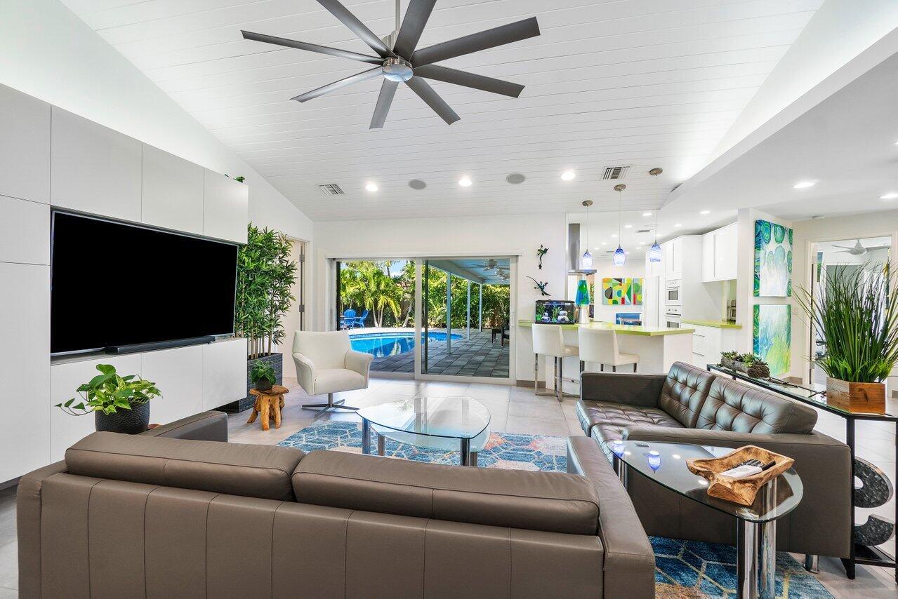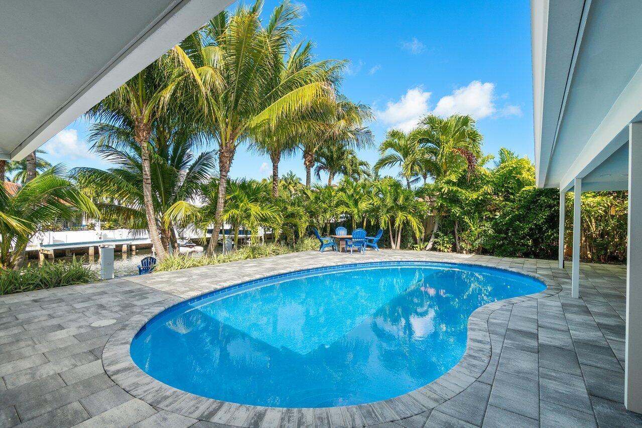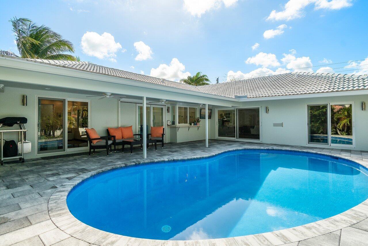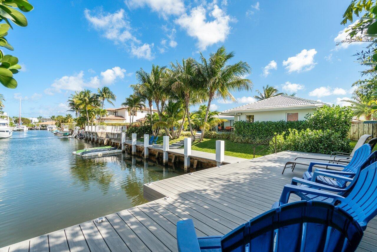 East Boca waterfront gem! This well thought out ranch style home features 3 bedrooms, 3.5 baths, and is situated on approximately 85 ft of deep water with no fixed bridges. The home features a new dock, extending to the center of the canal, a recently refinished saltwater pool, a large uncovered car port for additional parking/storage, a fully integrated smart home and security system with cameras throughout, whirlpool appliances and so much more. Ideally located in one of the most desirable sections of Boca Raton.