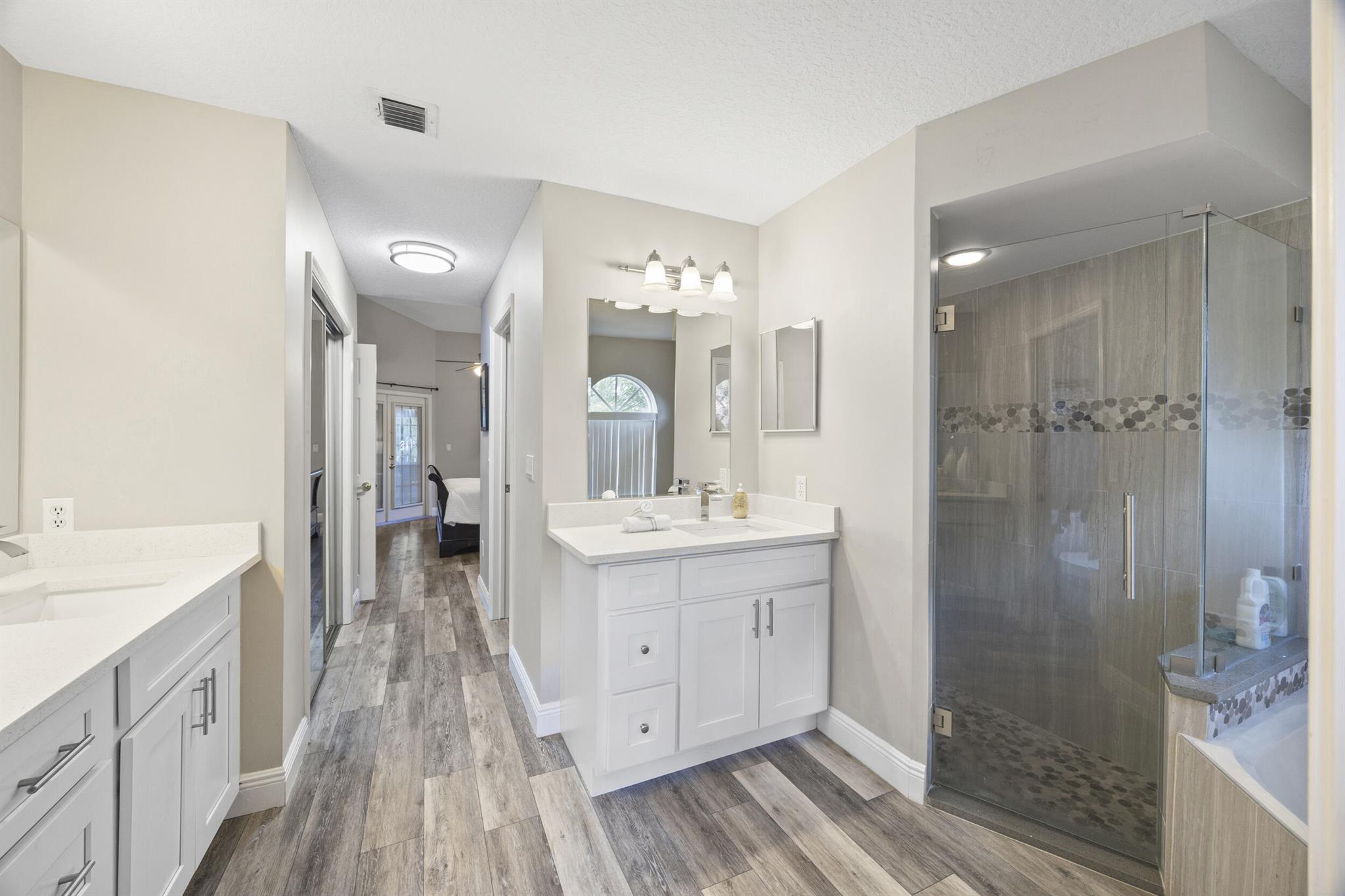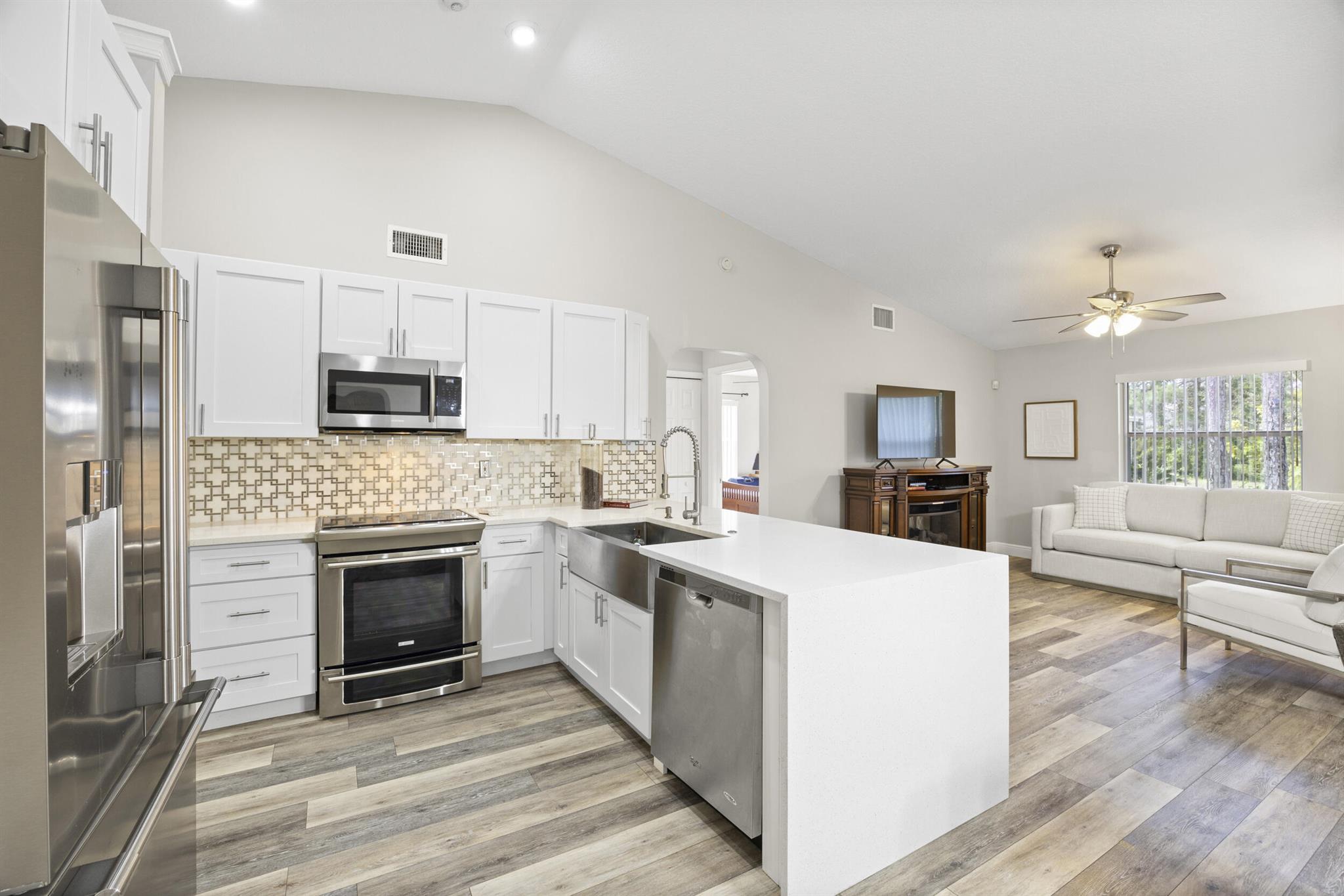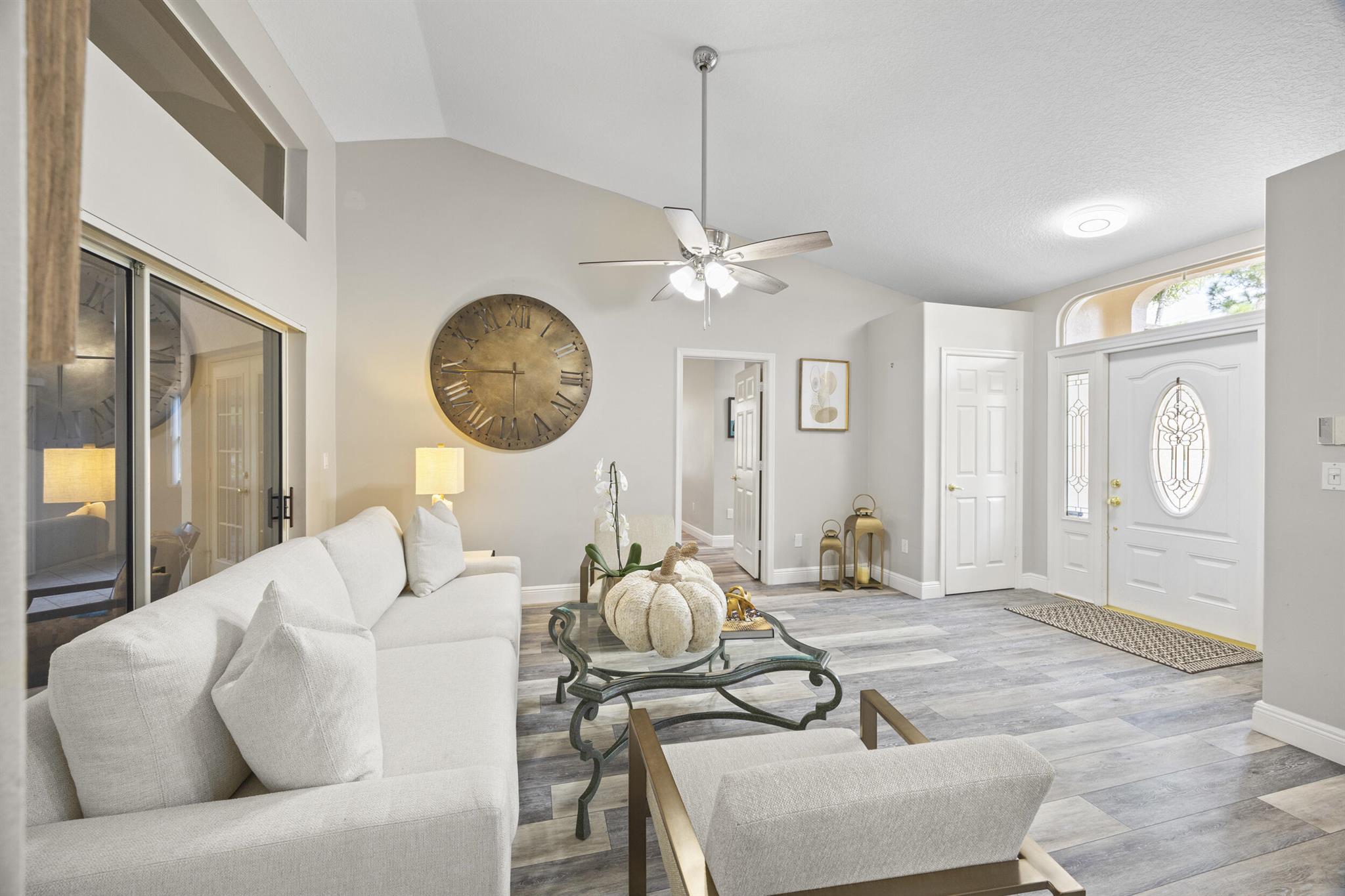 Florida Paradise! Corner lot with three driveways and three gates for easy access. Fully updated, beautiful kitchen and bathrooms. Features countertops, beautiful, backsplash, and luxury vinyl throughout the house. Stainless steel appliances, all white cabinets. Oversized patio fully permitted converted into an additional living space with AC. Fully fenced and lots of privacy! Perfect for you to park your RV, boat, camper trailer or machinery, equipped with 30 amp outlet for your RV. vaulted ceilings here shutters for all the windows and doors. Additional workshop/garage in the back of the property, it could be used as a utility shed as well.