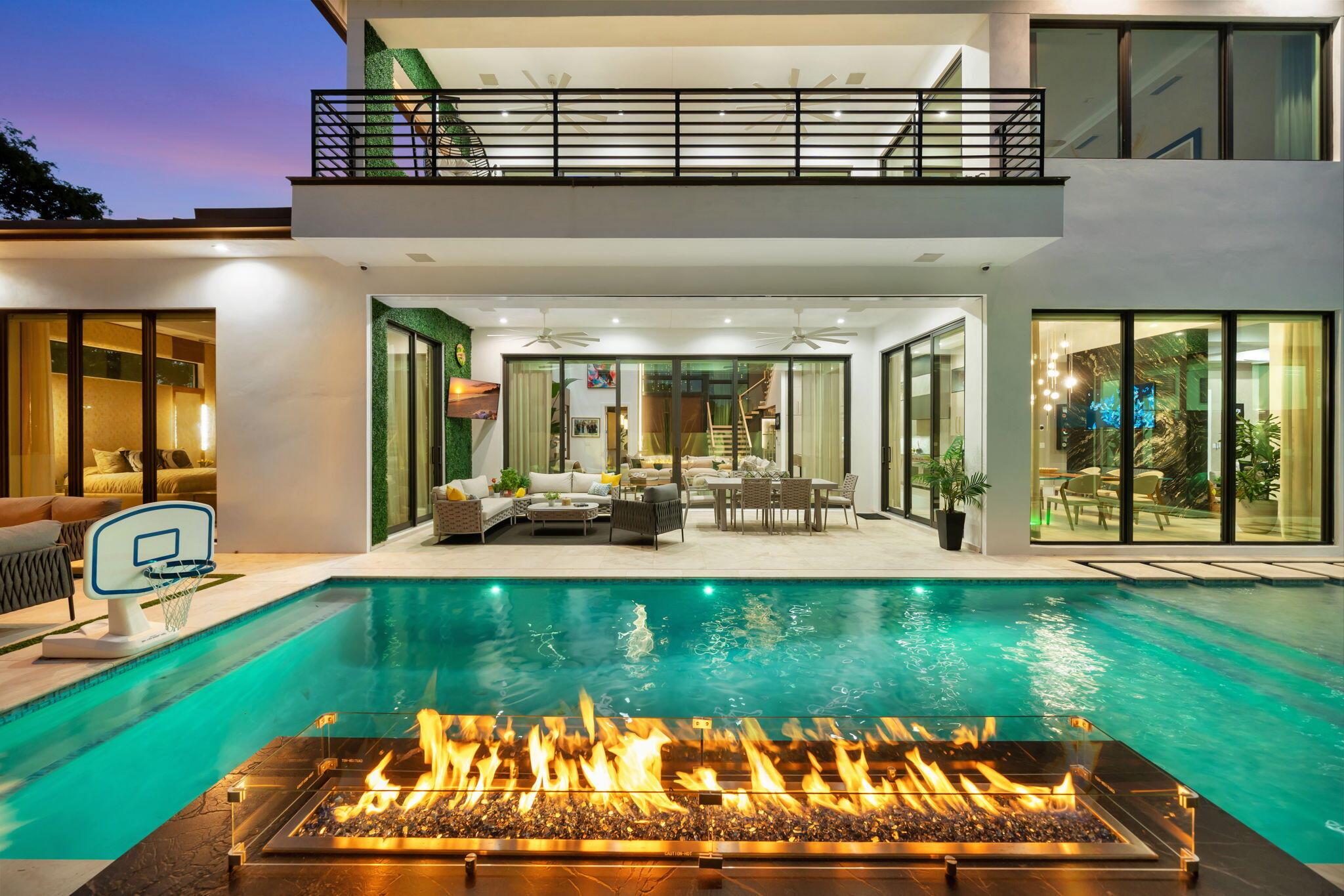 Take the video tour to see why this is NOT the typical blank box home. It is a custom estate with guest house, 5 bedrooms an ensuite office with 6 and 1/2 baths.A Builders own personal residence which ensures the home has every luxury detail imaginable. Boca Villas is sought after for the location and pedestrian friendly lifestyle, Walk to dining, shopping, houses of worship and the beautiful Boca beaches.The main level has a primary suite, an en-suite office and an en-suite guest house set up as a private gym and an extra powder room.Upstairs has three ensuite bedrooms and a large loft.The chef's kitchen is a combination of sophisticated style and top tier performance, A culinary haven with