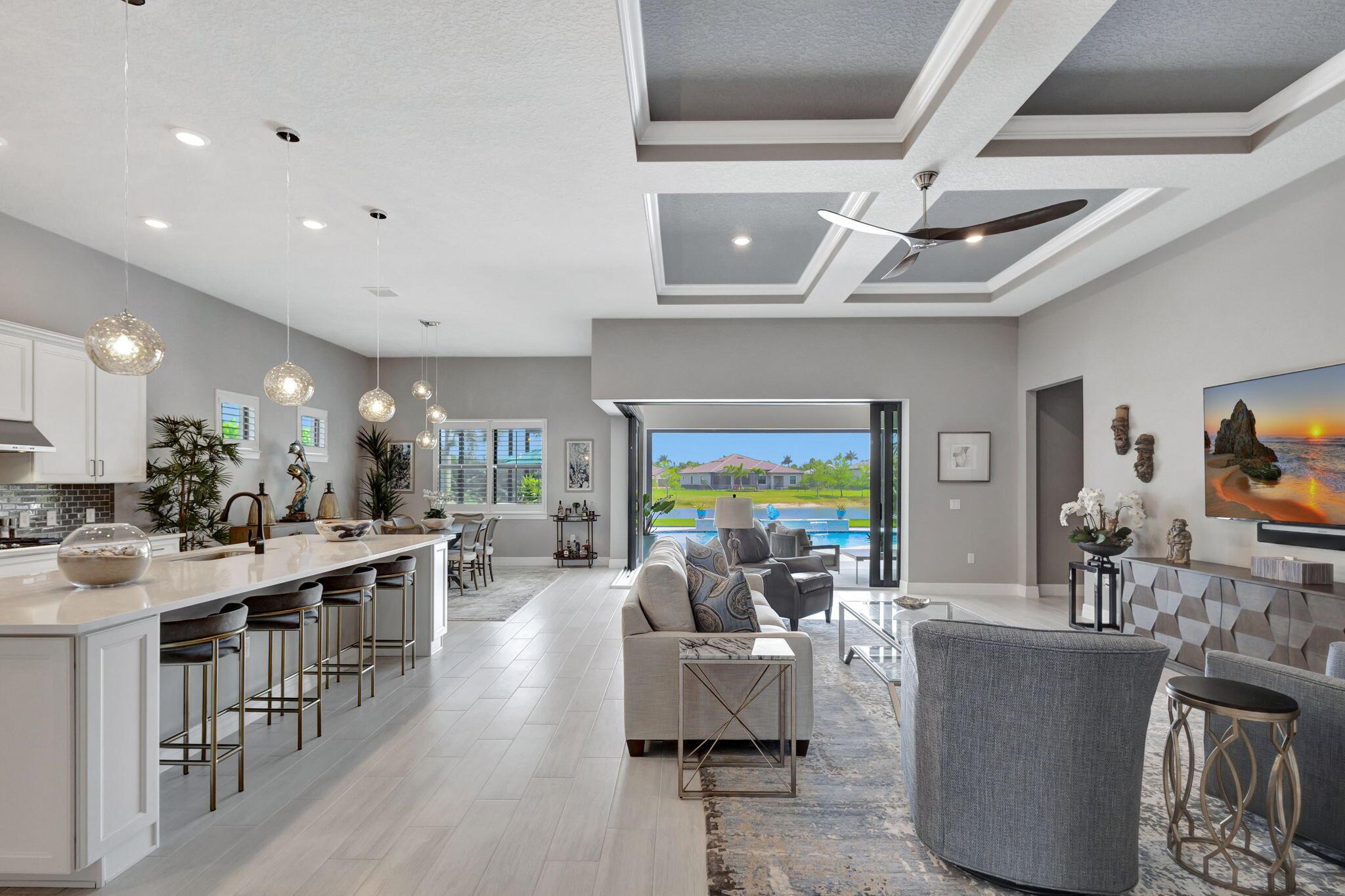Step Into Luxury Florida Living In This Exquisite Waterfront Home, That Epitomizes Both Elegance & Comfort. This Beautifully Appointed Residence Boasts A Spacious Open Floor Plan With An Abundance Of Natural Light & Coffered Ceilings Perfect For Entertaining. A Chef Inspired Gourmet Kitchen Includes Top Of The Line SS Appliances & Stylish Designer Cabinetry. Spend Endless Hours Of Seamless Indoor/Outdoor Enjoyment Complete With High End Custom Pool, Zero Corner Sliders, Summer Kitchen, Large Screened Lanai And A Peaceful Water View. Includes Whole House Generator, Storm Smart Hurricane Screens, Impact Windows & Doors For Added Peace Of Mind. Maintained Beautifully by Original Owners. See Documents For A Complete List of Upgrades & Finishes