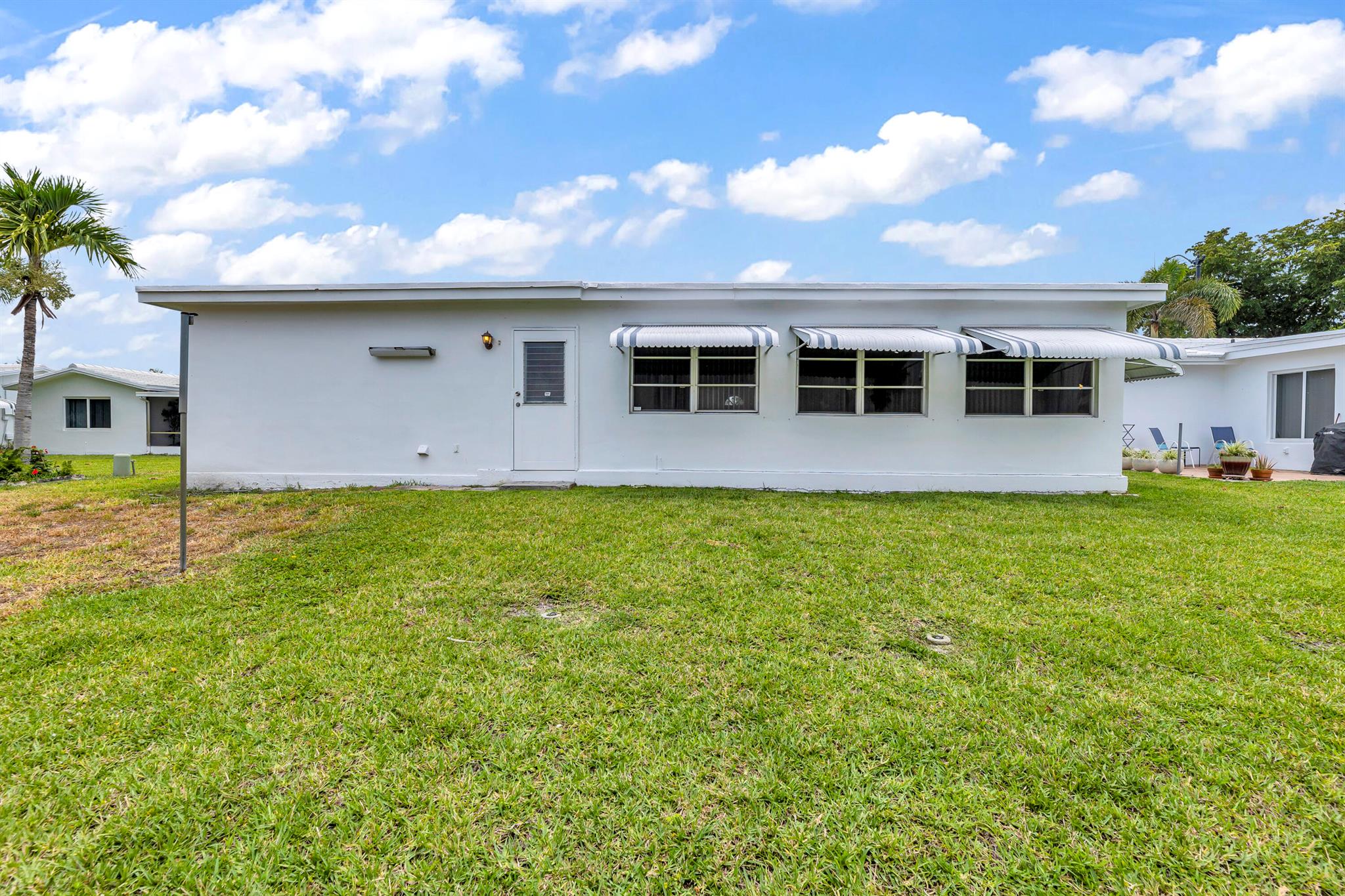 Pompano Beach Private Golf Community. 2 BR/BA with carport. Association fee includes water, 2 pools, 2 clubhouses, FREE resident golf, scheduled shuttle bus, scheduled roof and house painting. East of I-95, close to beaches, restaurants, casino and horse racing. Two pets welcome! NO LAND LEASE! Must own the property one year before renting. Freshly Painted inside. PERMITTED EXTRA LARGE ROOM OFF LARGE FL RM AND IS CURRENTLY USED AS TOOL ROOM WITH WATER AND EXTERIOR DOOR / possible OFFICE/ 2ND BR ENLARGED TO BE MASTER BR SUITE/ OR 3RD BR. PRIVATE BACK YARD SETTING. LOTS OF POSSIBILITIES WITH THIS LARGE PERMITTED 3RD ROOM.