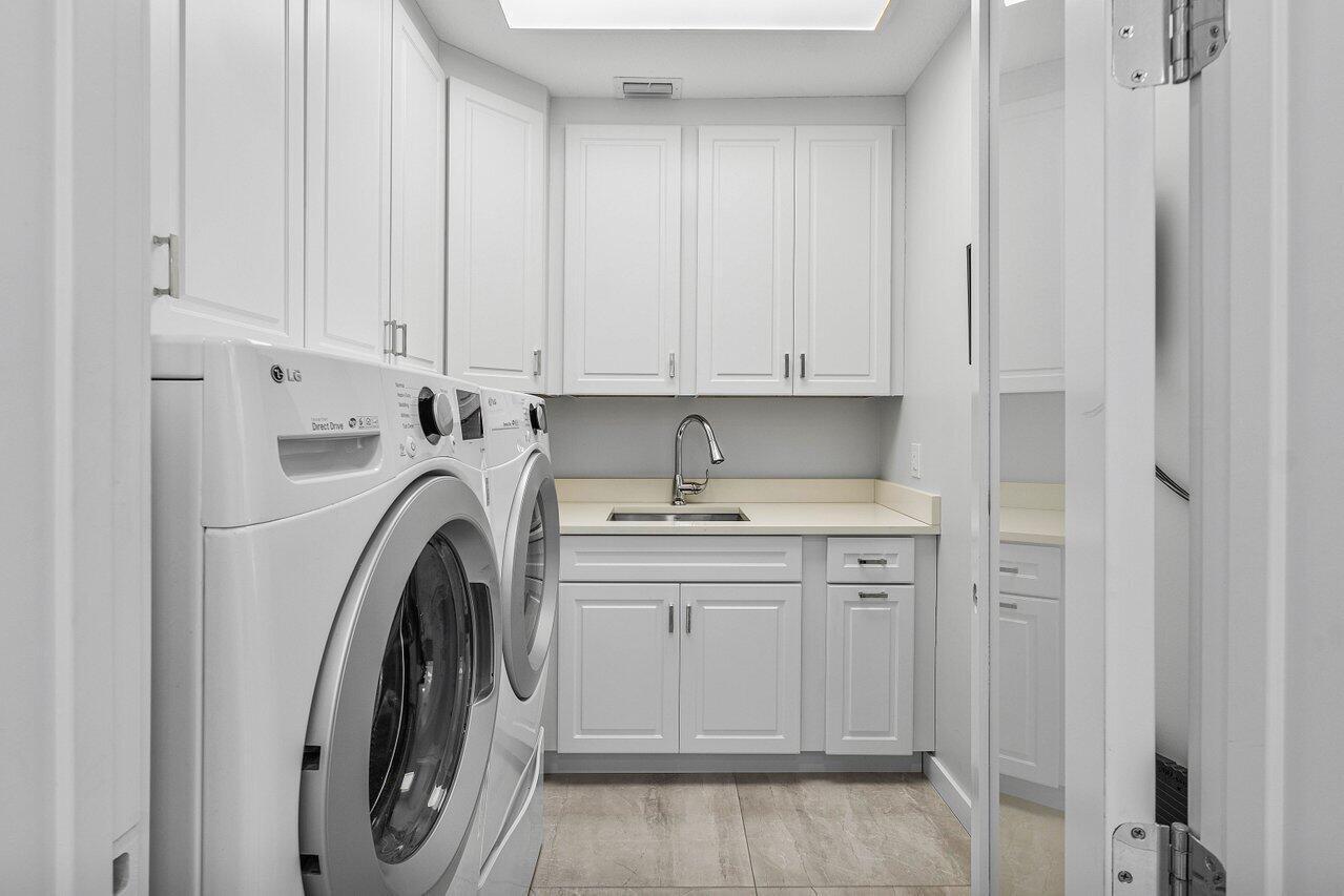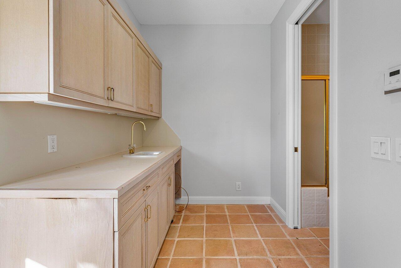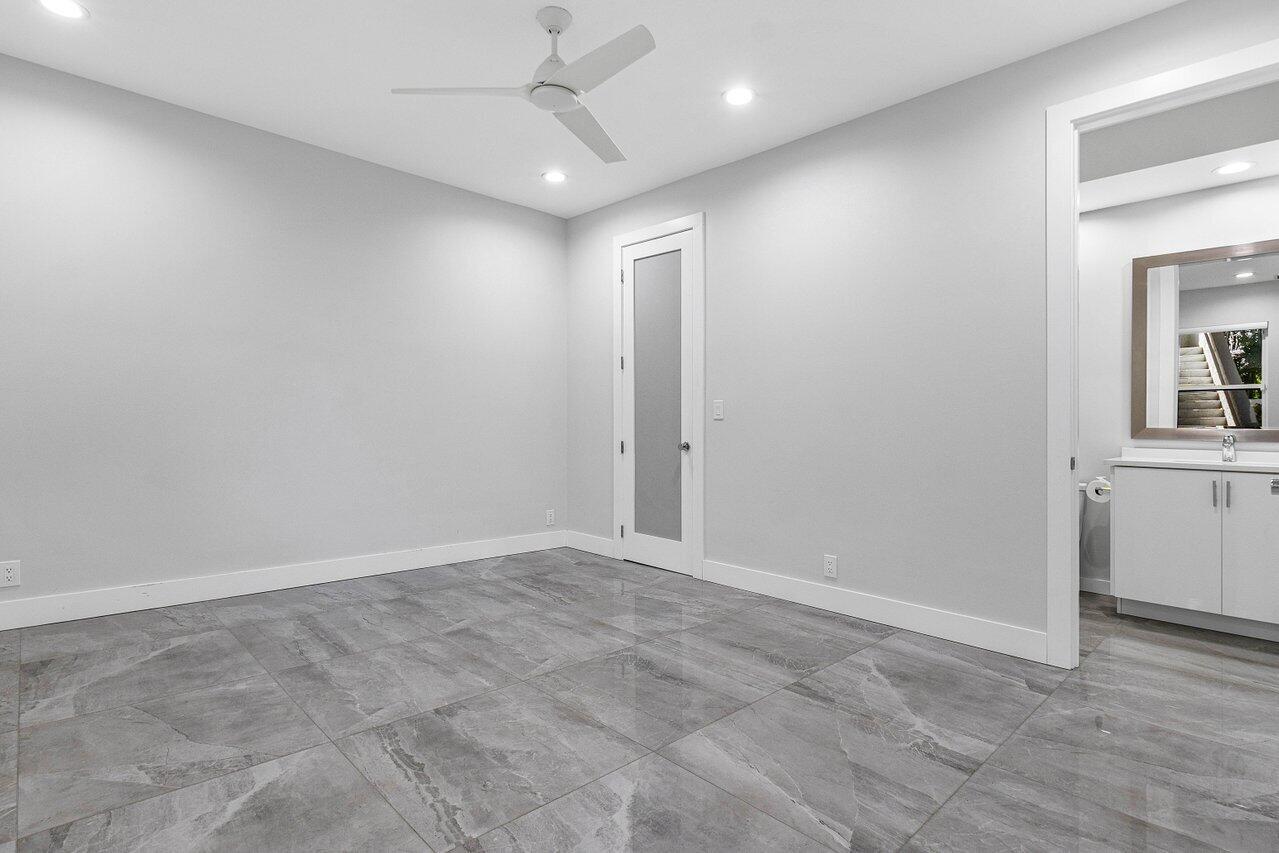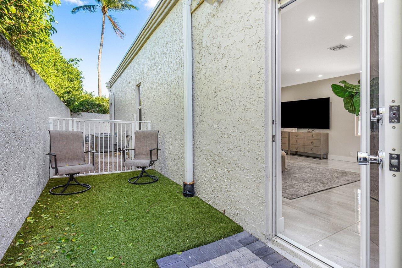 Welcome to your private retreat, where this fully renovated estate awaits. Approaching the home, the extended circular driveway makes a striking first impression. Entering through the double doors, you are welcomed into the private courtyard and greeted by breathtaking views of the golf course and lake in the distance. The expansive courtyard features an alfresco dining space, a lounge area, and a serene pool with an attached spillover spa, creating a tranquil oasis. Conveniently, the courtyard additionally includes a cabana bathroom with an outdoor shower.One of the unique features of this home is the serene, community garden-like setting next door, where you can enjoy picturesque views with the added touch of privacy in the absence of a next-door neighbor. Inside, the completely