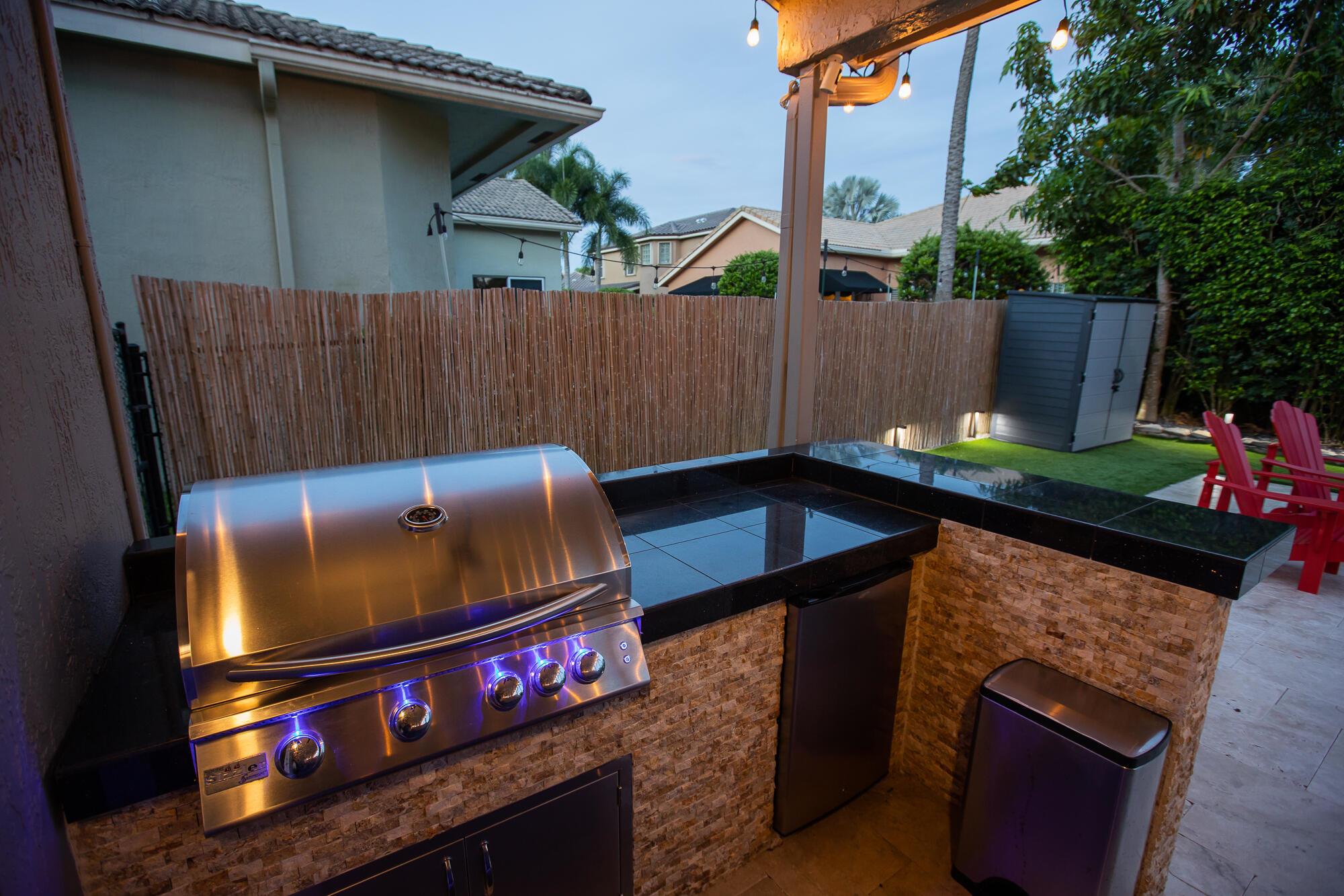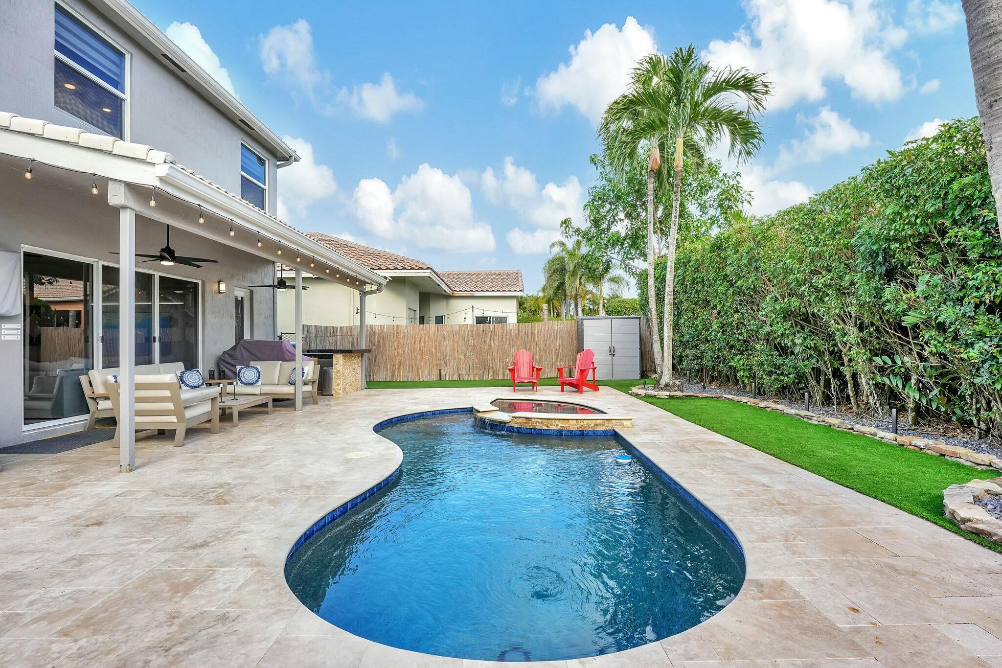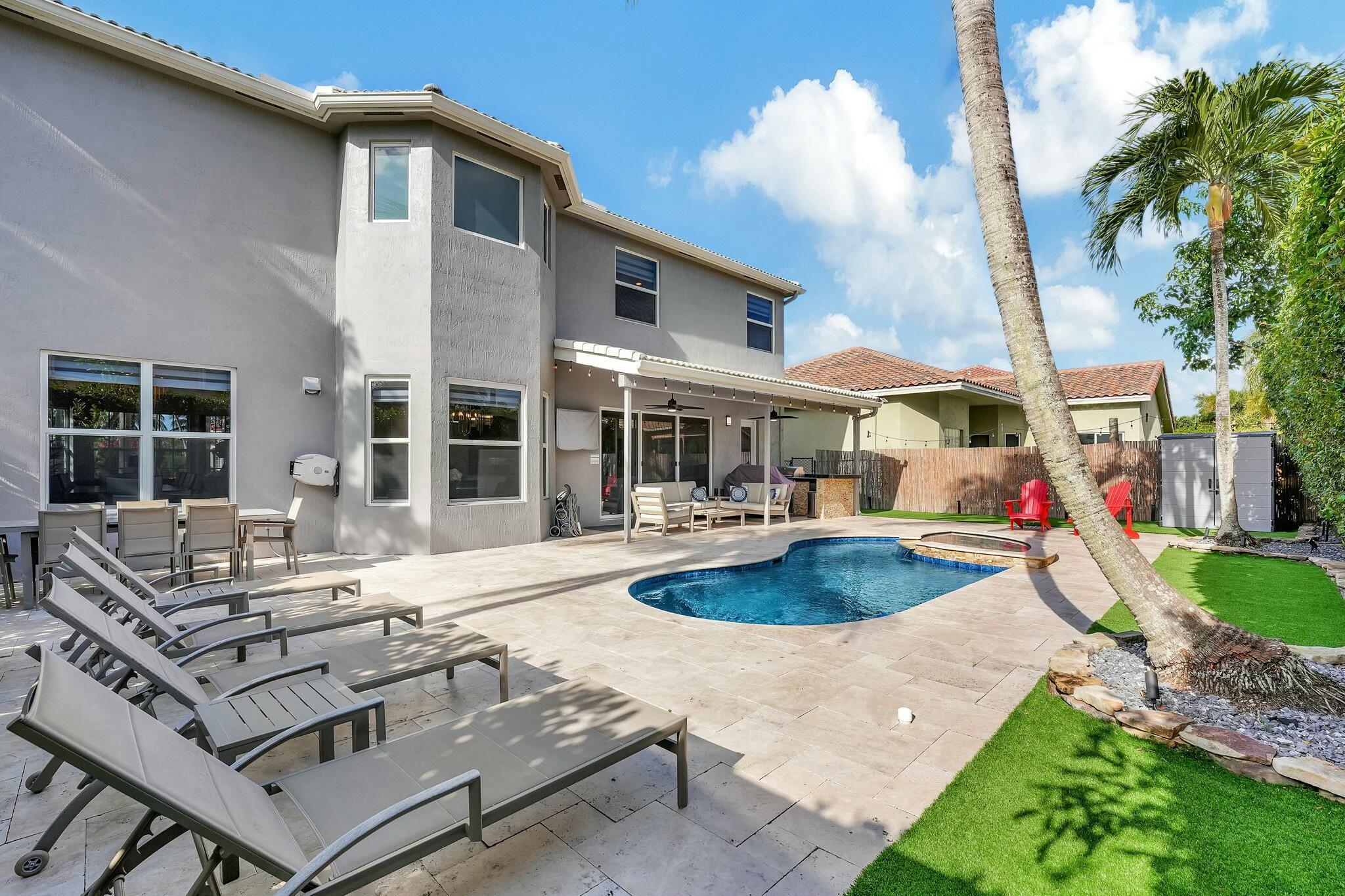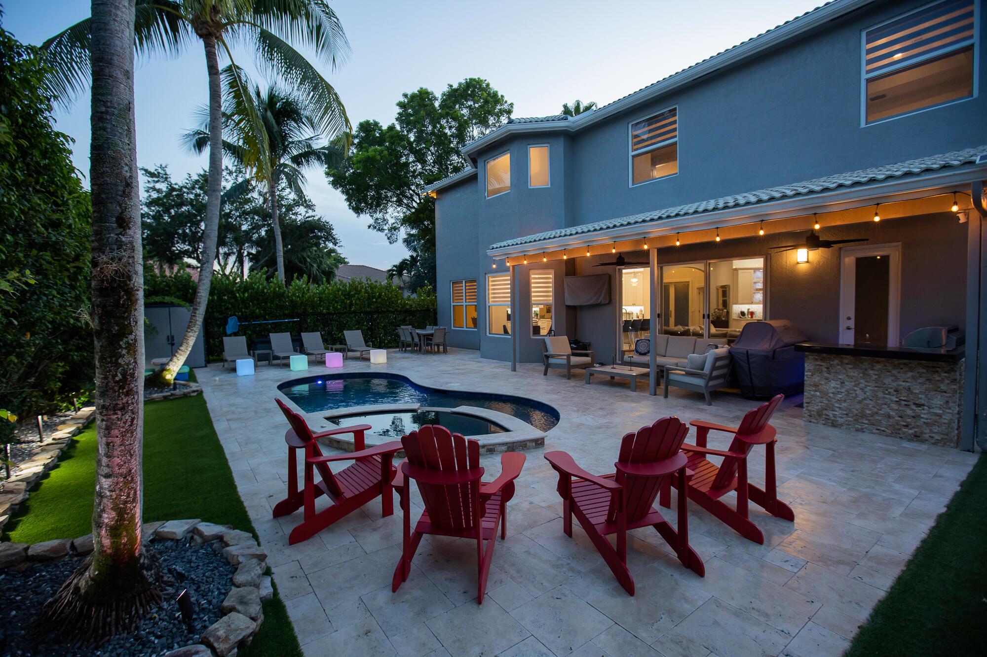 Totally transformed and renovated family home in a great school district. Just move in and enjoy your resort style private and fenced backyard with heated pool, spa and smart lighting. Outdoor kitchen with cabana bath. Experience a quiet, gated and friendly community. Spa-like master retreat with roman tub, large shower and a massive dressing room with custom organizers. Your true 3 car garage is an auto enthusiast's dream, with custom floors, cabinetry and so much storage it will be hard to fill. After all of these garage features, the current owners park all three of their cars inside, including their F150. 2 new AC Units (2022), Impact Windows/Doors/Garage Doors (2022). Smart home enabled. Pool heater (2023).