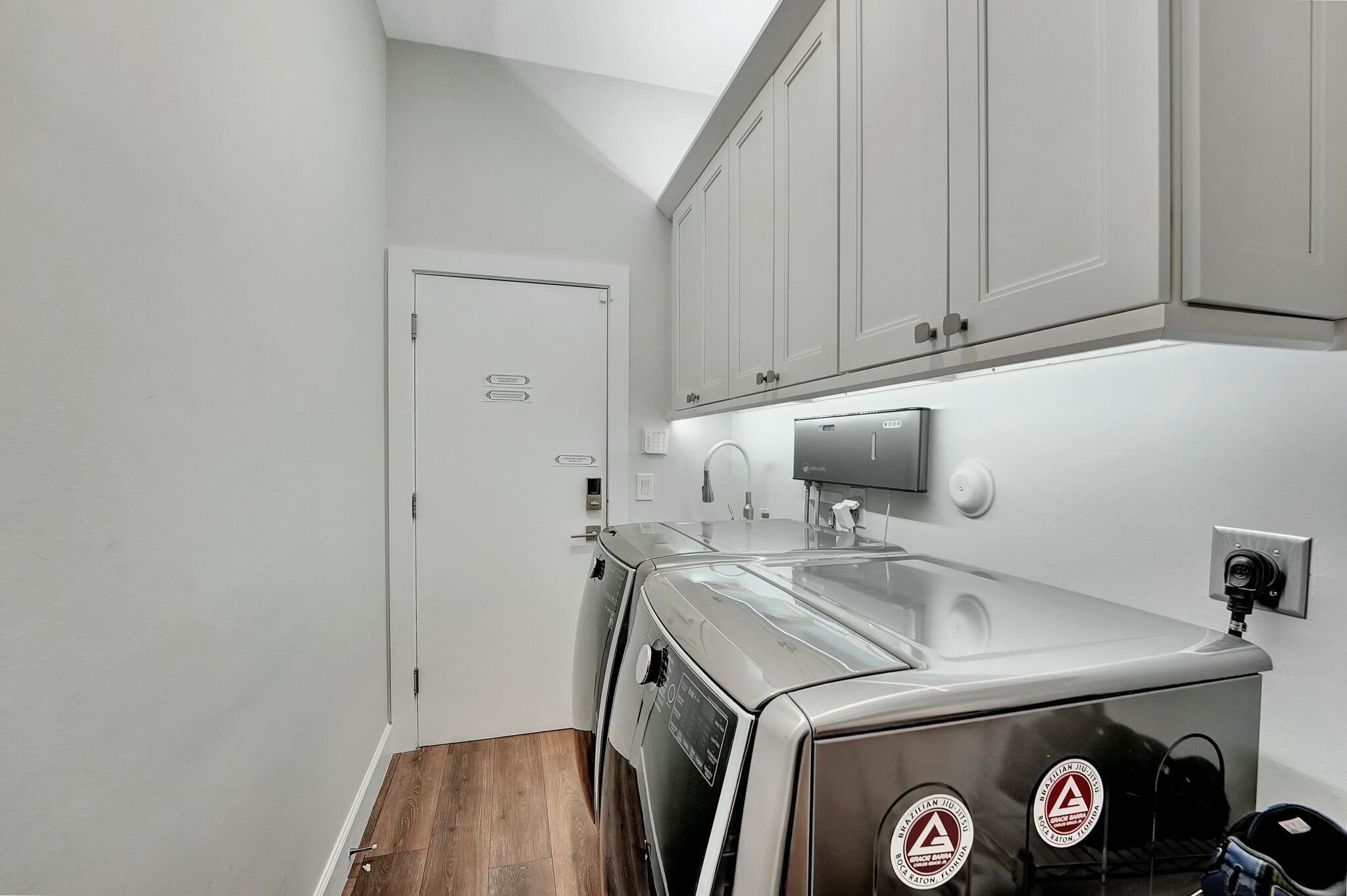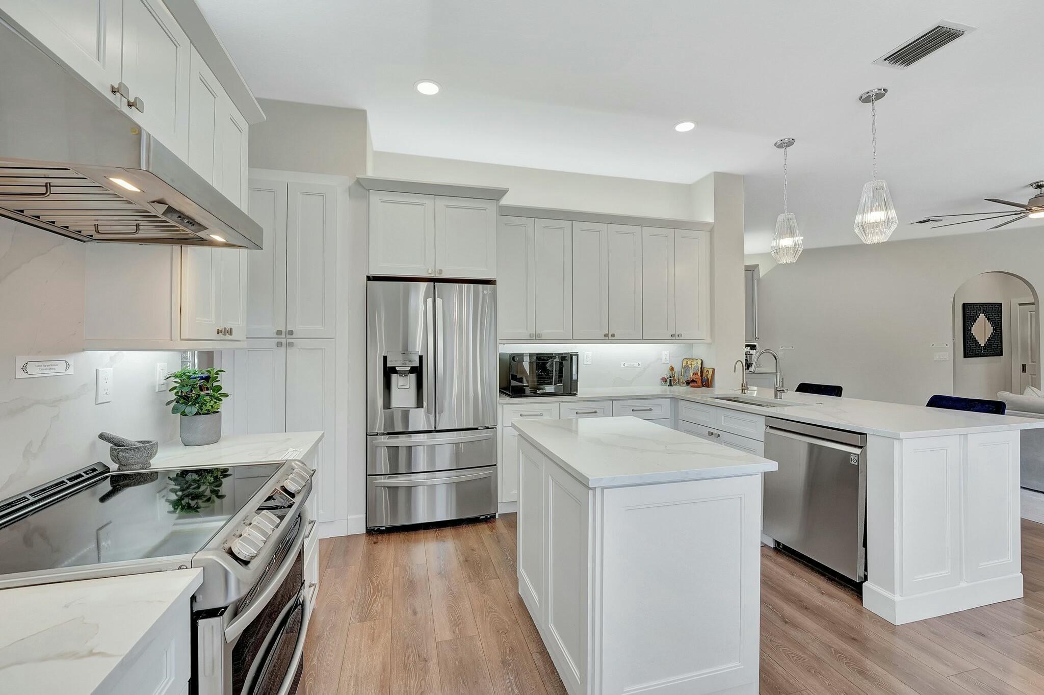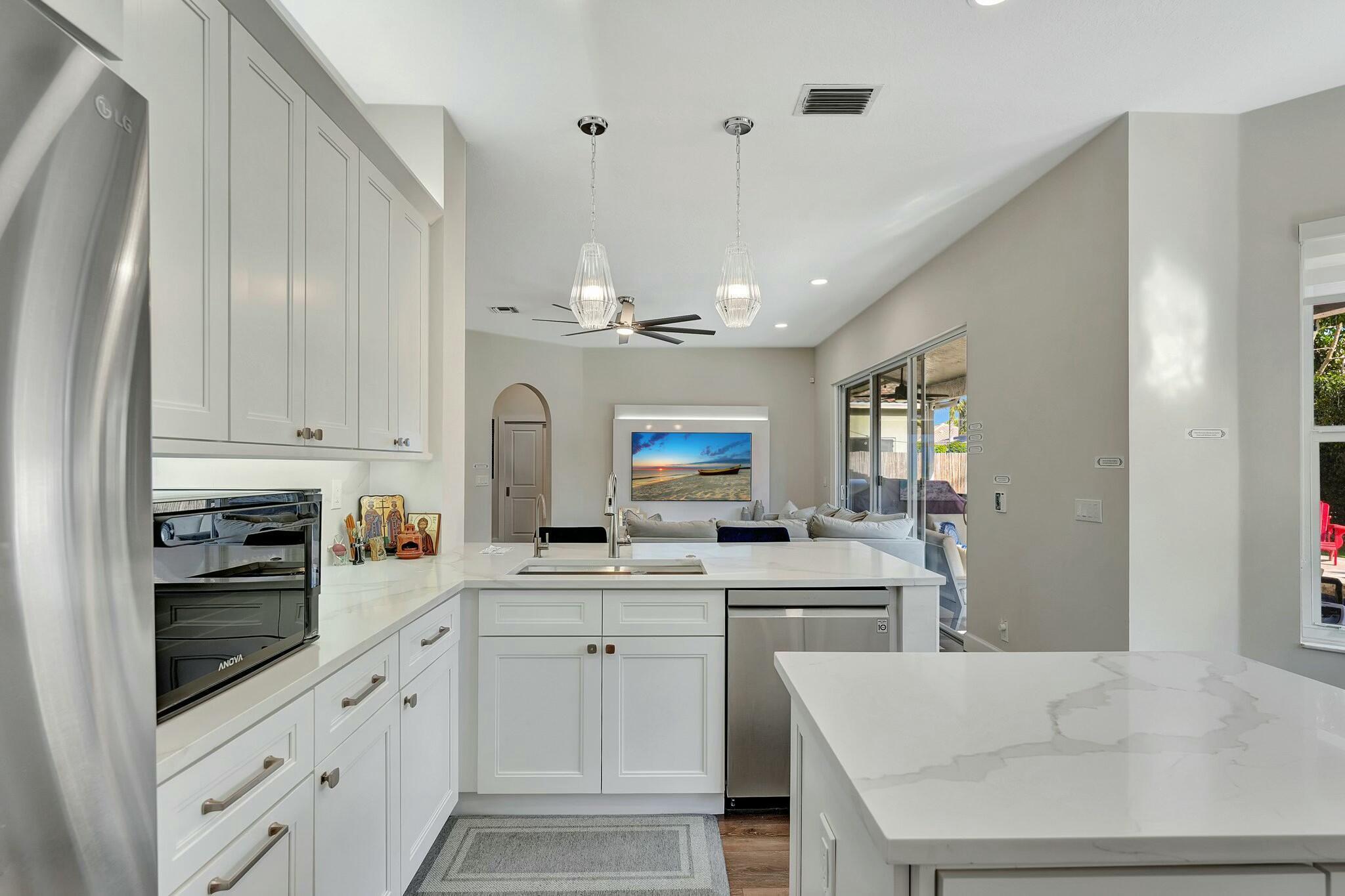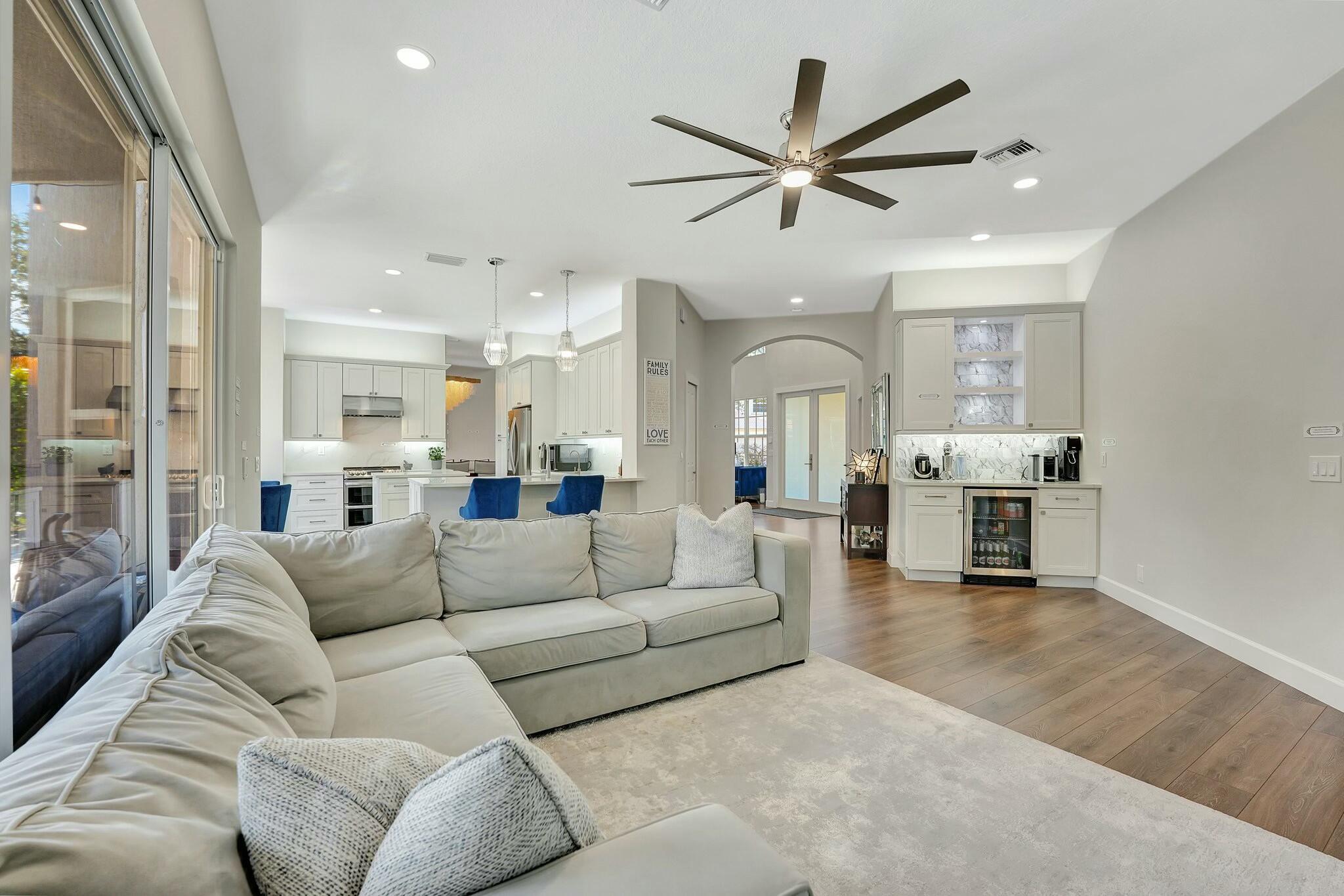 Totally transformed and renovated family home in a great school district. Just move in and enjoy your resort style private and fenced backyard with heated pool, spa and smart lighting. Outdoor kitchen with cabana bath. Experience a quiet, gated and friendly community. Spa-like master retreat with roman tub, large shower and a massive dressing room with custom organizers. Your true 3 car garage is an auto enthusiast's dream, with custom floors, cabinetry and so much storage it will be hard to fill. After all of these garage features, the current owners park all three of their cars inside, including their F150. 2 new AC Units (2022), Impact Windows/Doors/Garage Doors (2022). Smart home enabled. Pool heater (2023).